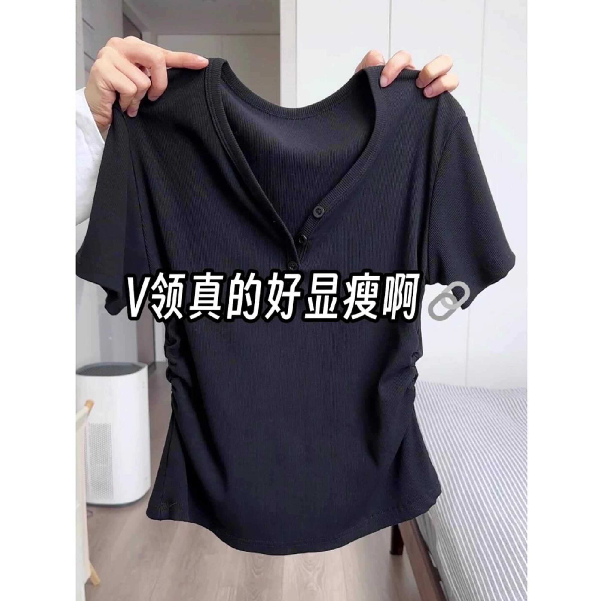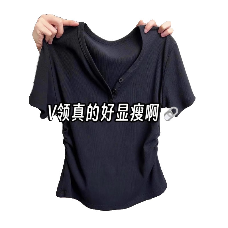 Черная летняя футболка с коротким рукавом, корсет, V-образный вырез, размер, облегающий крой