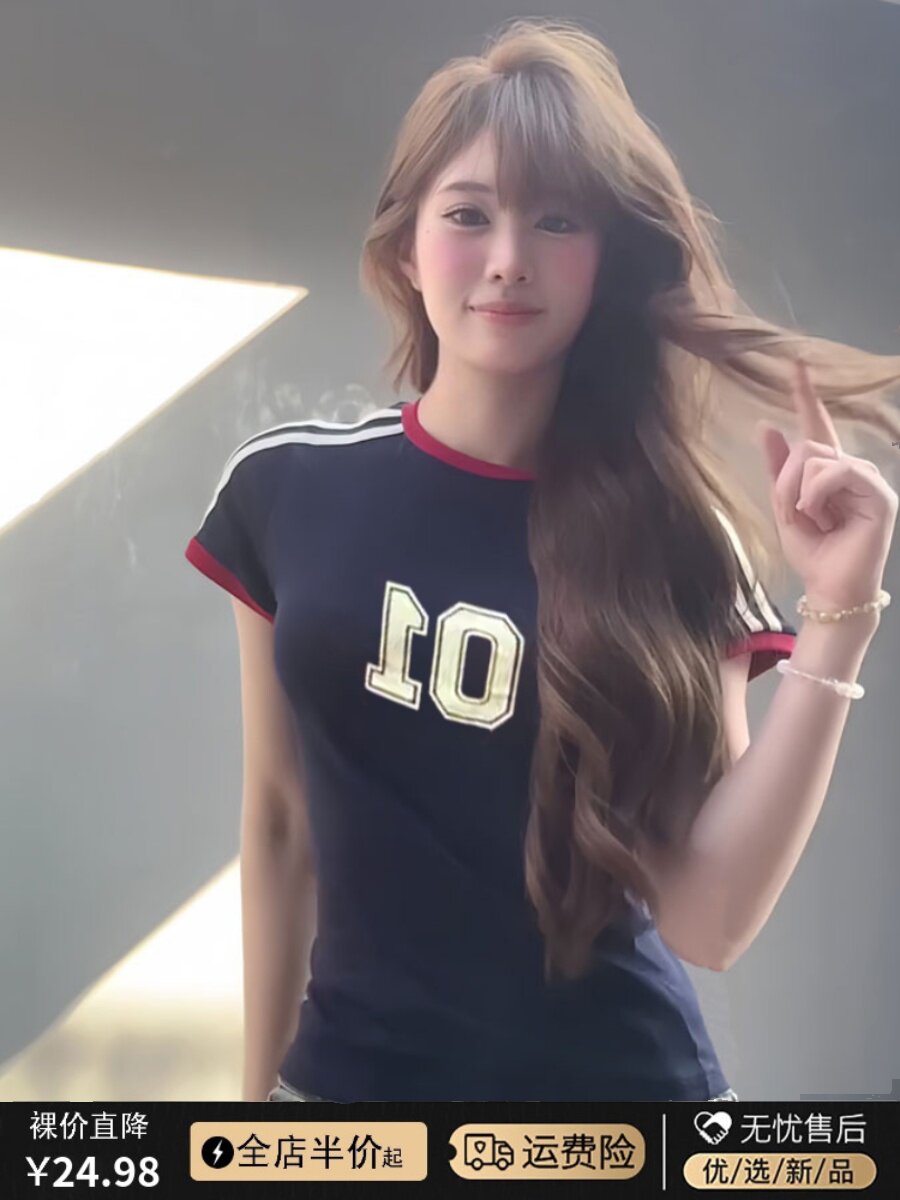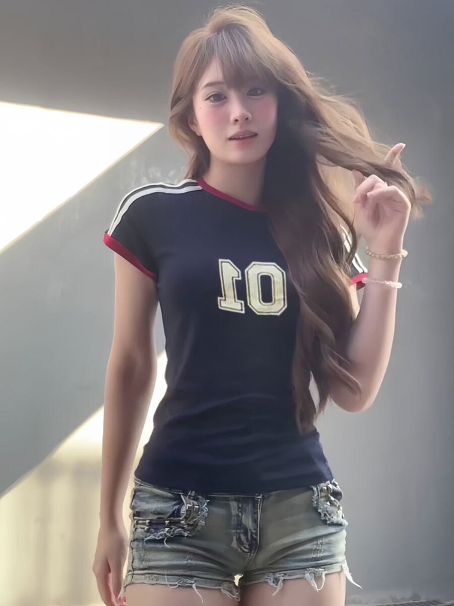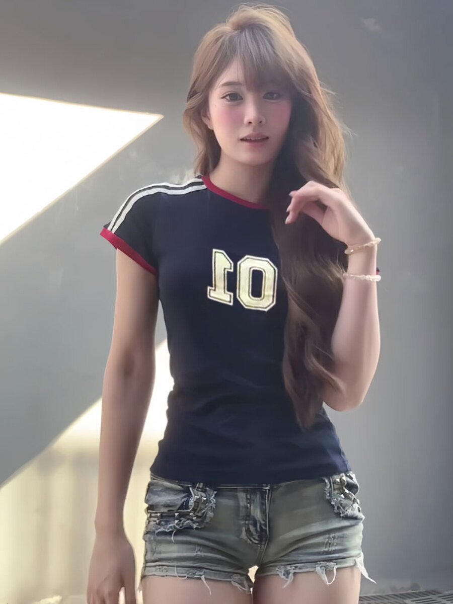 Ретро летняя спортивная короткая футболка с коротким рукавом, в американском стиле