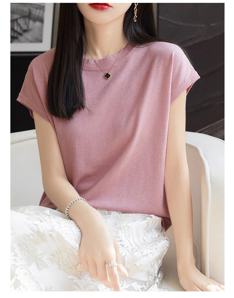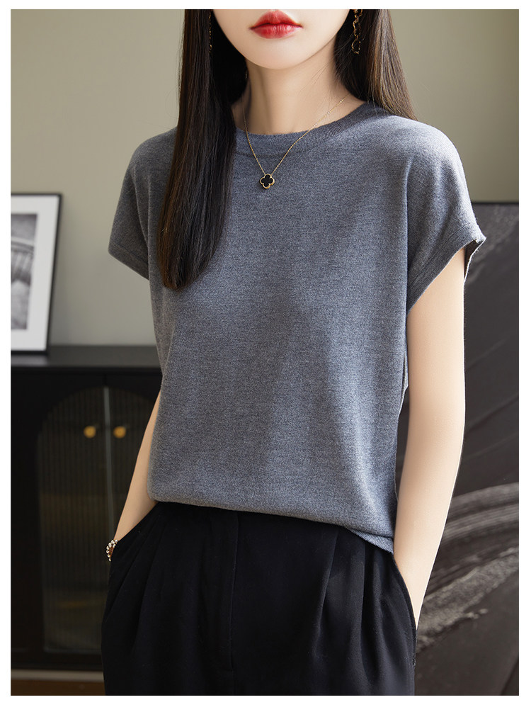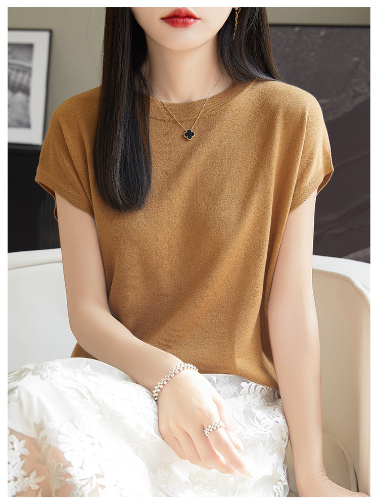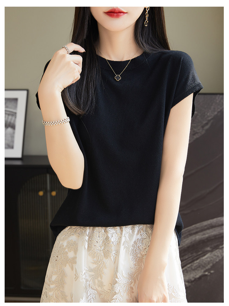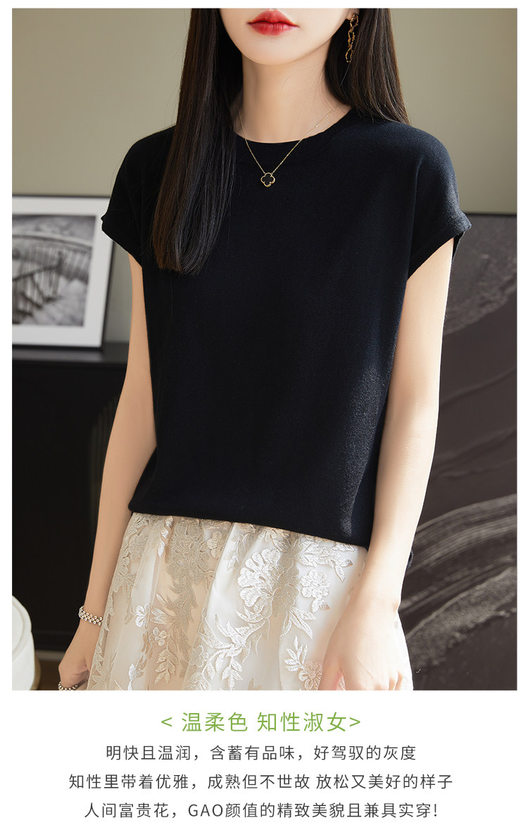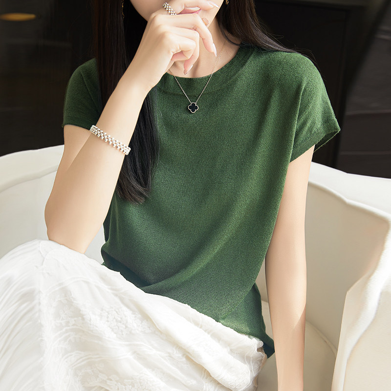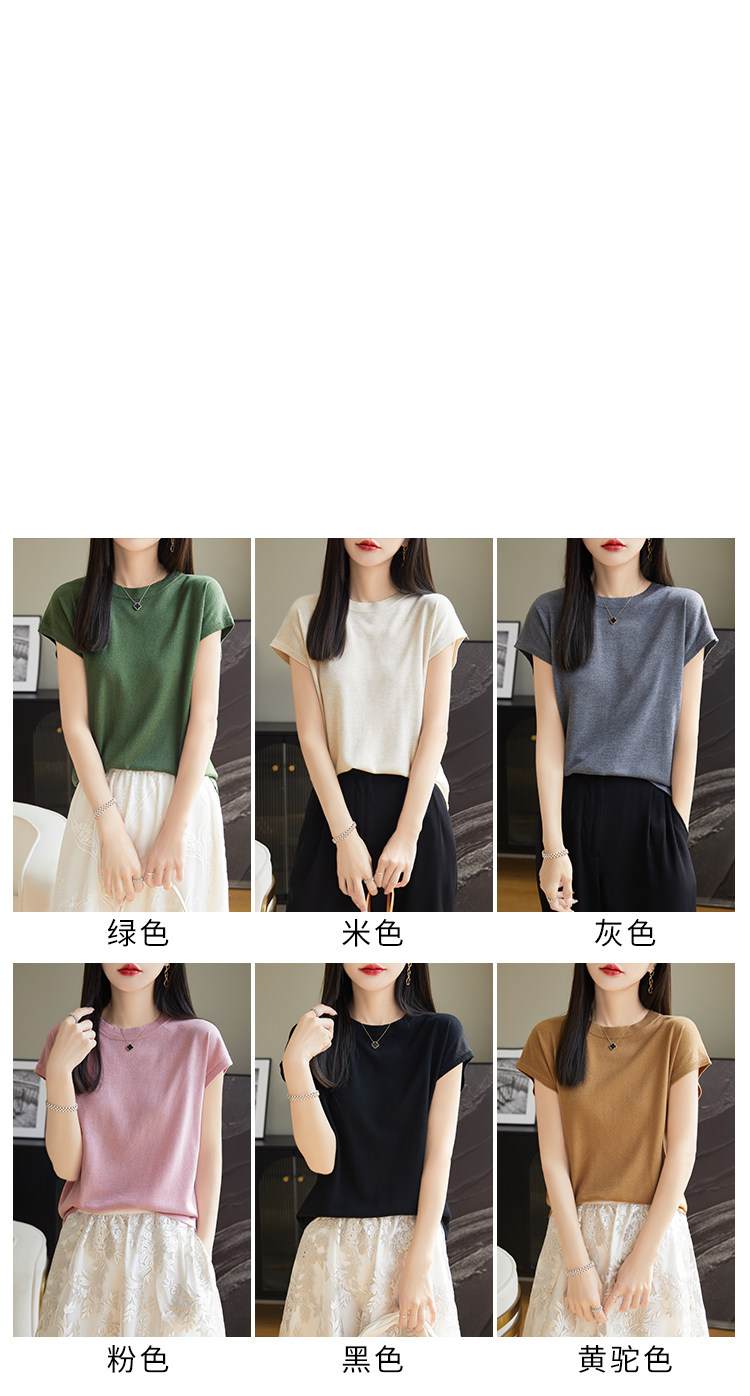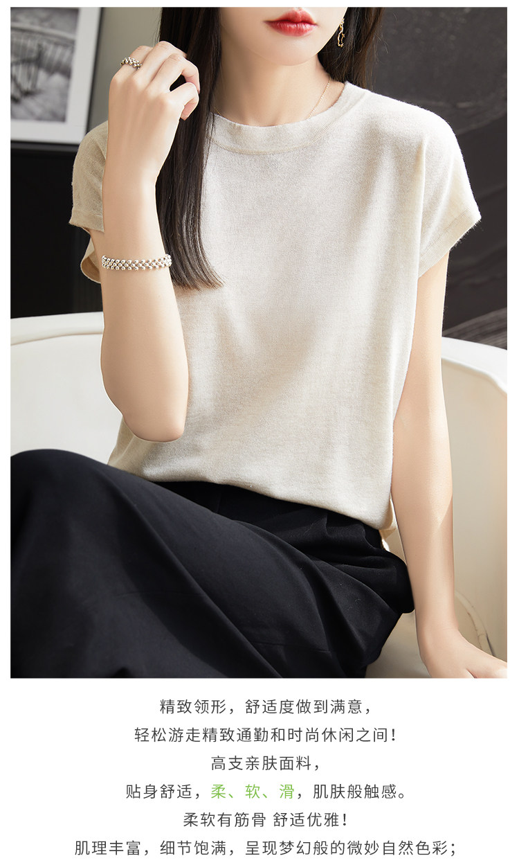 Летний тонкий однотонный жилет с круглым воротником, трикотажный шелковый свитер, короткий рукав