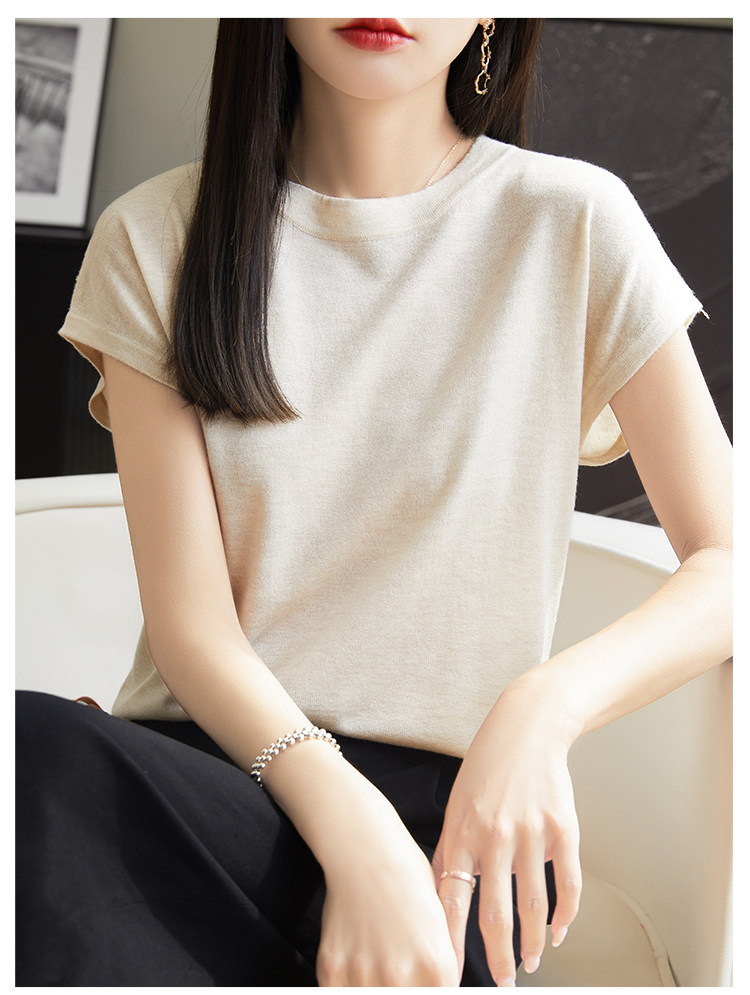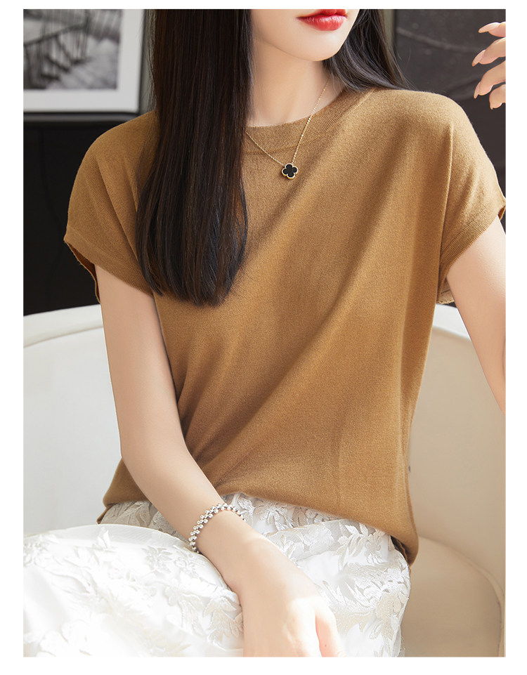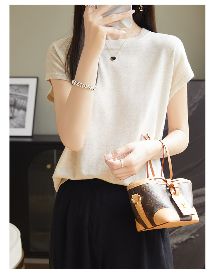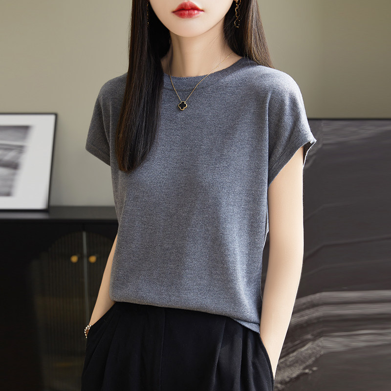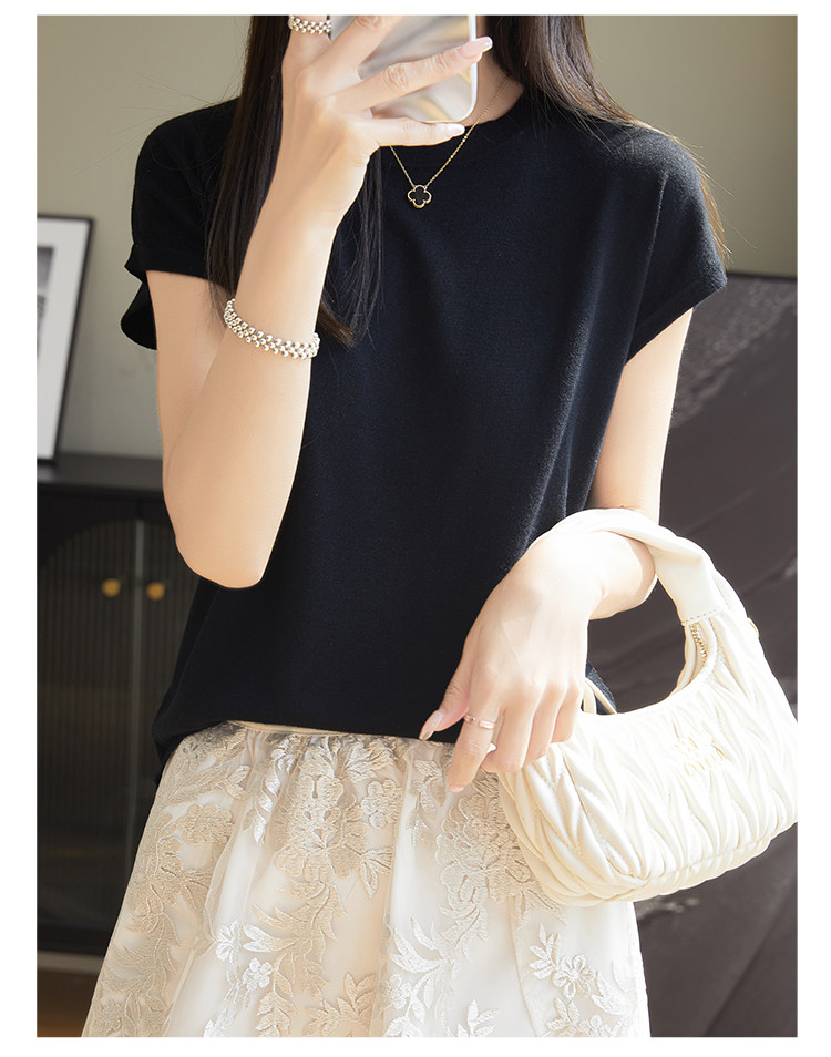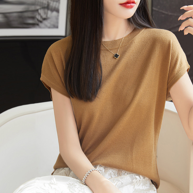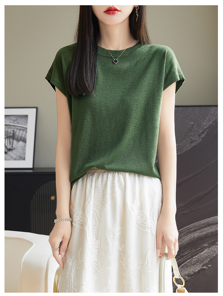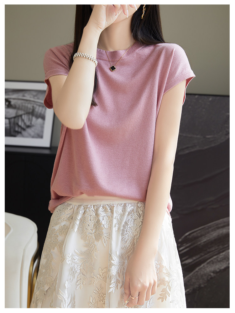 Летний тонкий однотонный жилет с круглым воротником, трикотажный шелковый свитер, короткий рукав