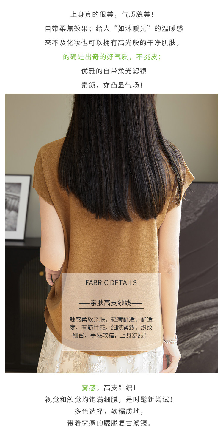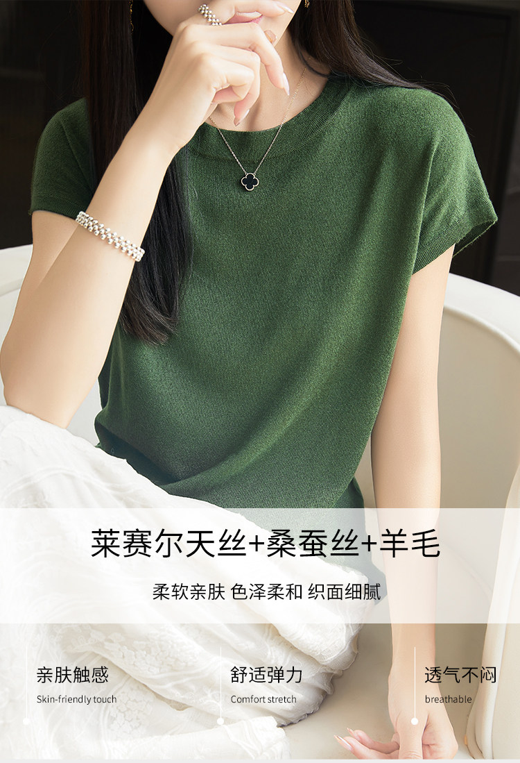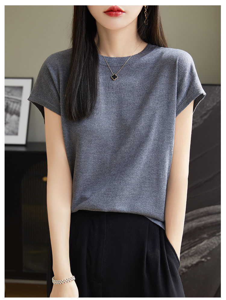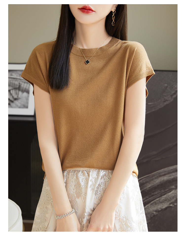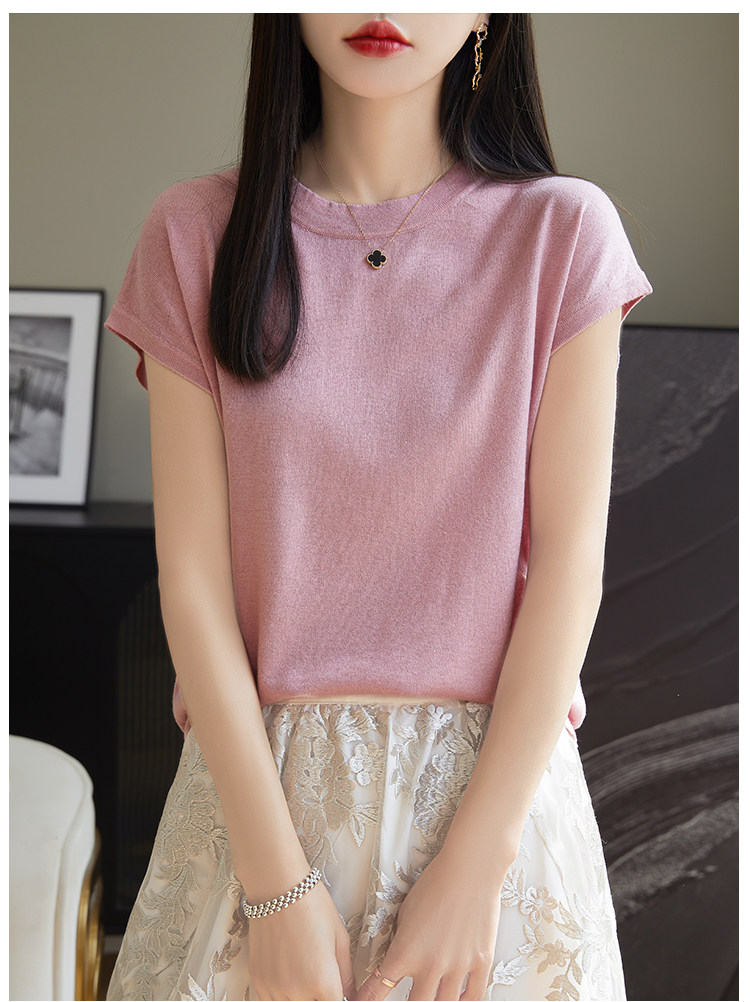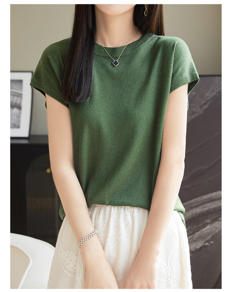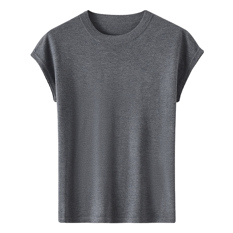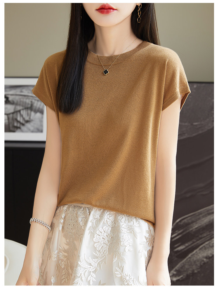 Летний тонкий однотонный жилет с круглым воротником, трикотажный шелковый свитер, короткий рукав
