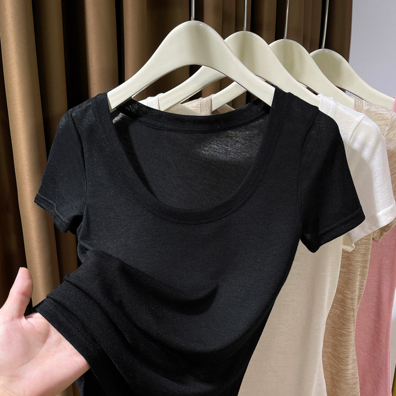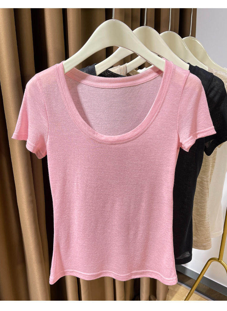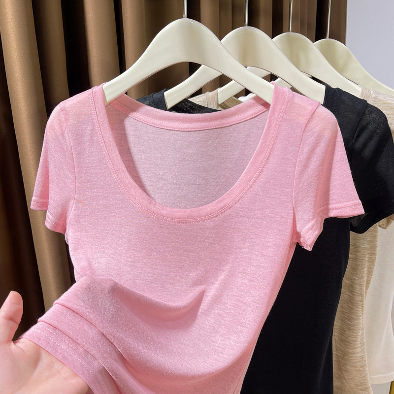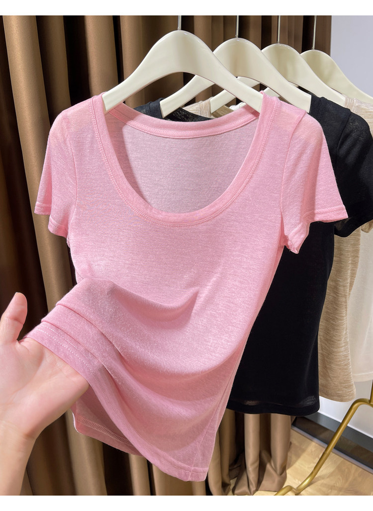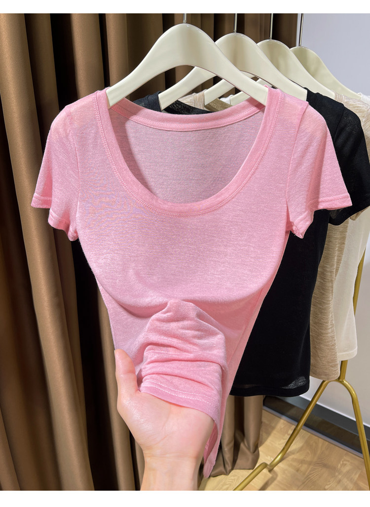 Розовая тонкая летняя трикотажная базовая ультратонкая футболка с коротким рукавом с круглым воротником