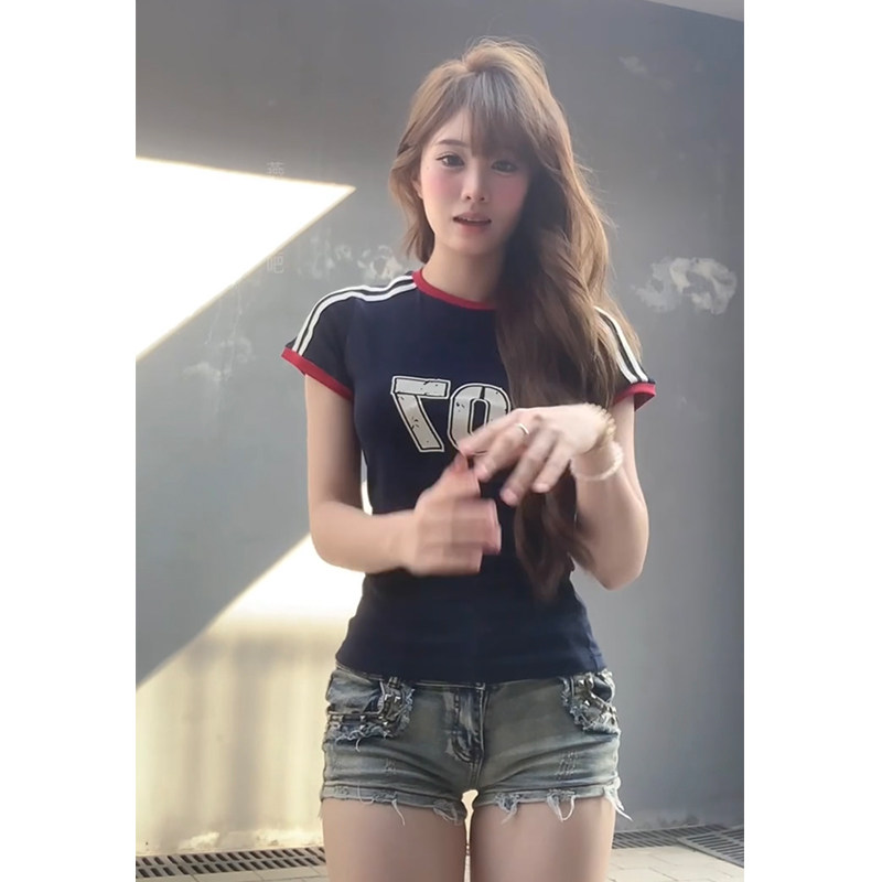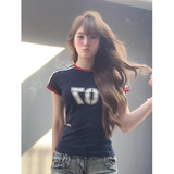 Ретро летняя приталенная короткая футболка с коротким рукавом, в американском стиле