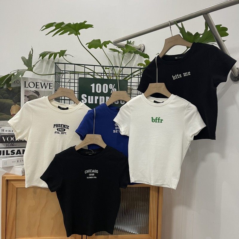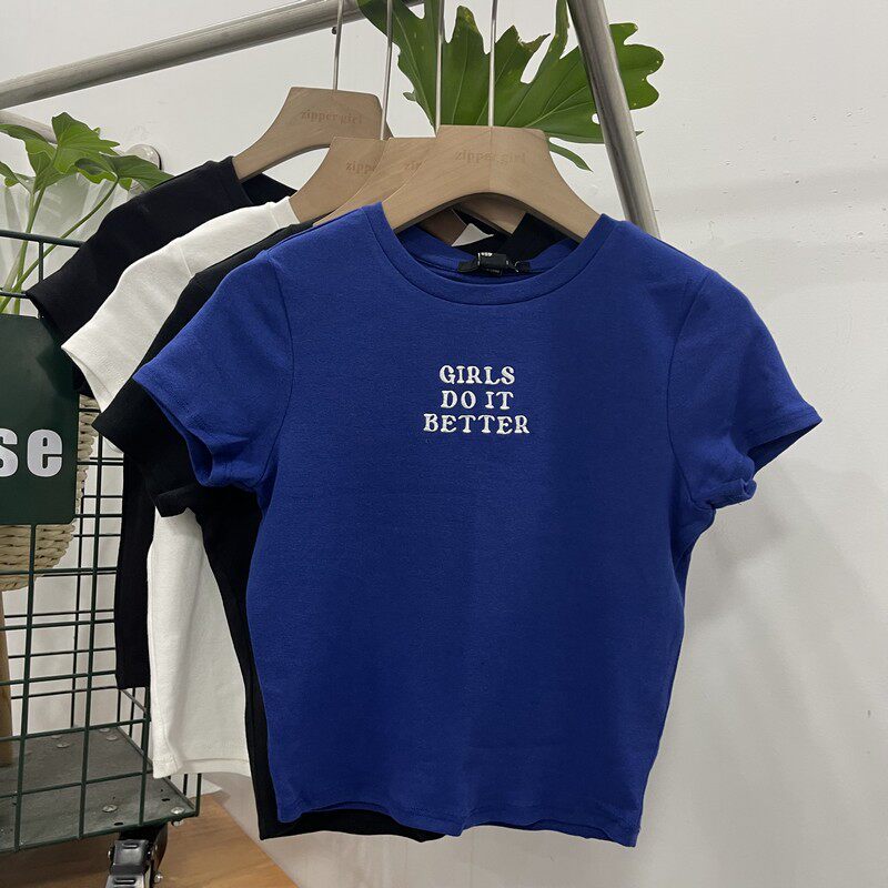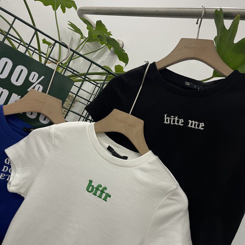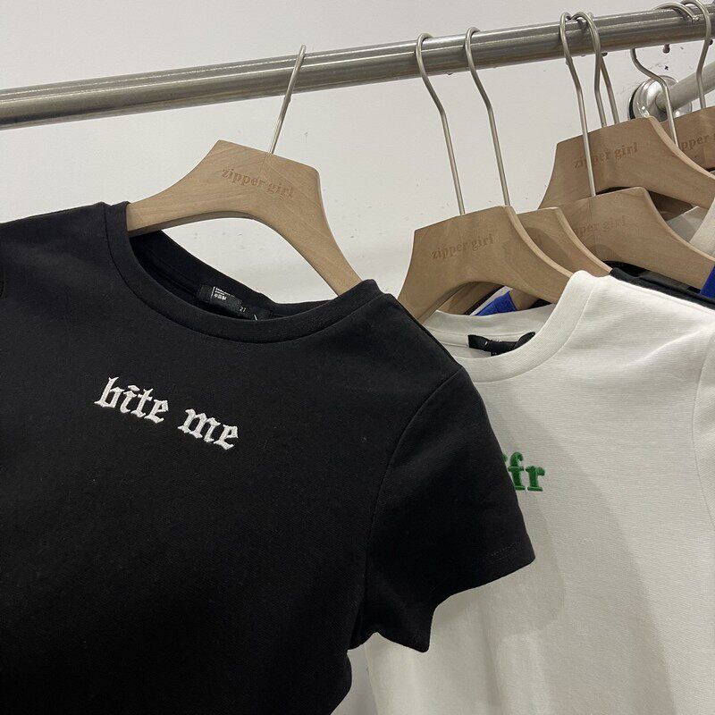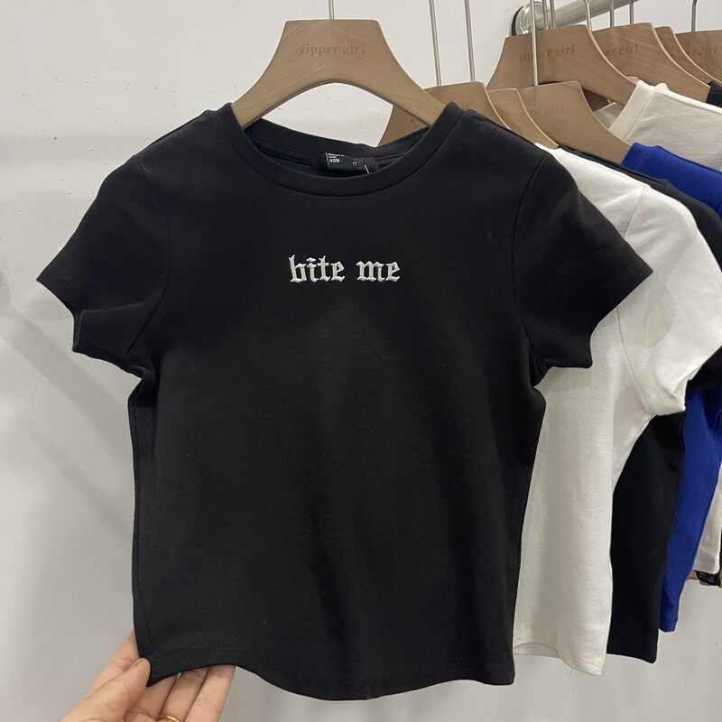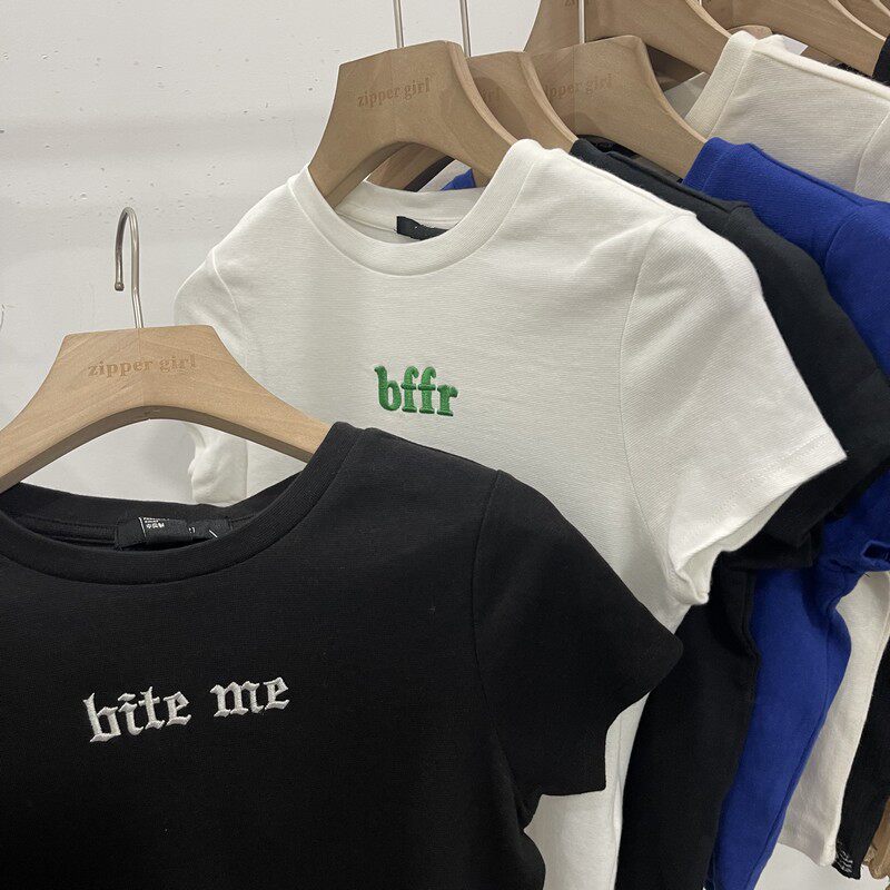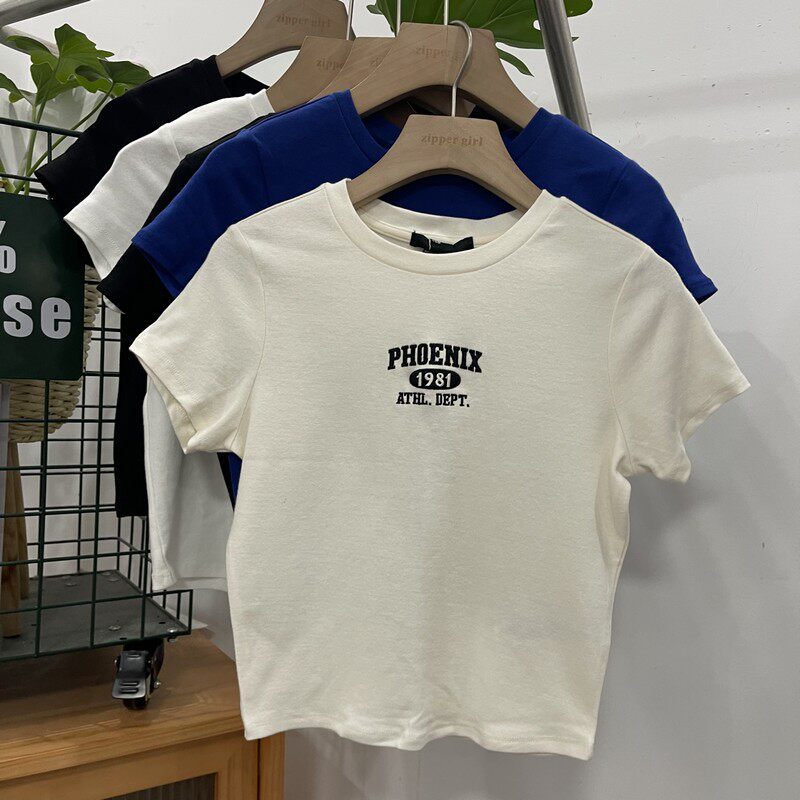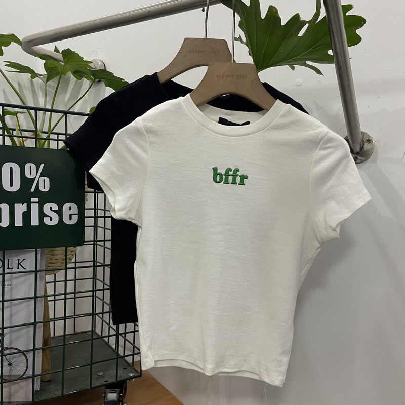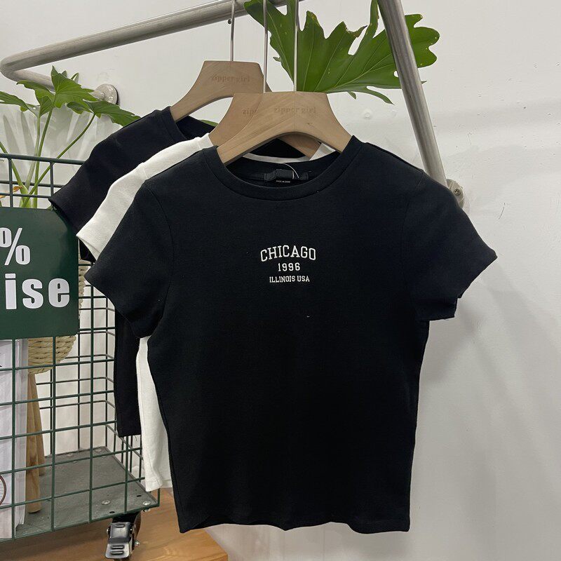 Футболка с коротким рукавом с круглым воротником, комплект, облегающий крой, с вышивкой