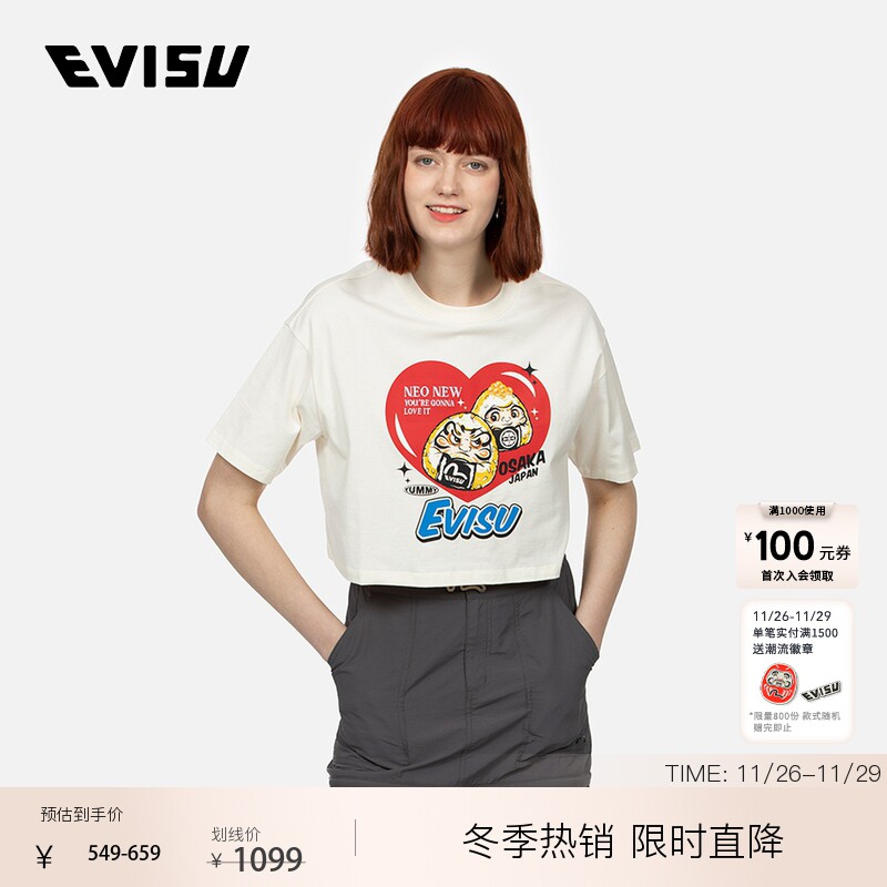 EVISU2024 Женская футболка с короткими рукавами и принтом рисовых шариков Daruma