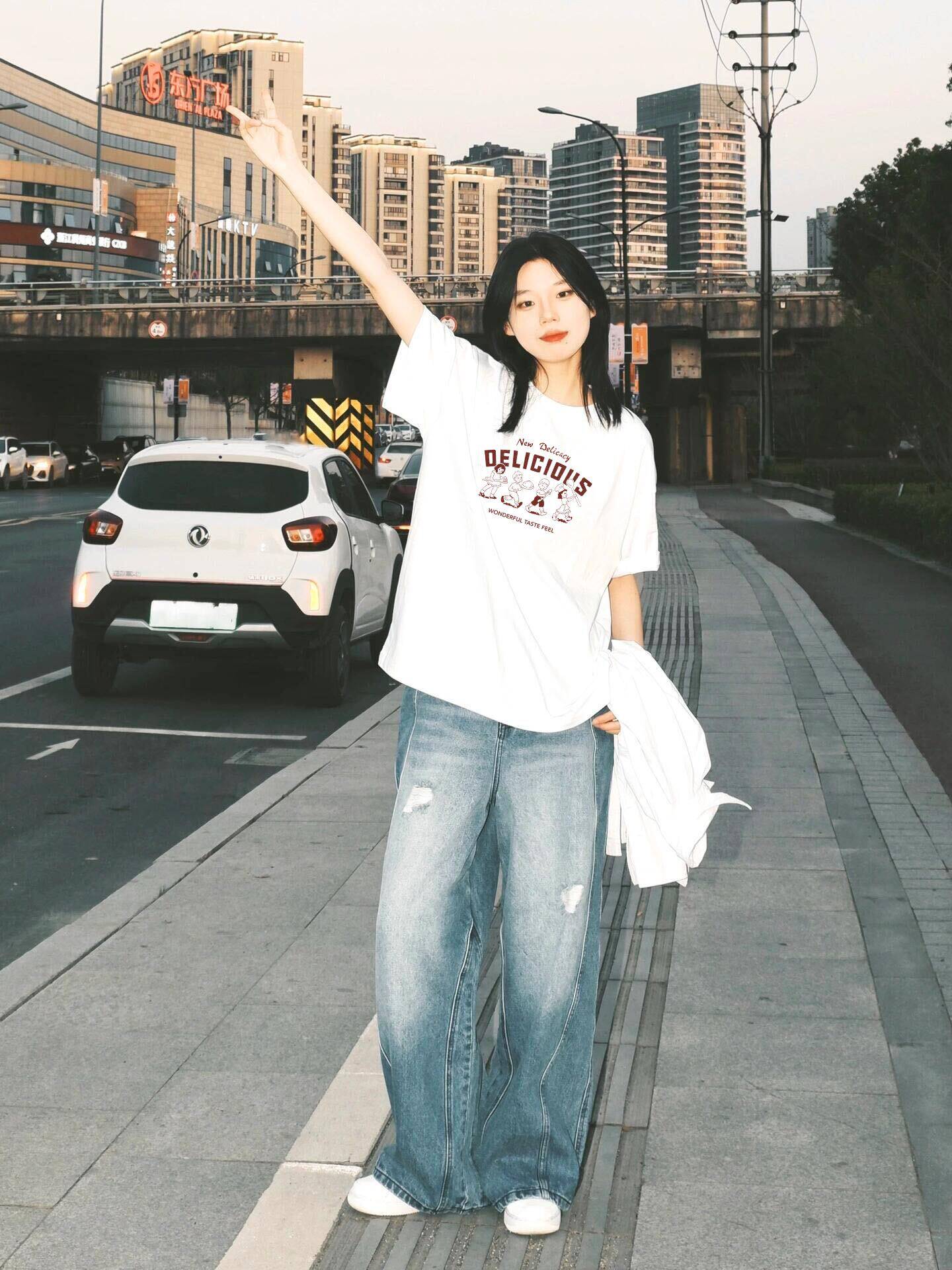 Белая хлопковая летняя ретро брендовая футболка с коротким рукавом, в американском стиле, оверсайз