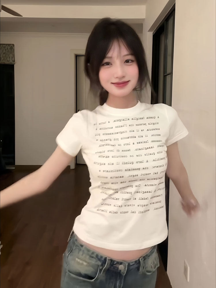 Ретро белая летняя приталенная короткая футболка с коротким рукавом, в американском стиле
