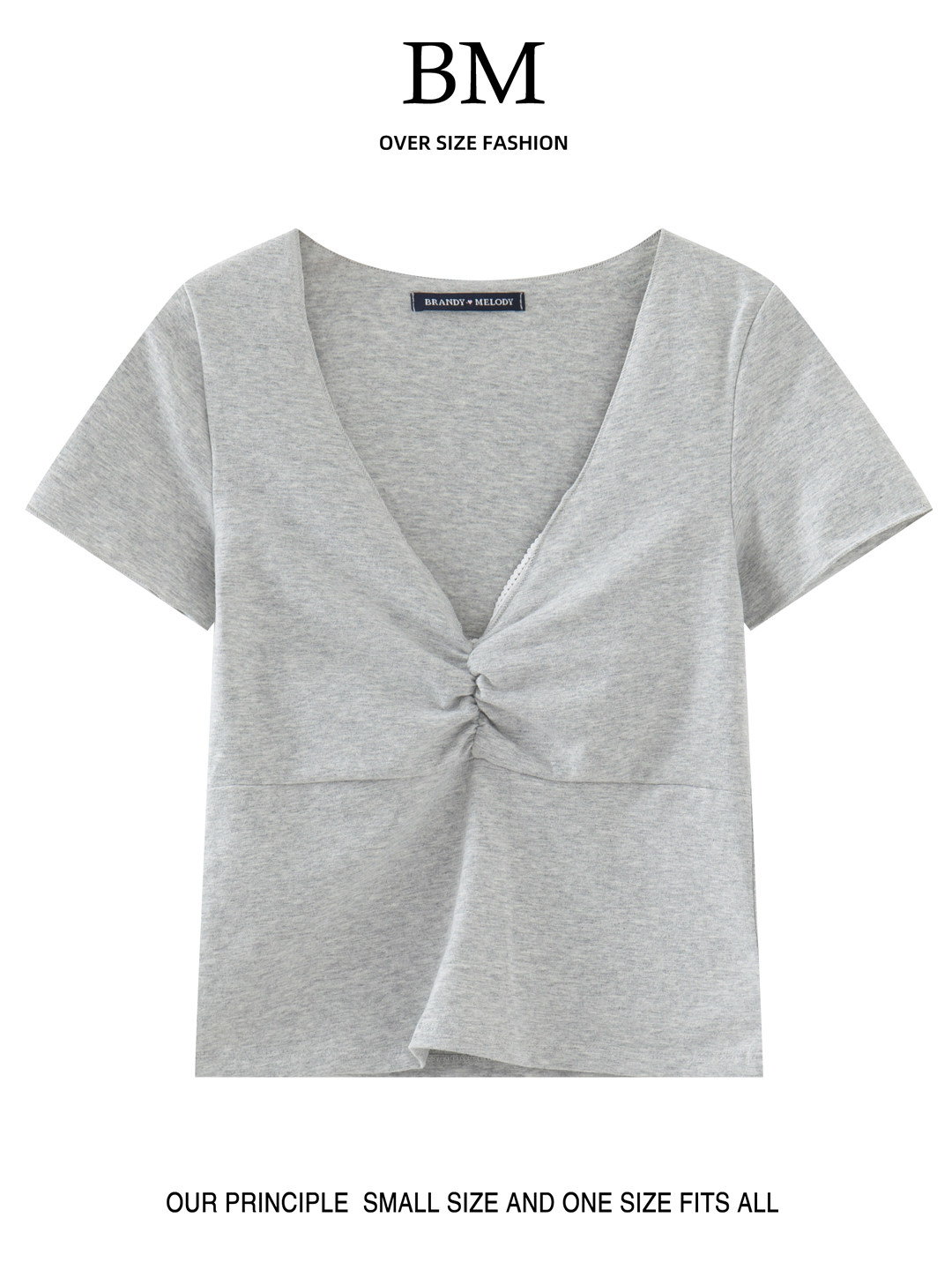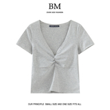BM Fashion American New Pleated Closed V-образная футболка с короткими рукавами