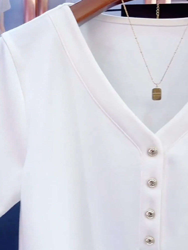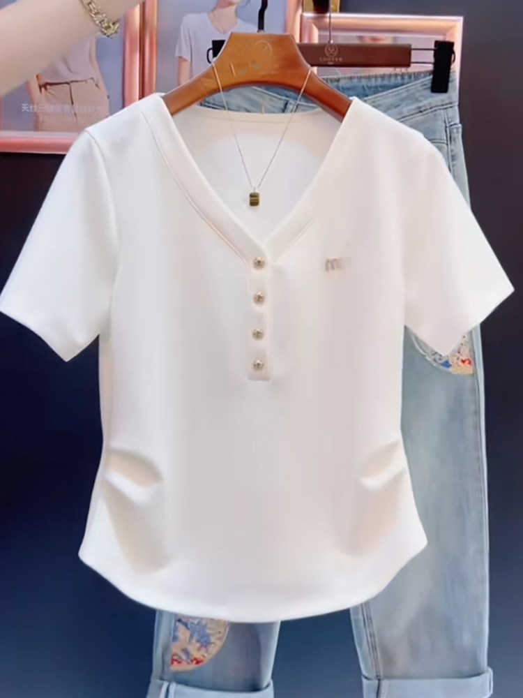 Хлопковая летняя футболка с коротким рукавом, дизайнерский приталенный корсет, большой размер, V-образный вырез, тренд сезона