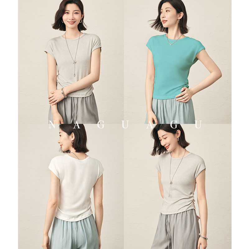 Шерстяная летняя футболка, базовые приятные телу нарукавники, короткий рукав