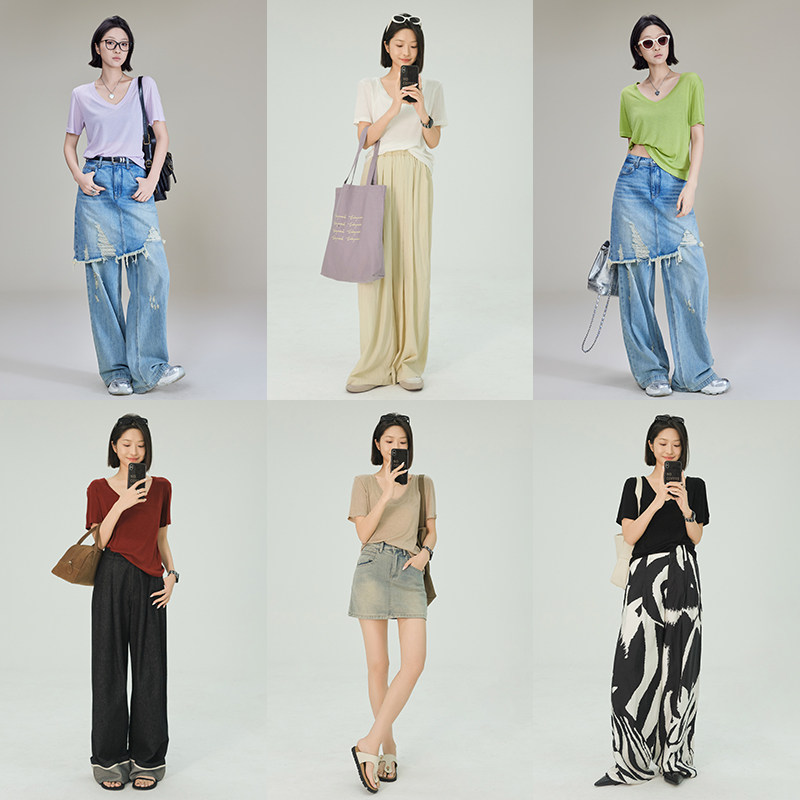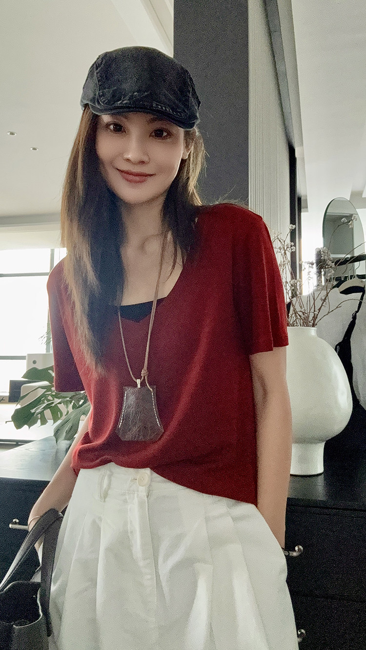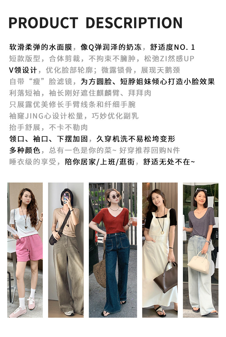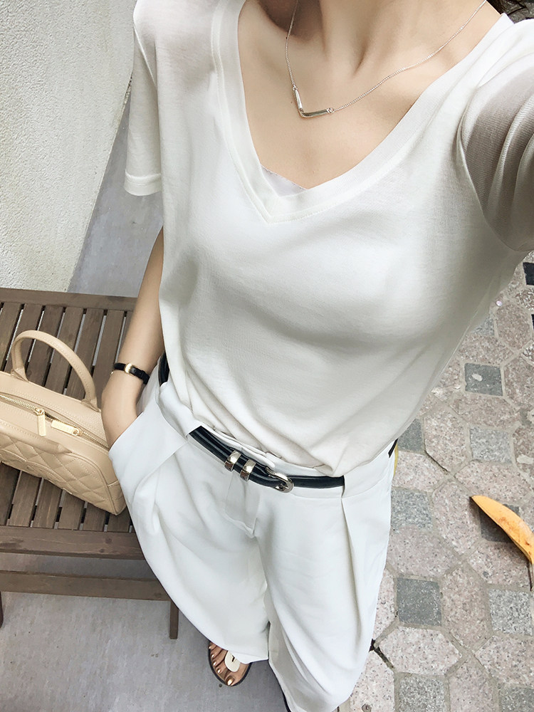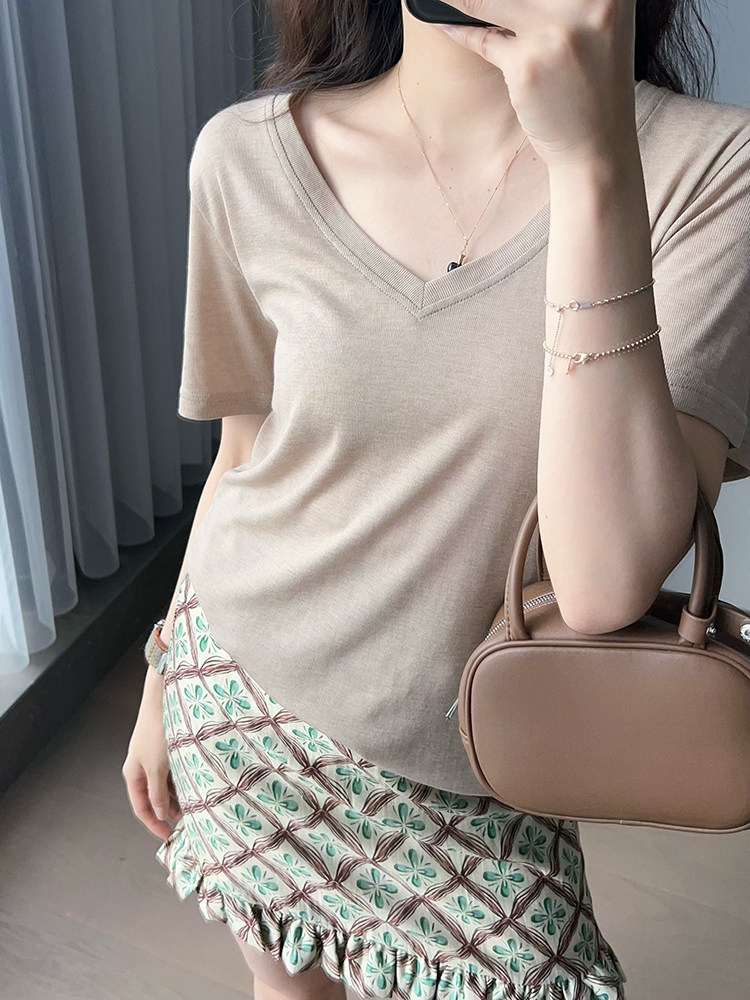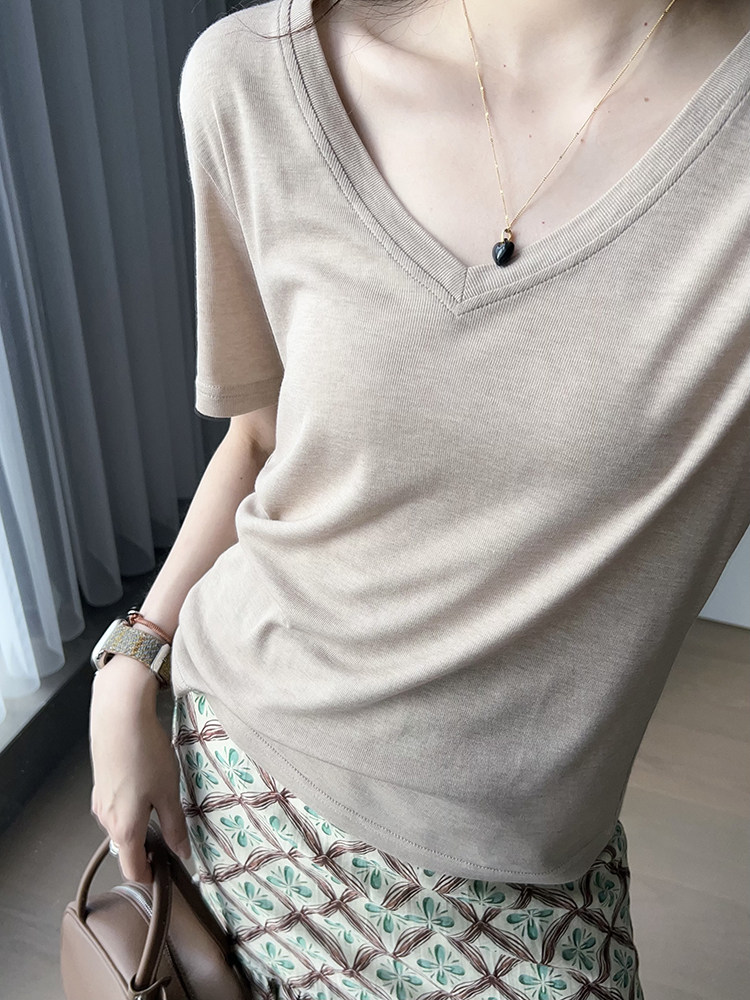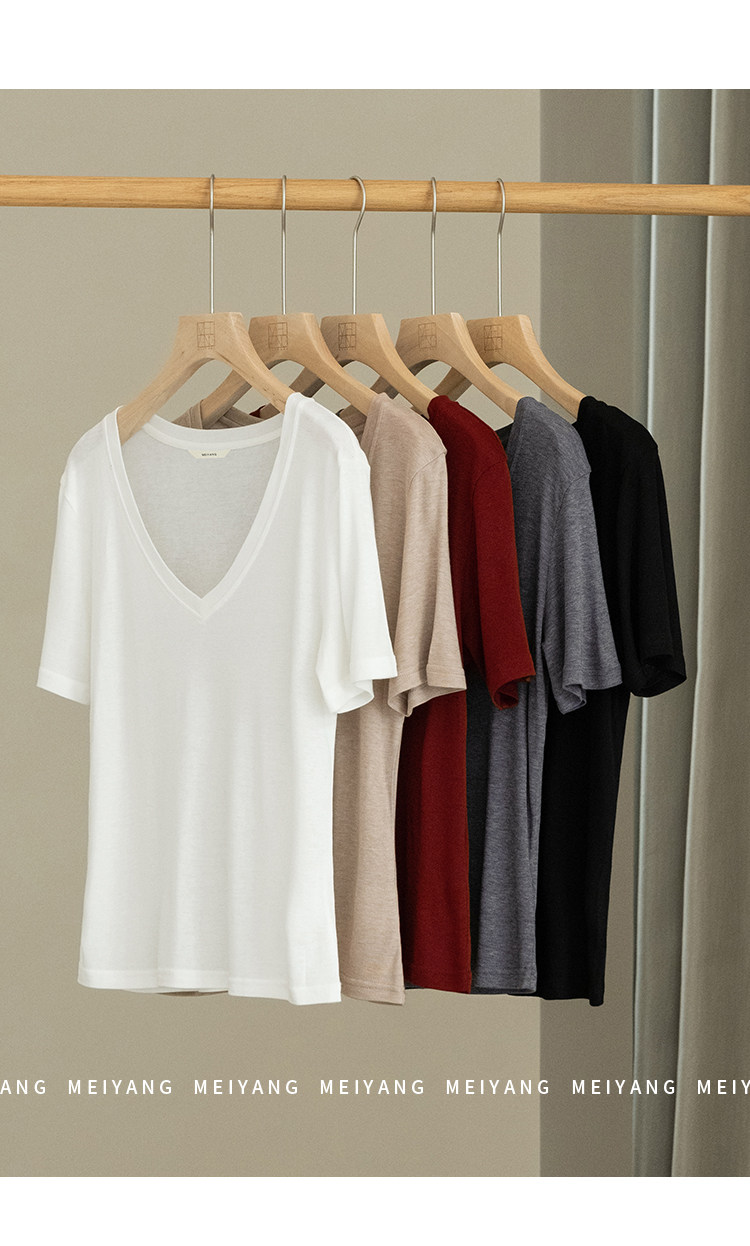 美洋 Шелковая футболка, маска для лица, (в наличии на складе), V-образный вырез, короткий рукав
