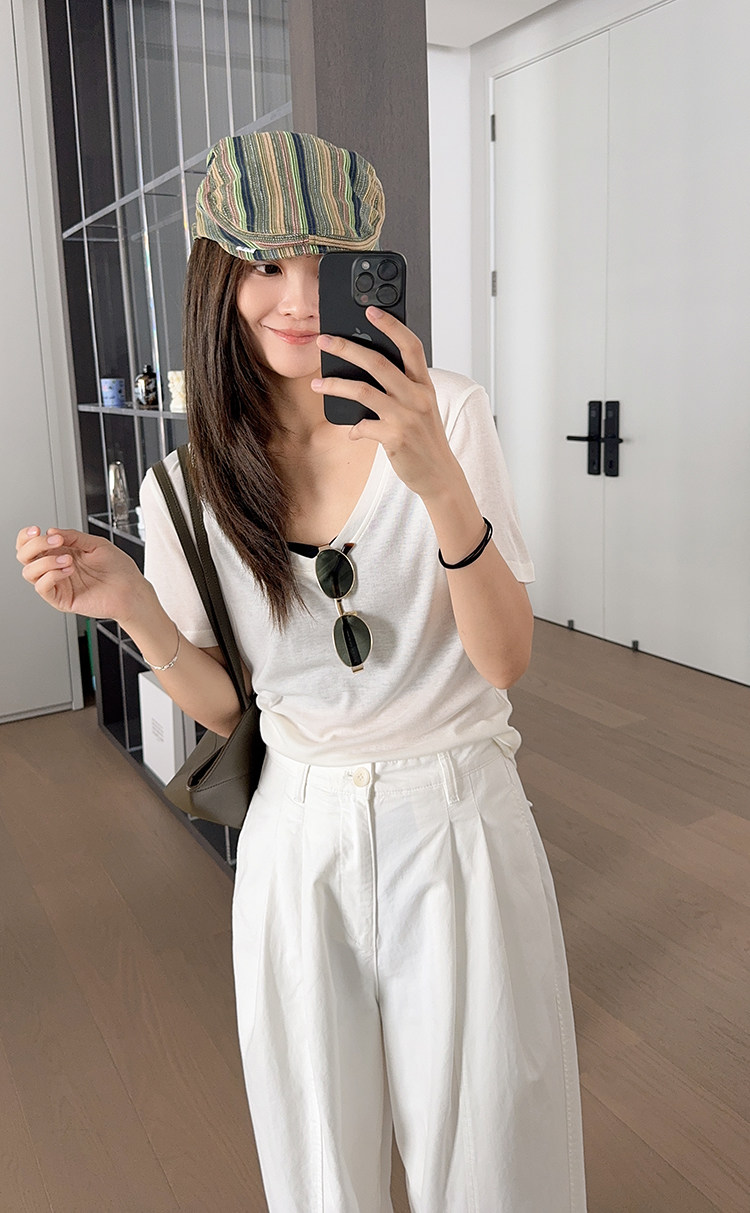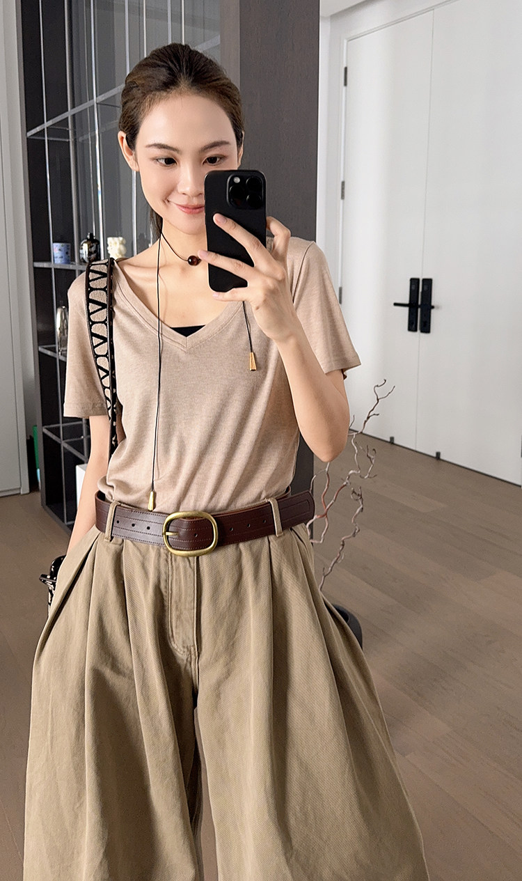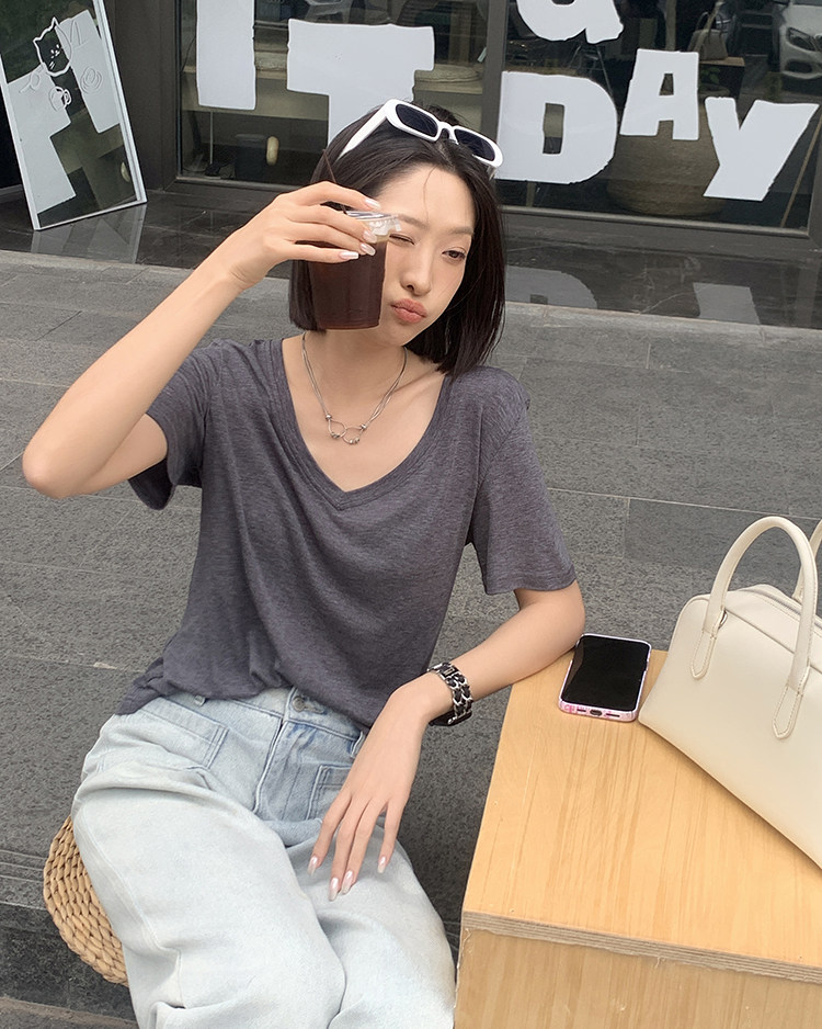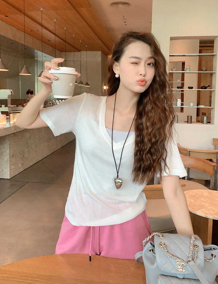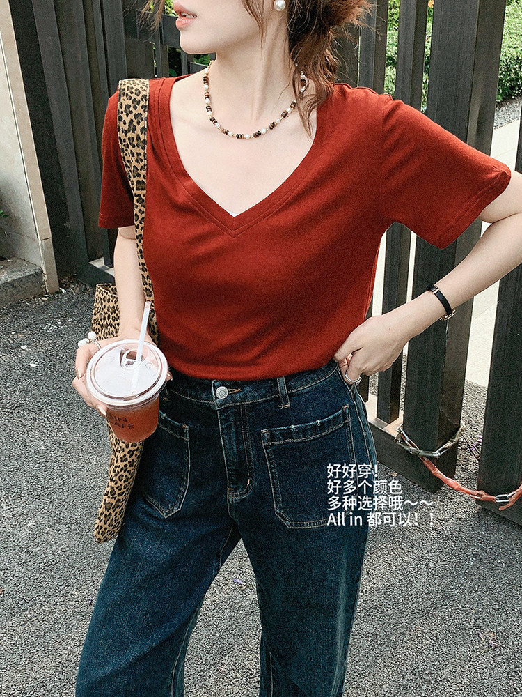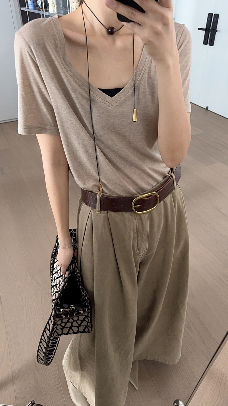 美洋 Шелковая футболка, маска для лица, (в наличии на складе), V-образный вырез, короткий рукав