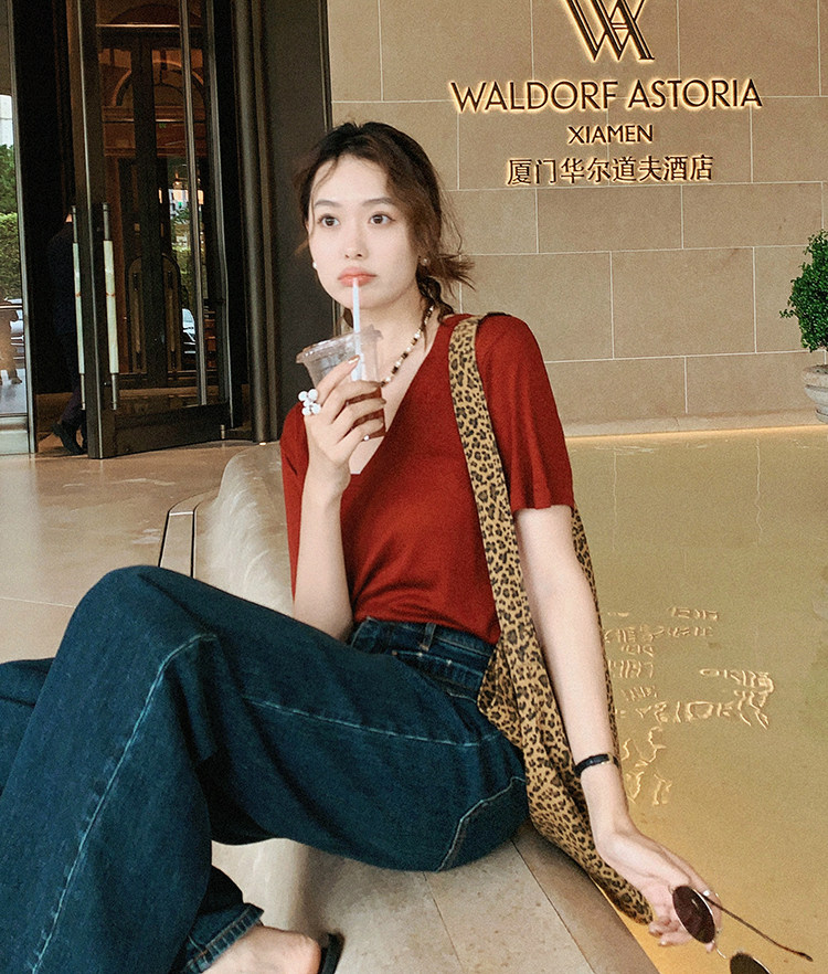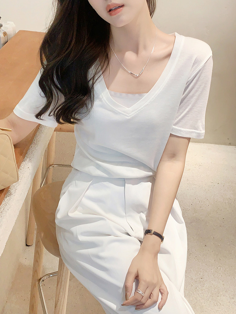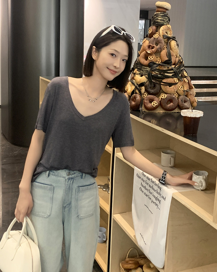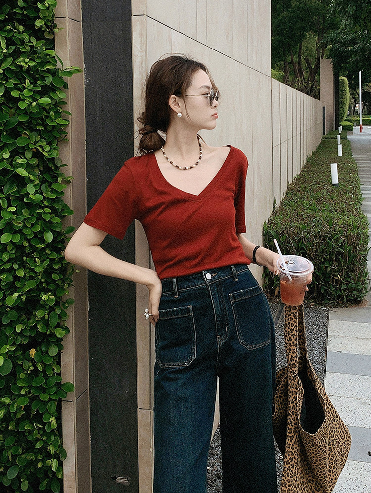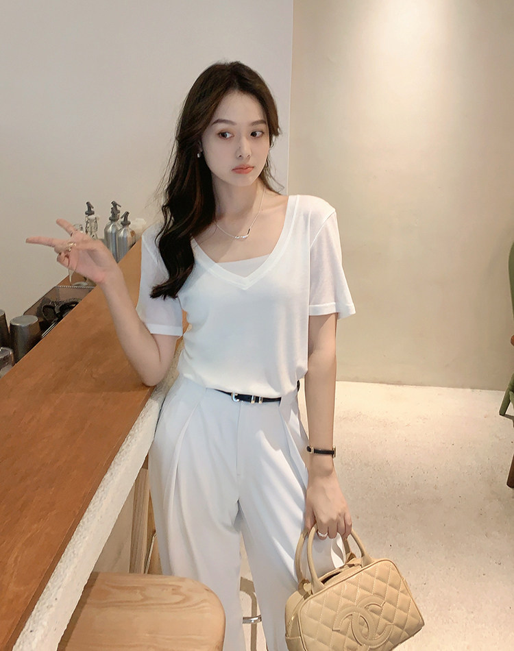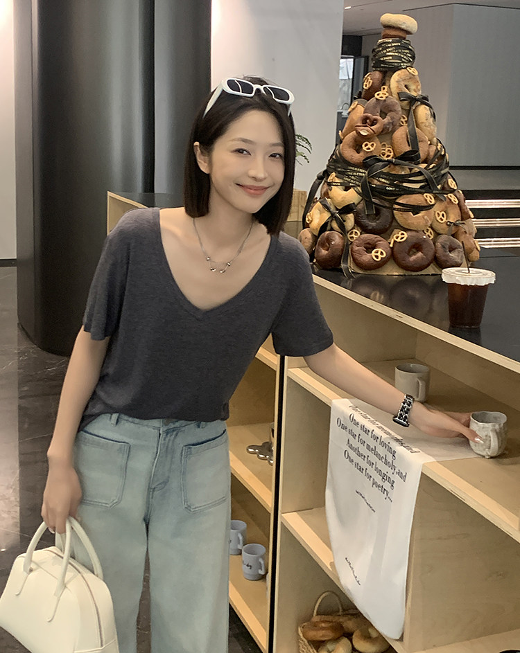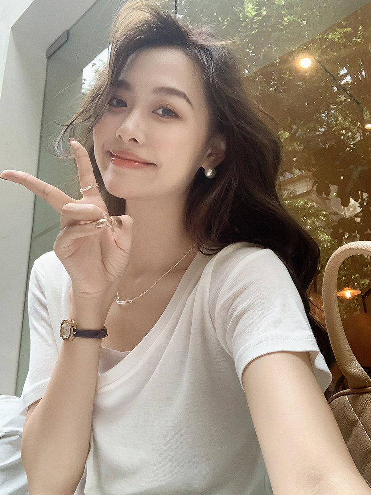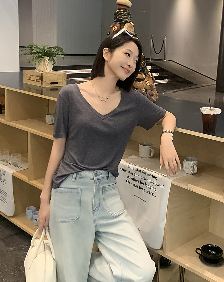 美洋 Шелковая футболка, маска для лица, (в наличии на складе), V-образный вырез, короткий рукав