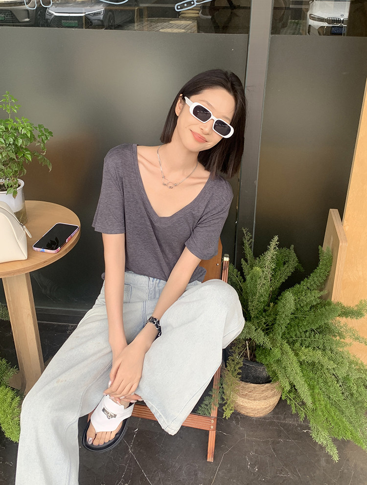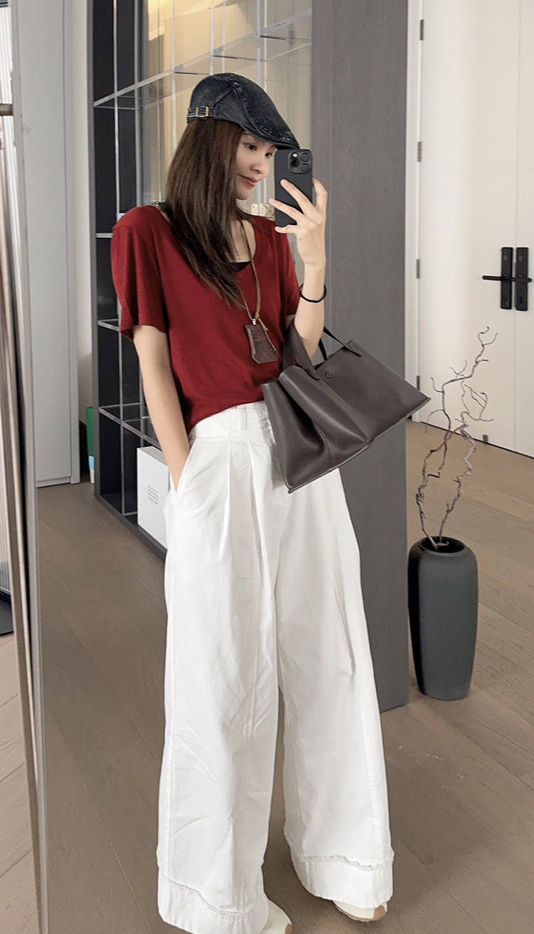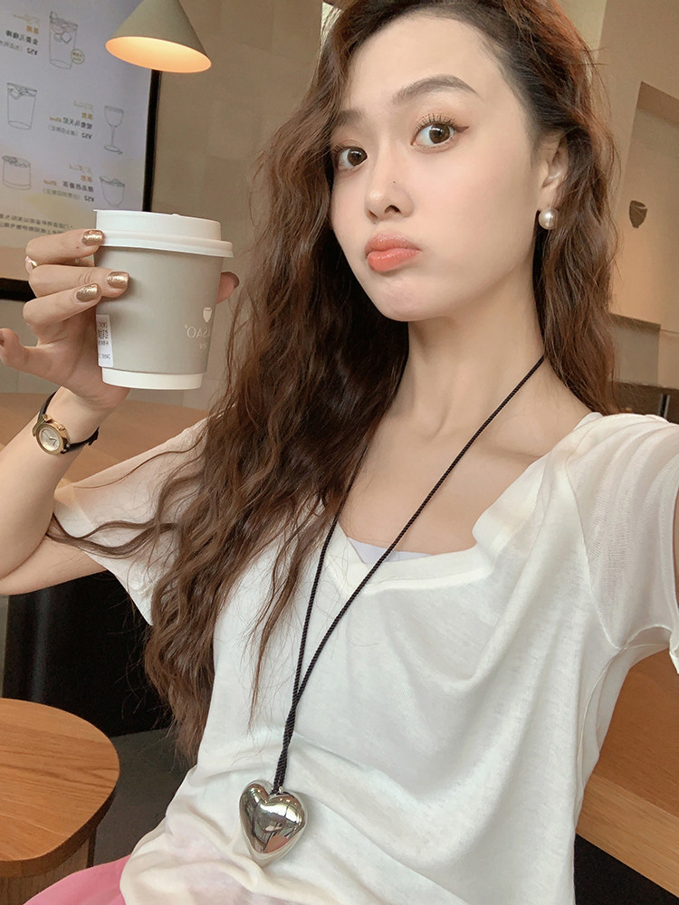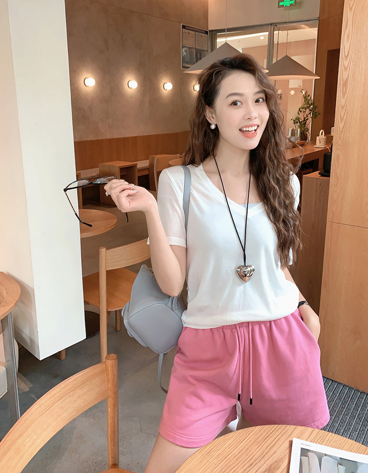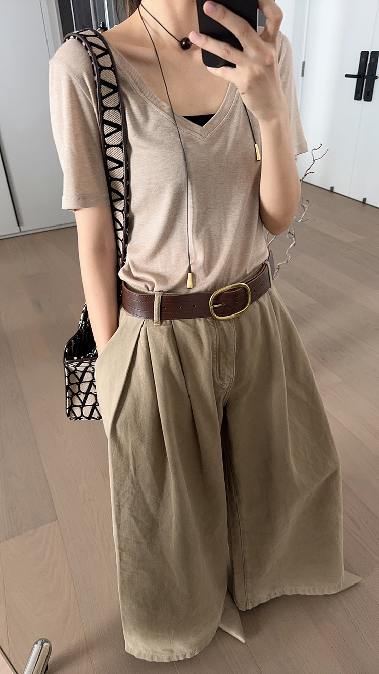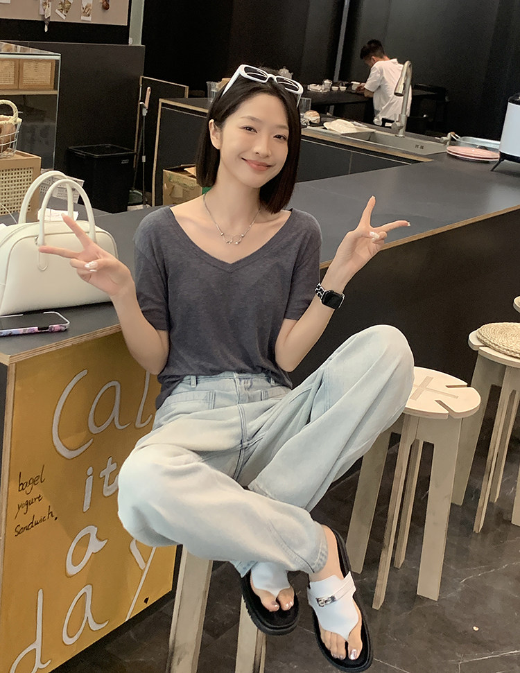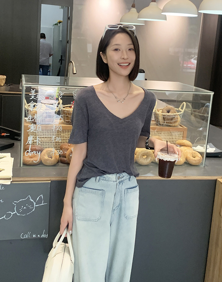 美洋 Шелковая футболка, маска для лица, (в наличии на складе), V-образный вырез, короткий рукав