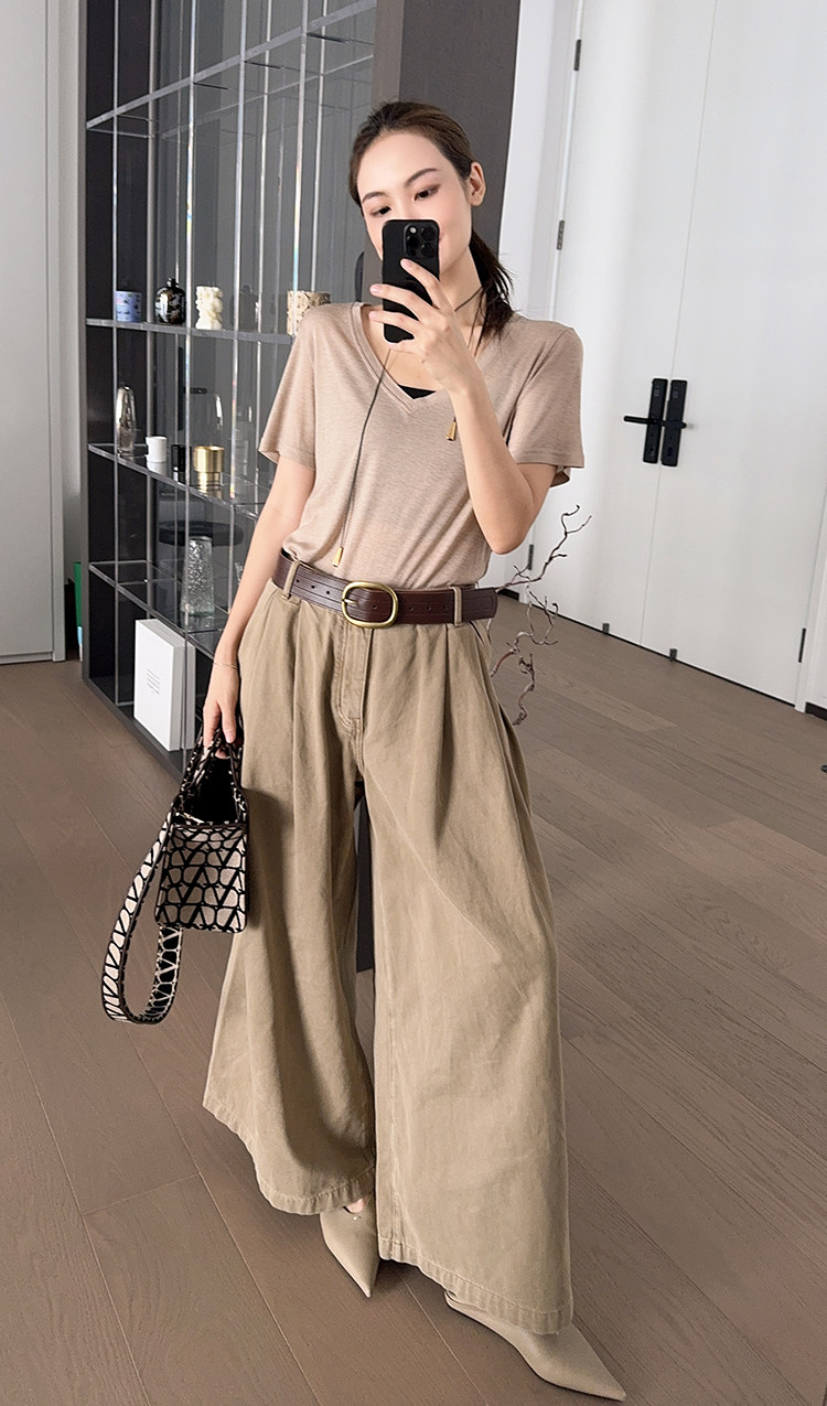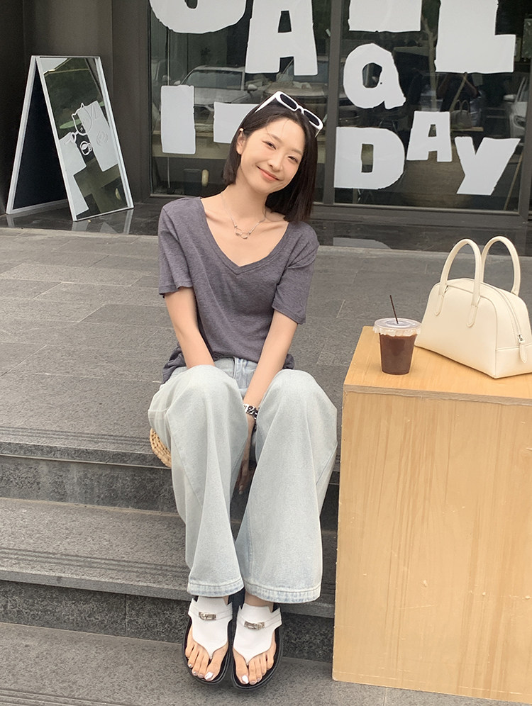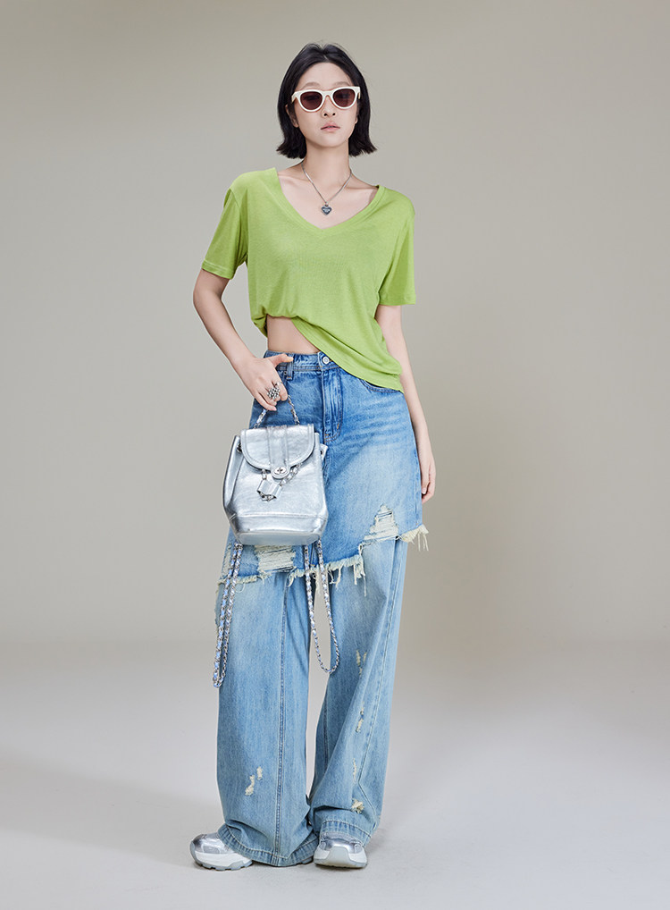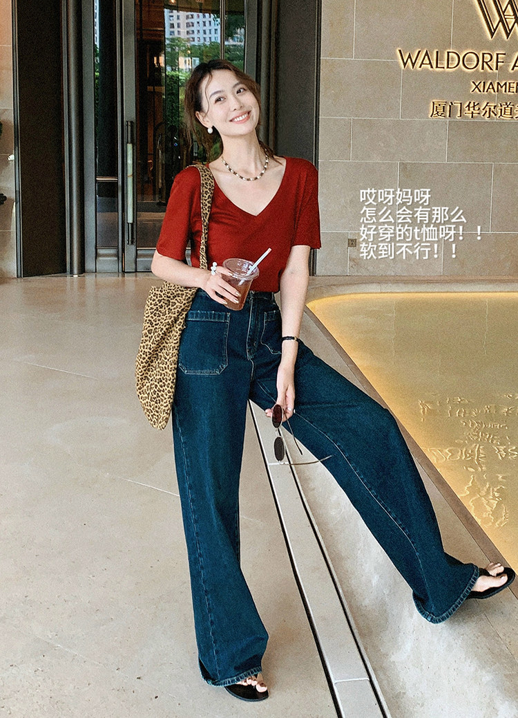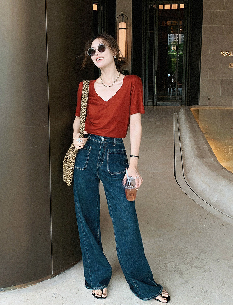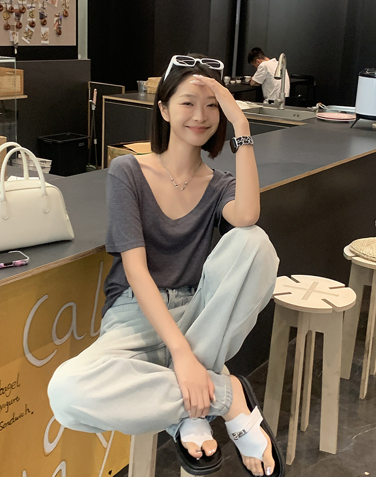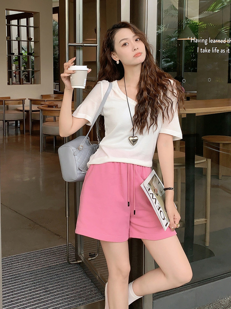 美洋 Шелковая футболка, маска для лица, (в наличии на складе), V-образный вырез, короткий рукав