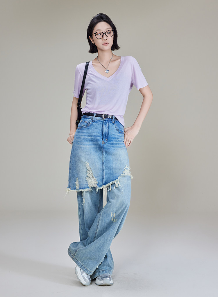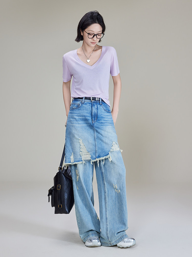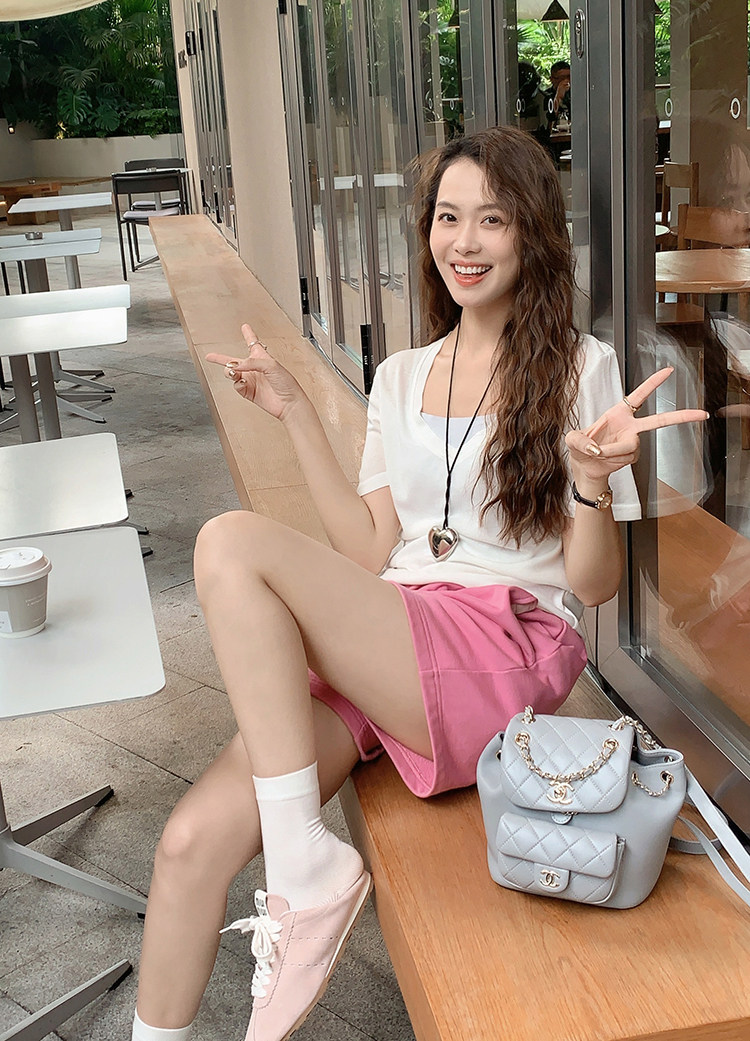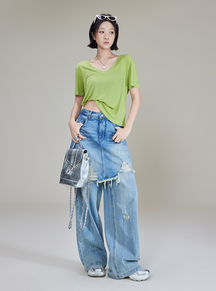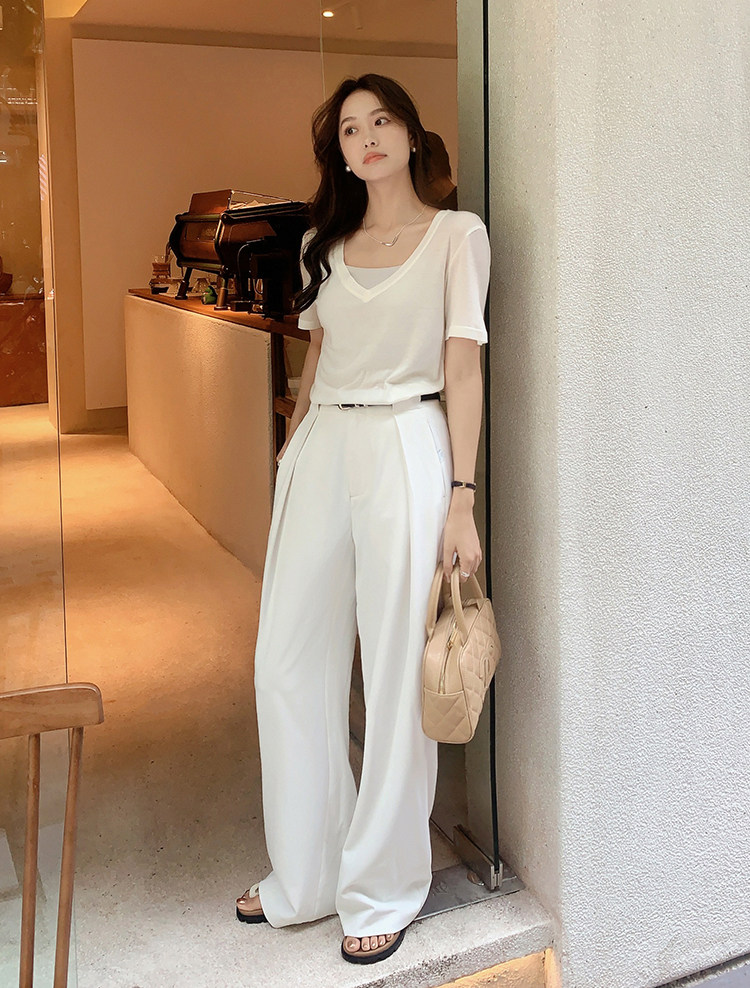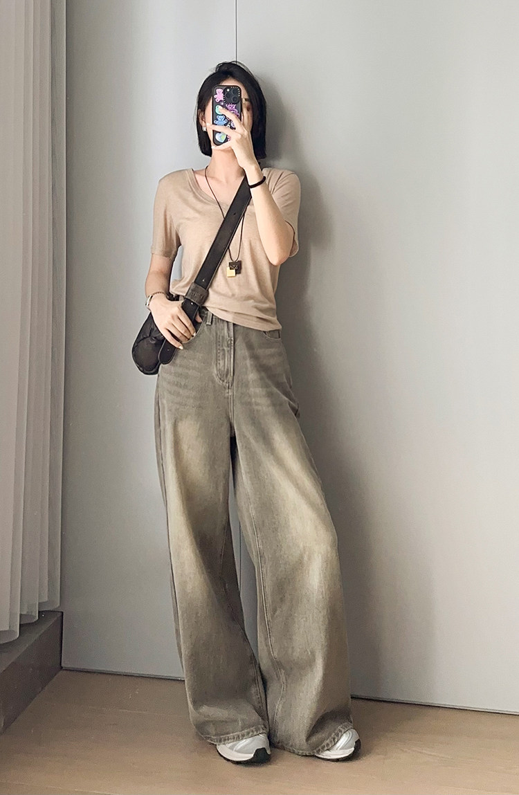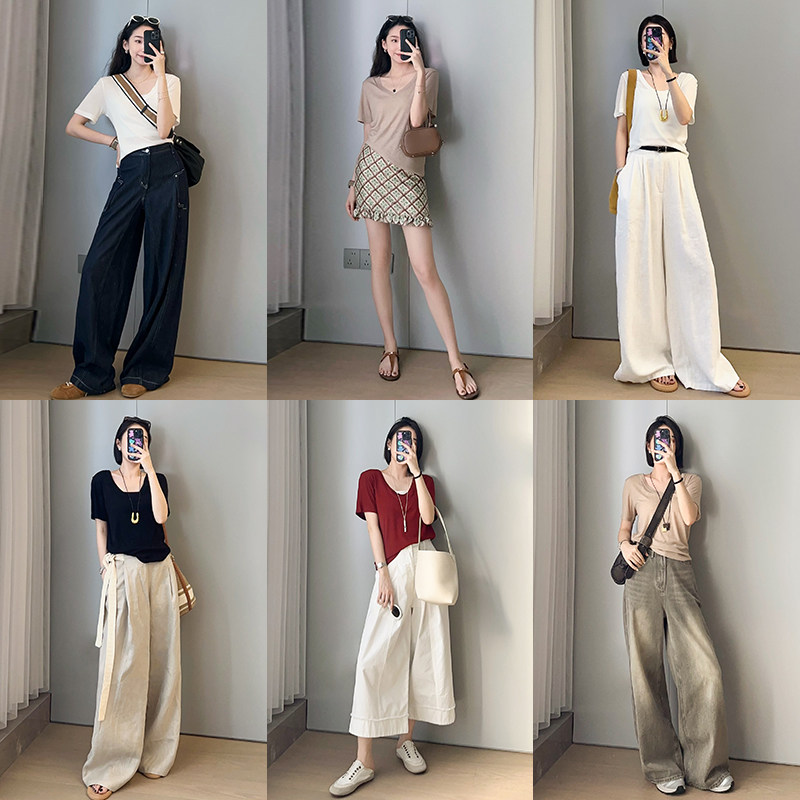 美洋 Шелковая футболка, маска для лица, (в наличии на складе), V-образный вырез, короткий рукав
