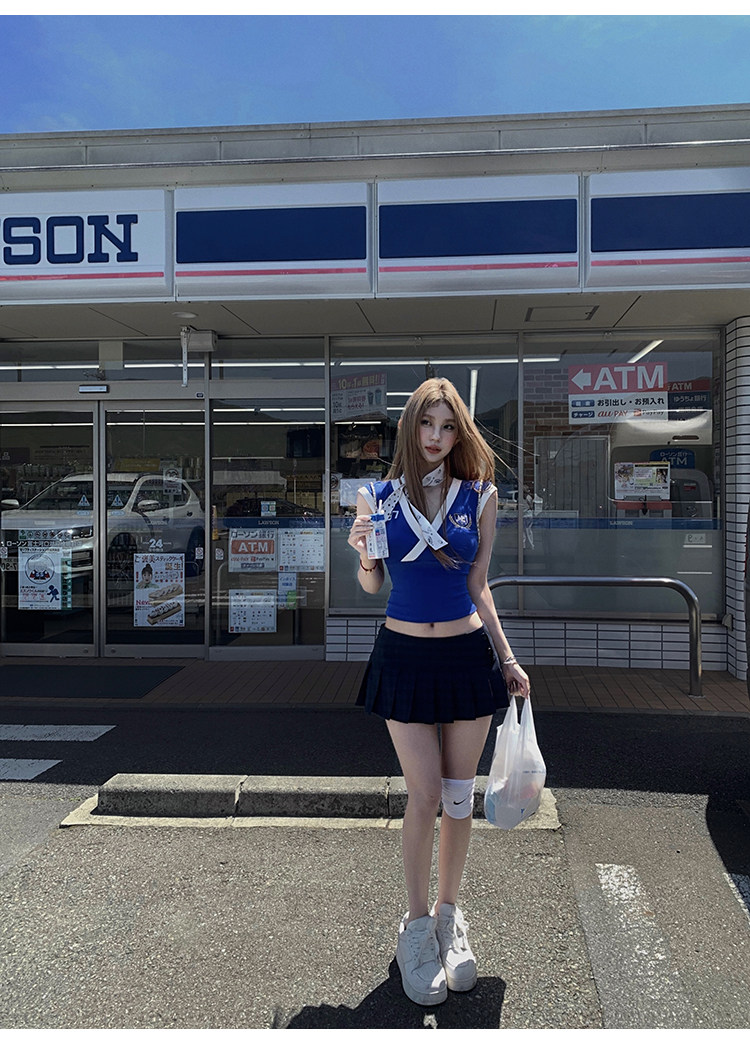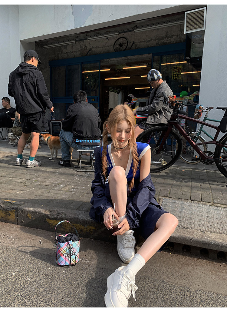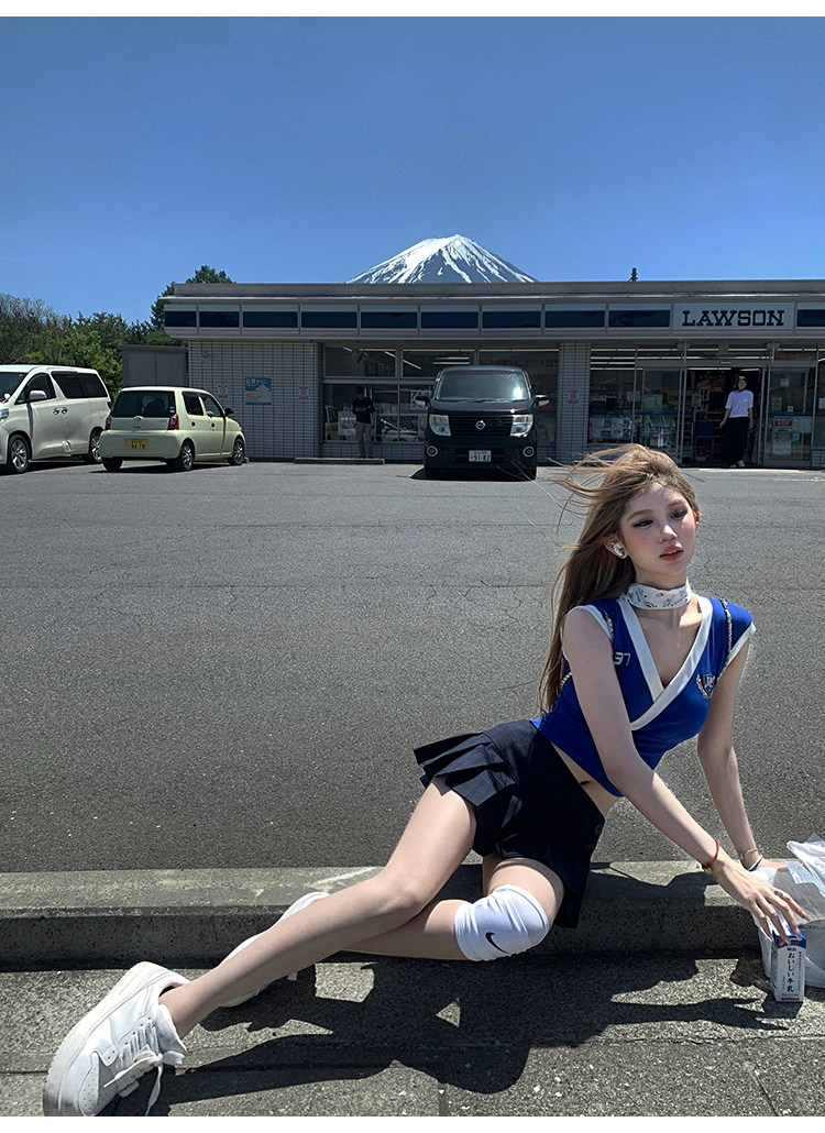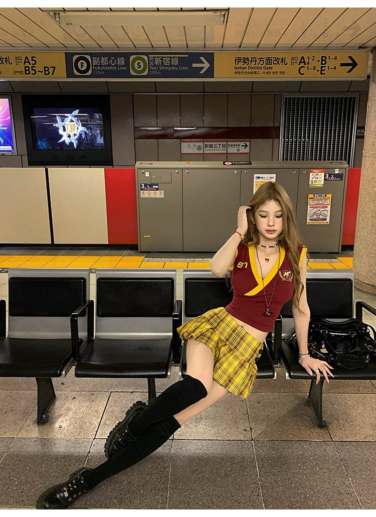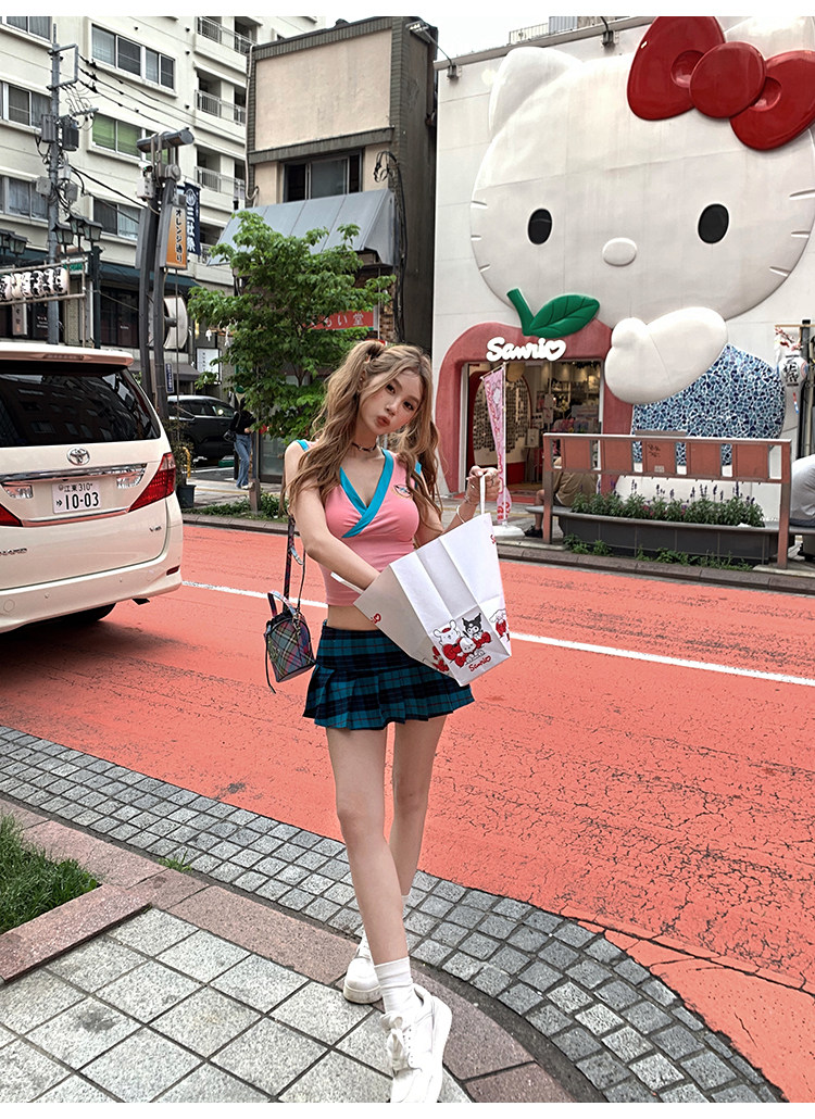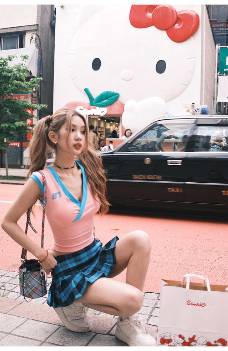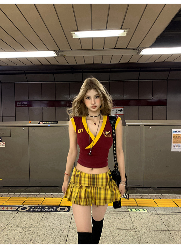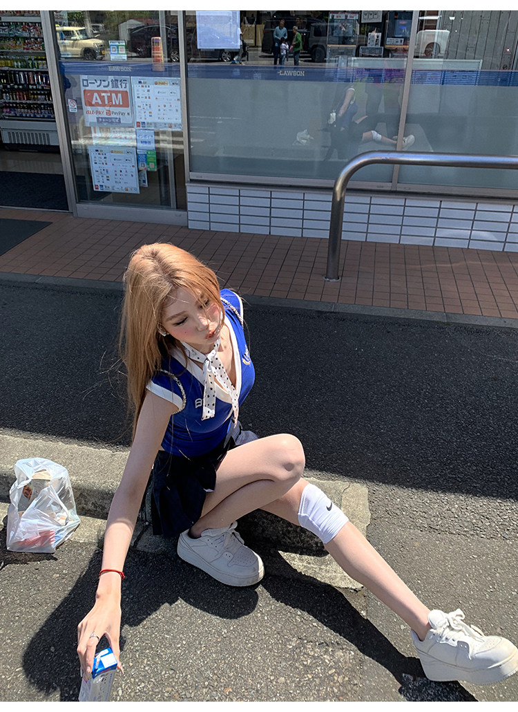 Tongiiuu Американский колледж красота американский ретро V-образный вышитый футболка для вышивки плеча Женская горячая девушка с обтягиванием талию стройное лето