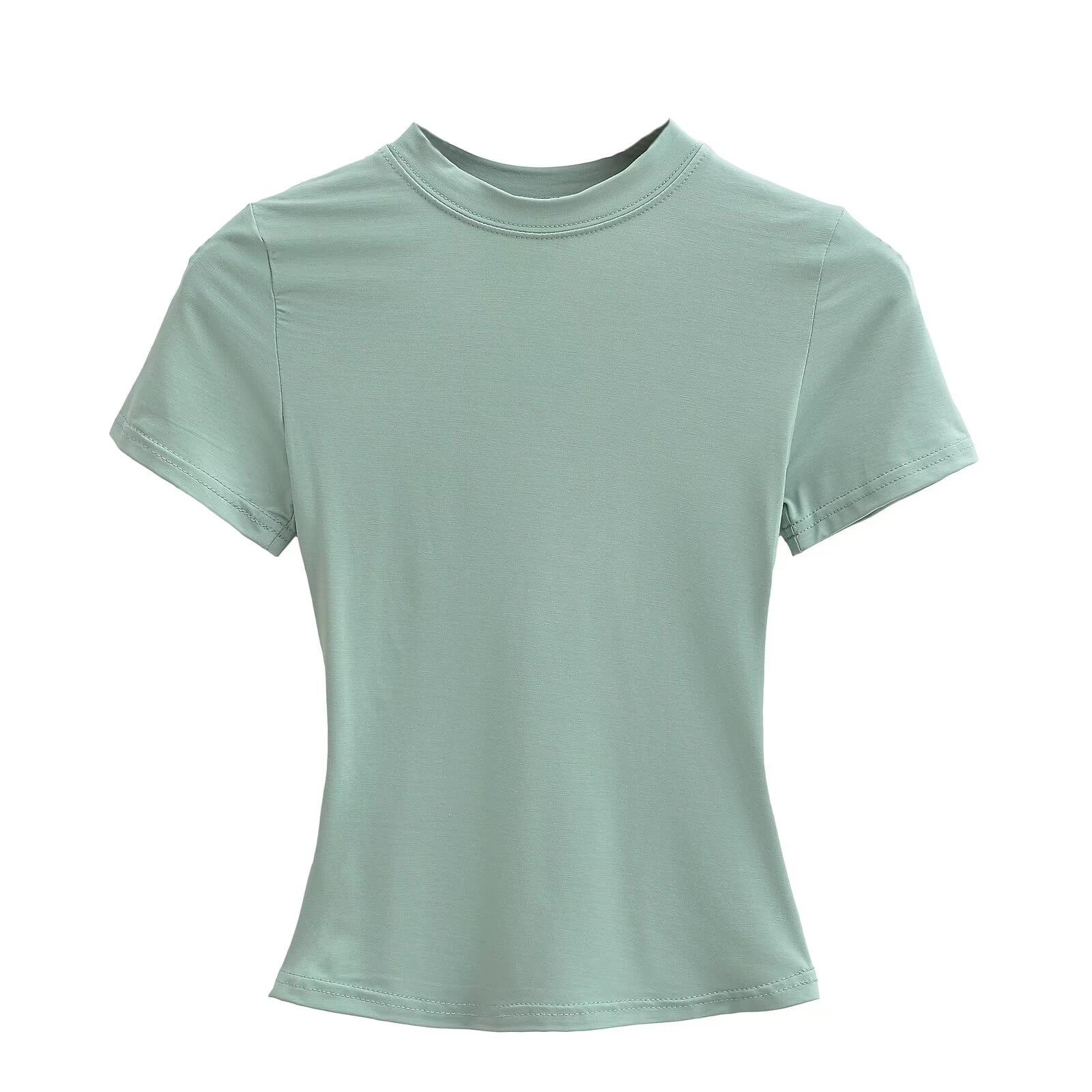 Летняя эластичная короткая базовая футболка с коротким рукавом, европейский стиль, облегающий крой, в обтяжку