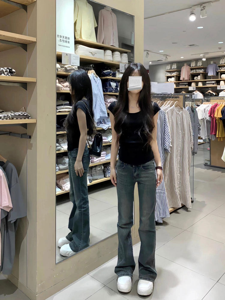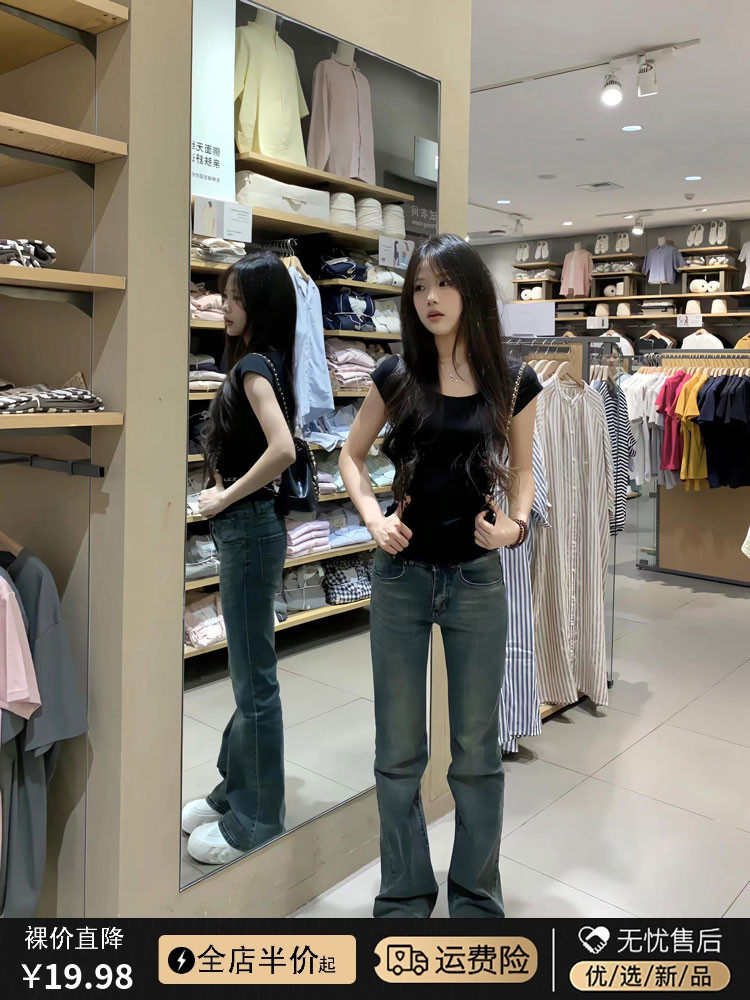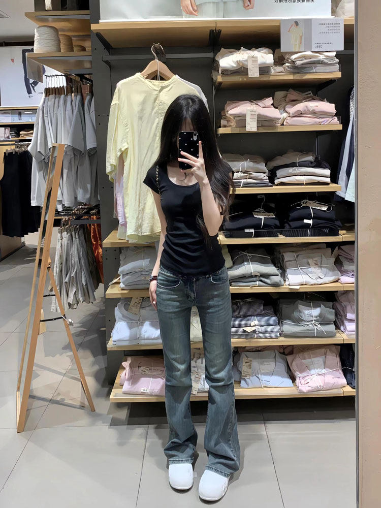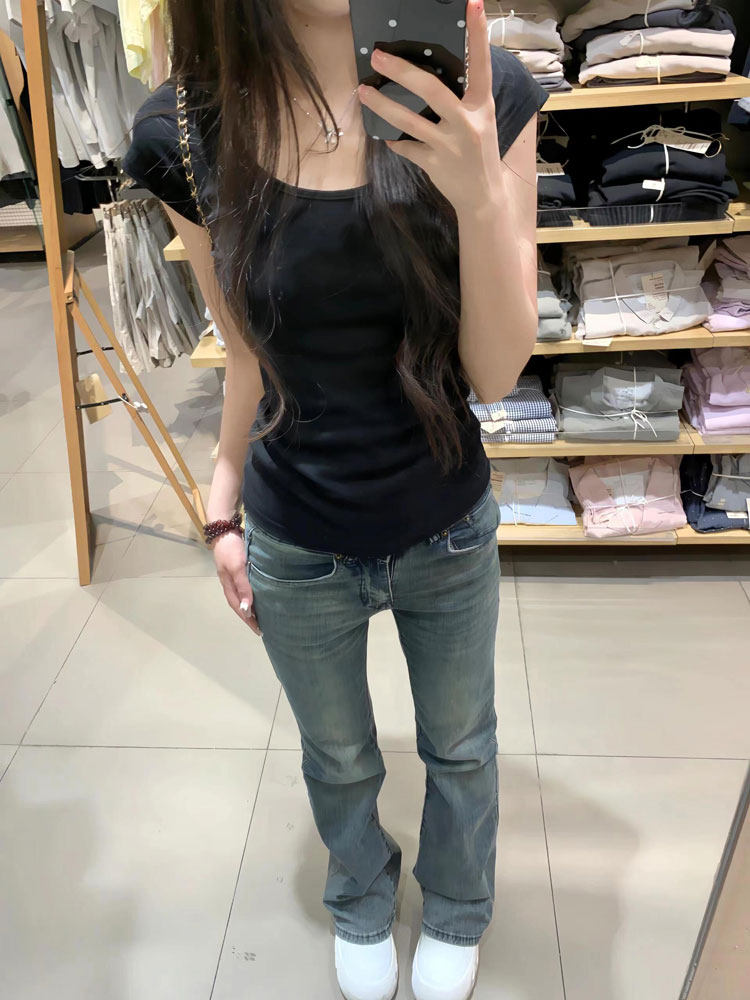 Черная летняя футболка с коротким рукавом, приталенный короткий корсет