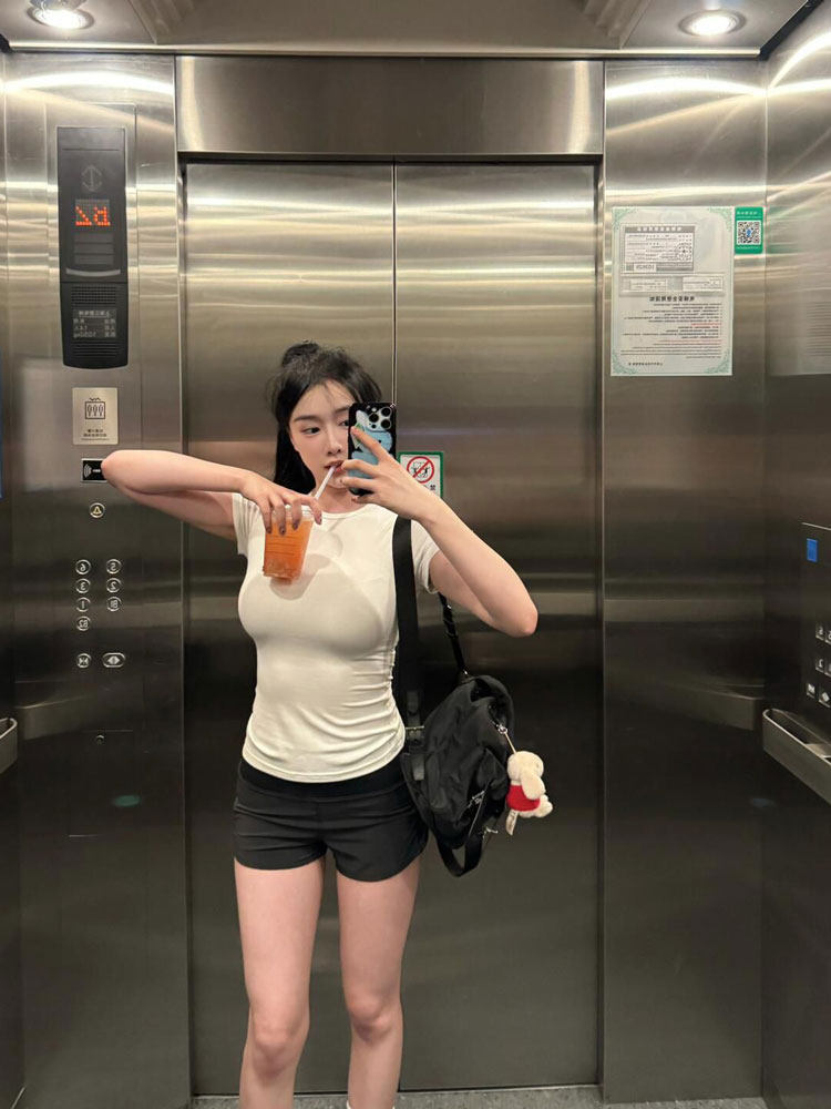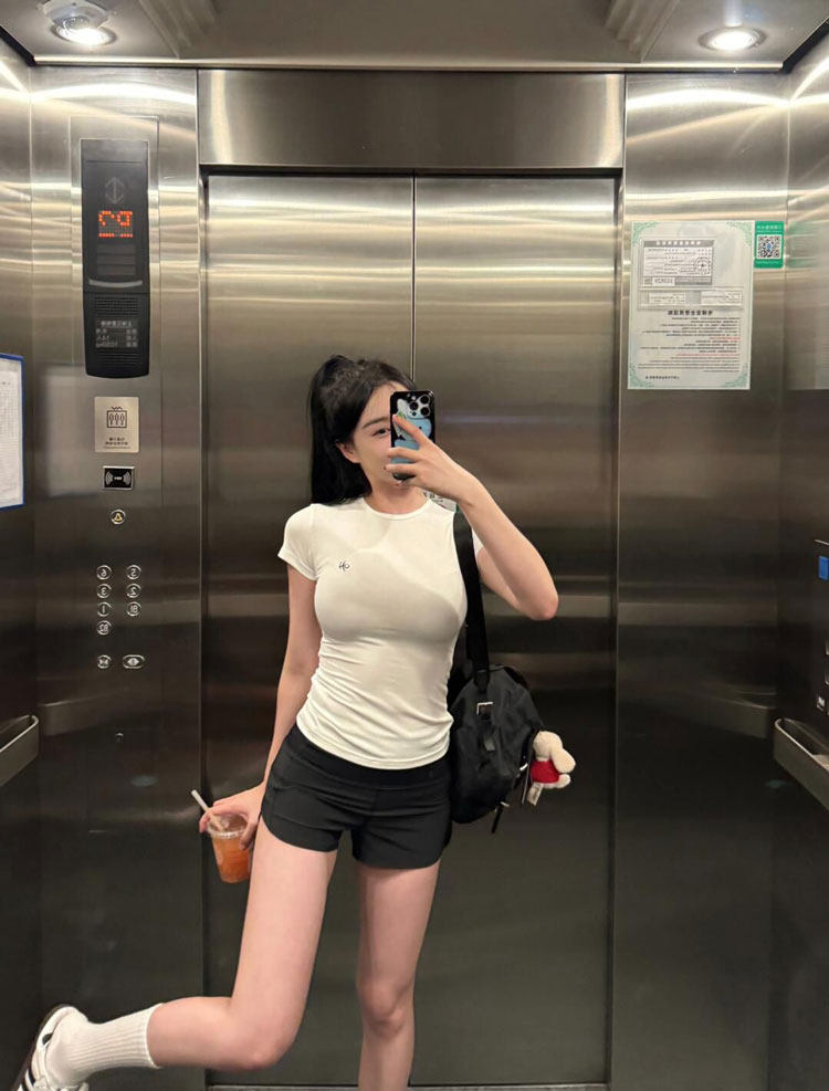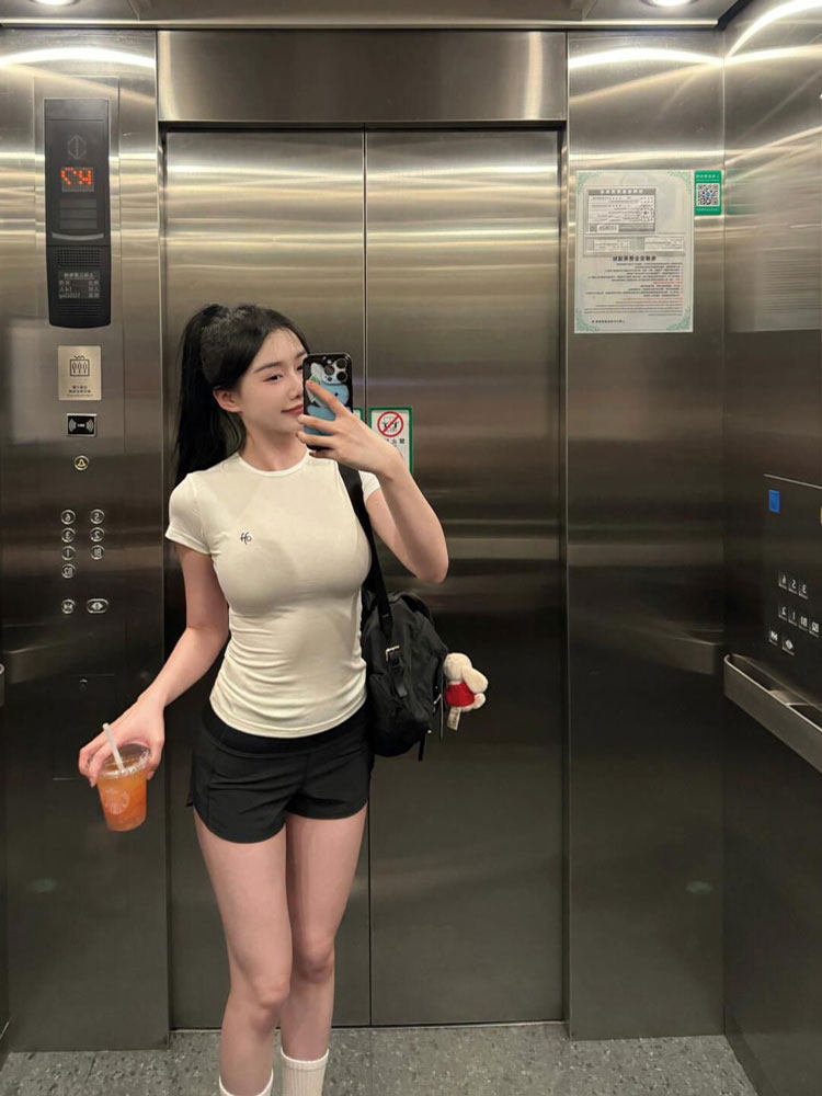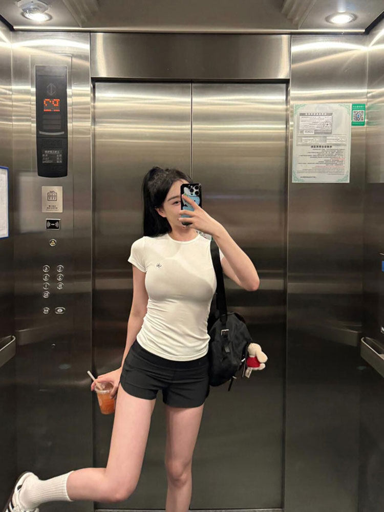 Белая летняя футболка с коротким рукавом, короткий корсет, в обтяжку, облегающий крой, в американском стиле