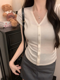Трикотажная футболка, базовый приятный телу короткий летний кардиган, короткий рукав