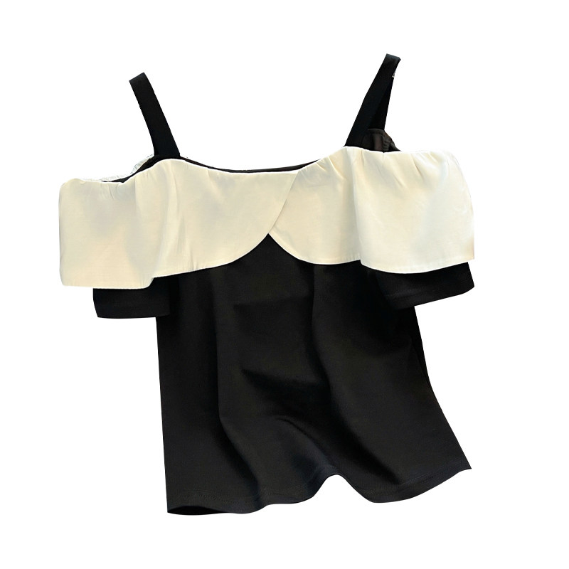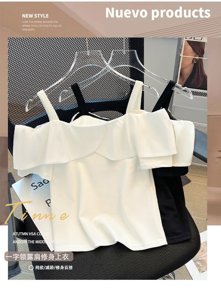 Летняя дизайнерская базовая футболка с коротким рукавом, открытые плечи, эффект подтяжки, тренд сезона, облегающий крой