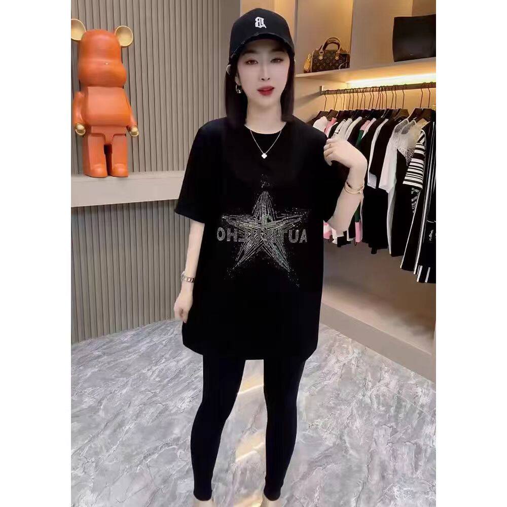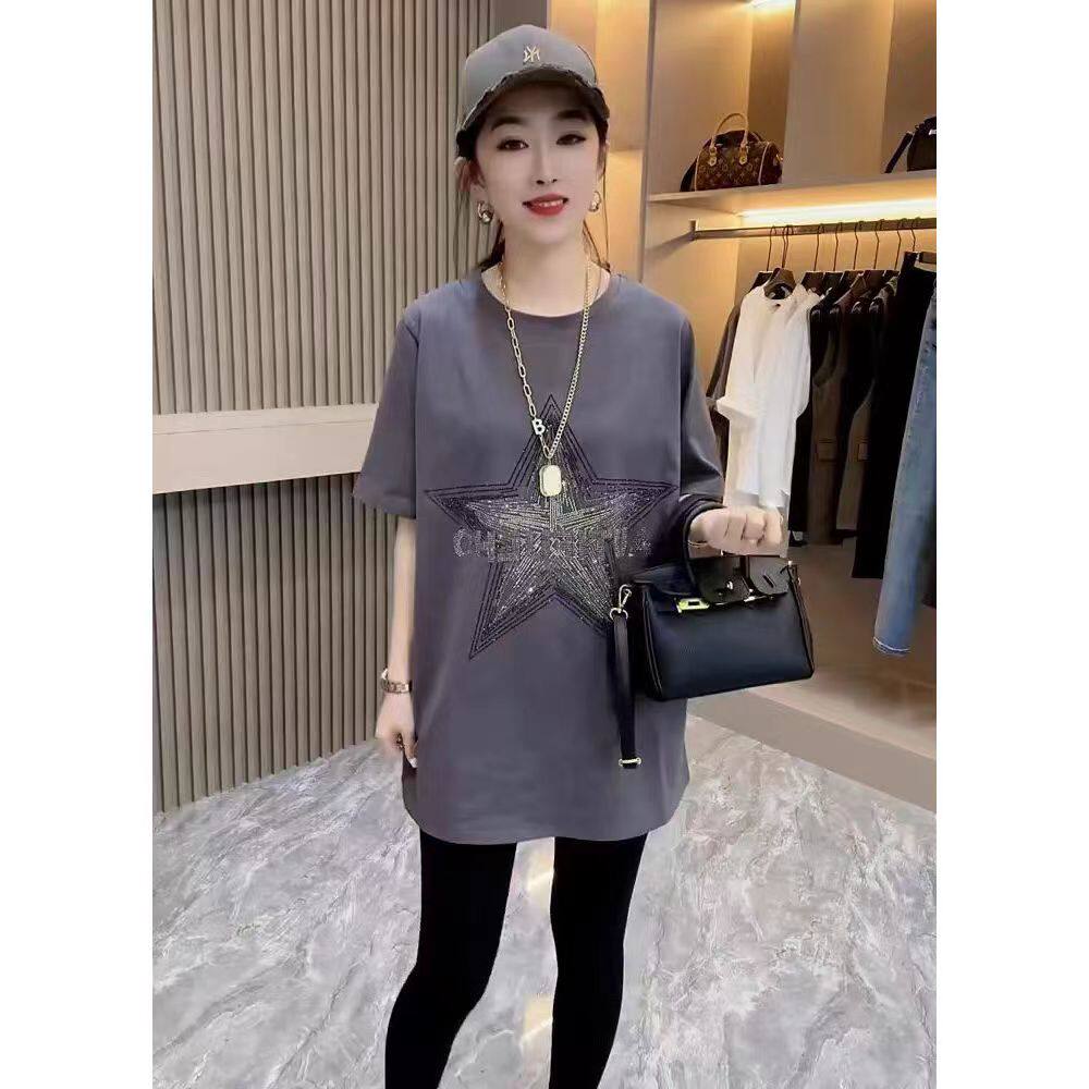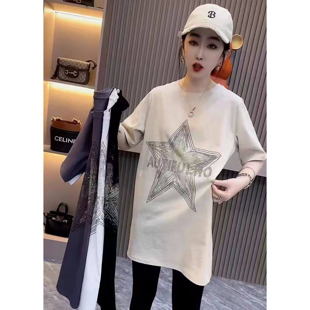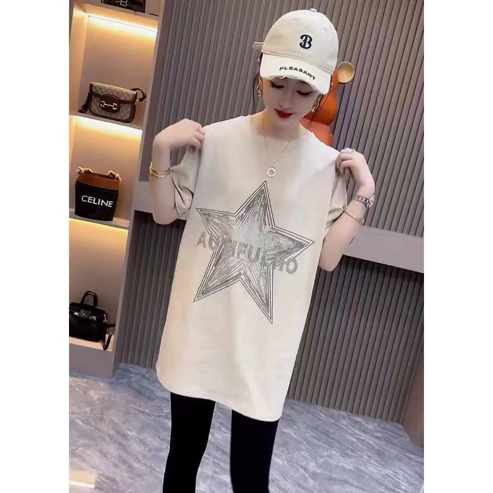 Хлопковая летняя длинная футболка с коротким рукавом, европейский стиль, оверсайз, средней длины