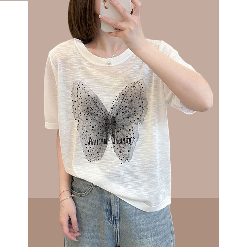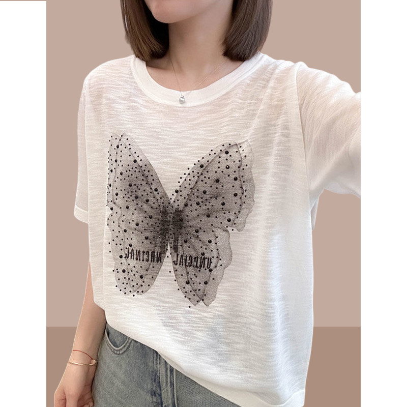 Летняя тонкая футболка с коротким рукавом с круглым воротником, размер, 2025 года, короткий рукав