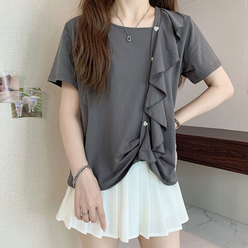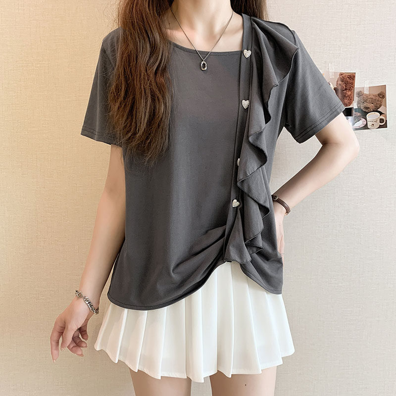 Дизайнерская летняя футболка с коротким рукавом, тренд сезона, большой размер