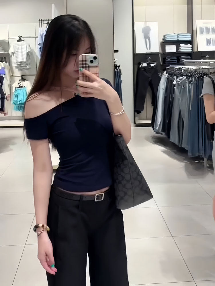 Летняя футболка с коротким рукавом, приталенный корсет, в обтяжку, открытые плечи