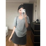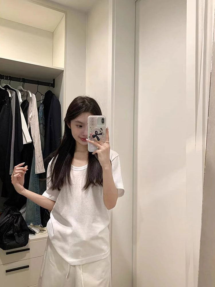 Летняя хлопковая футболка с коротким рукавом, свободный крой