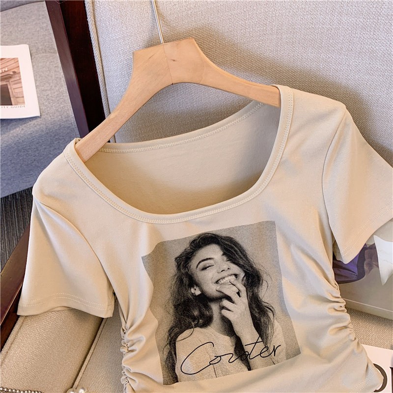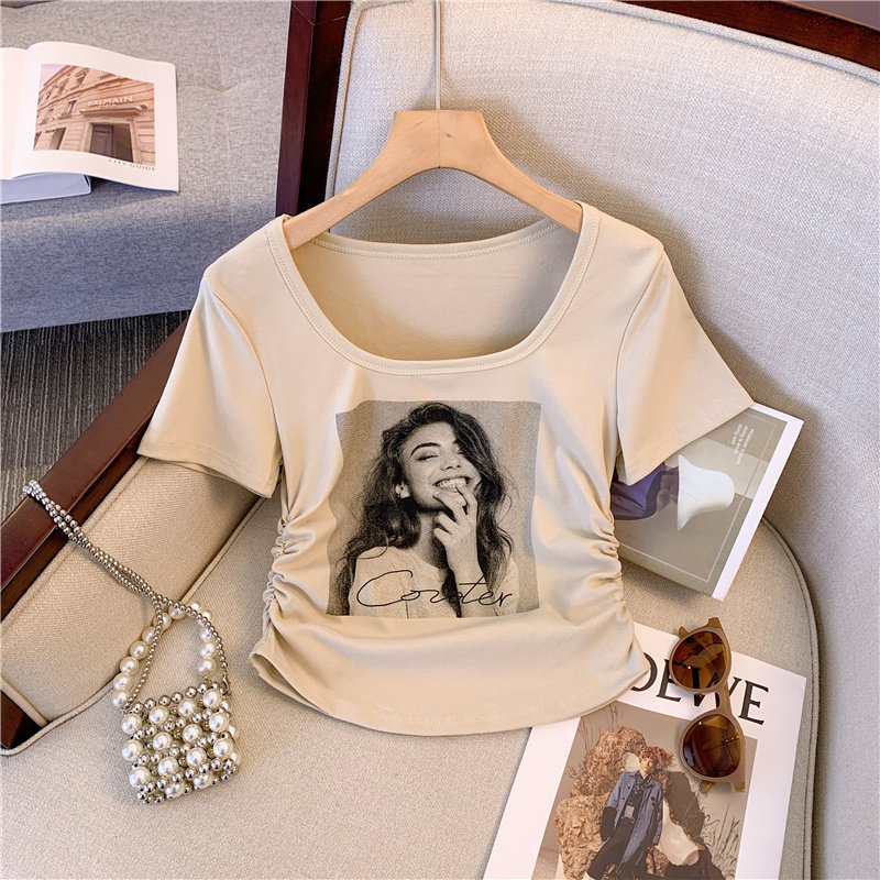 Модная летняя футболка с коротким рукавом, квадратный вырез, большой размер