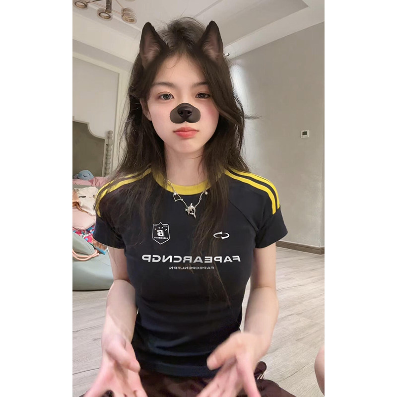 Ретро летняя короткая футболка с коротким рукавом, в американском стиле, облегающий крой