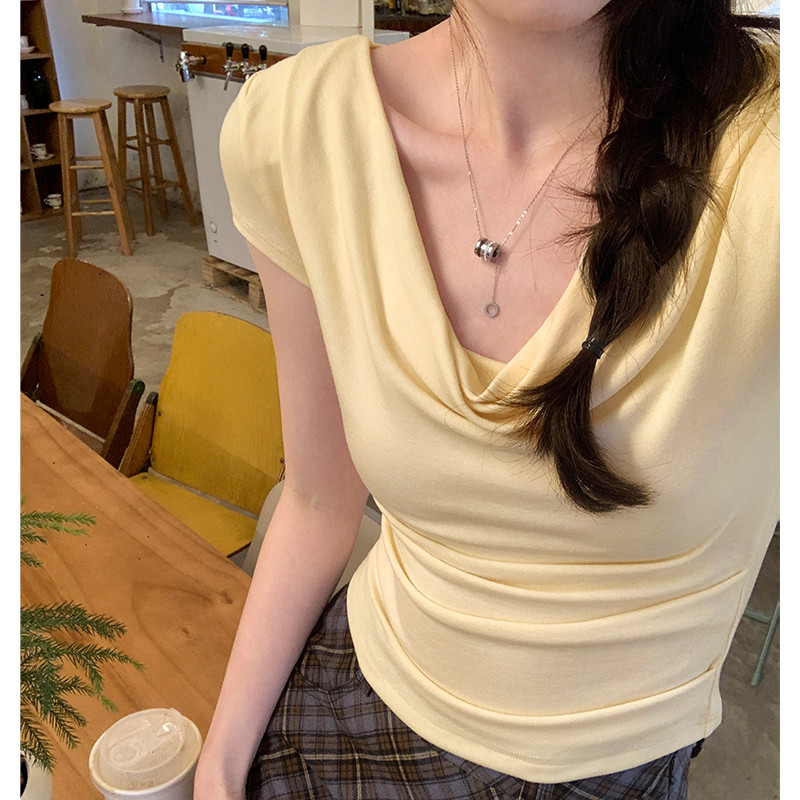 Дизайнерская летняя сексуальная приталенная эластичная короткая футболка, тренд сезона