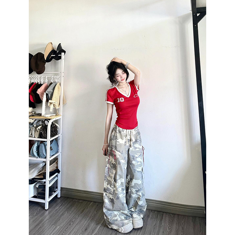 Спортивная футбольная форма, летняя дизайнерская красная короткая футболка с коротким рукавом, в американском стиле, V-образный вырез, облегающий крой, тренд сезона