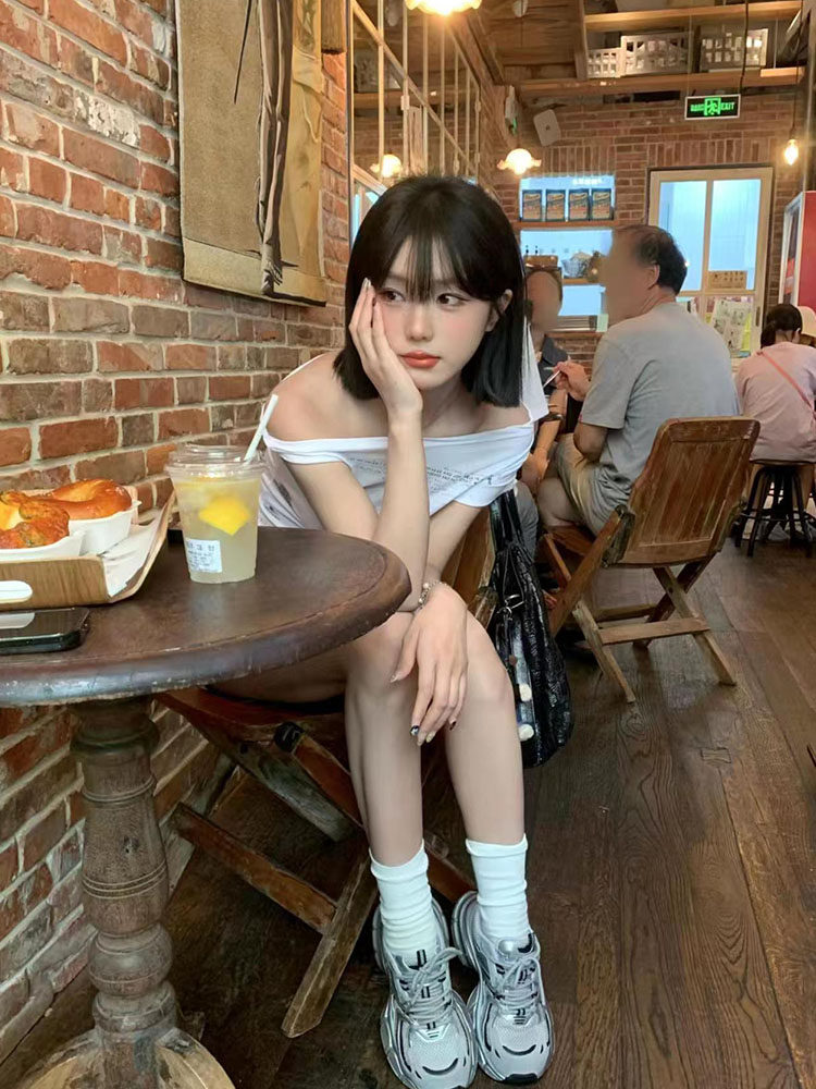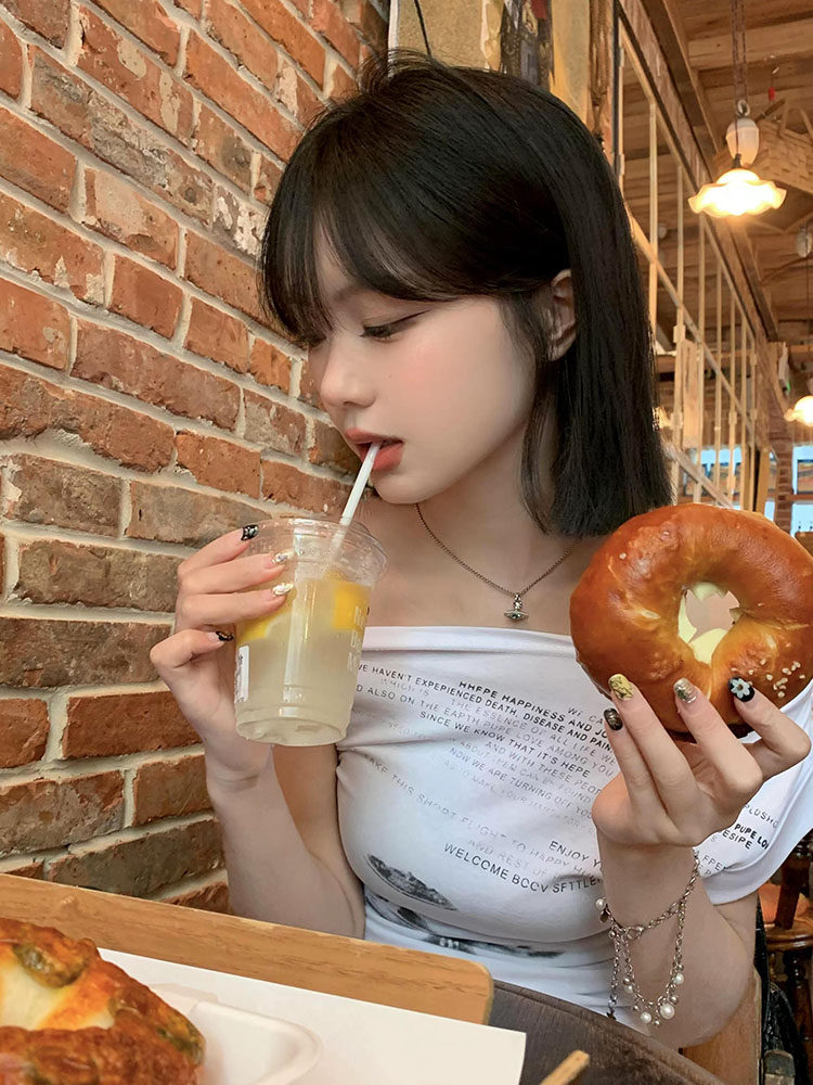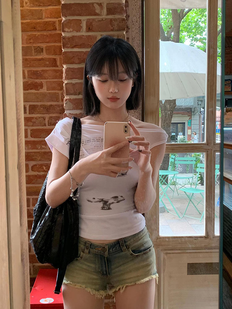 Белая летняя приталенная короткая футболка с коротким рукавом