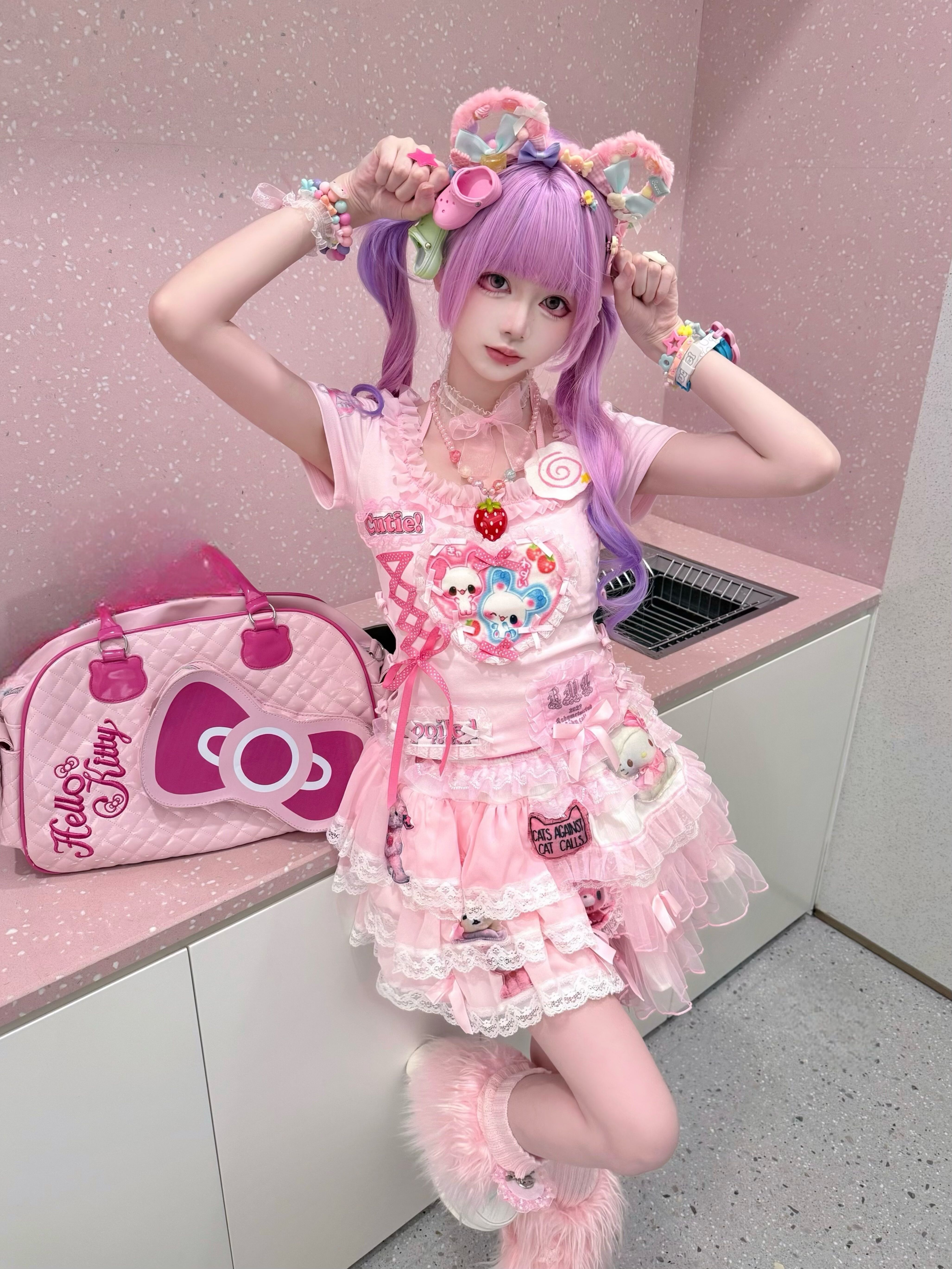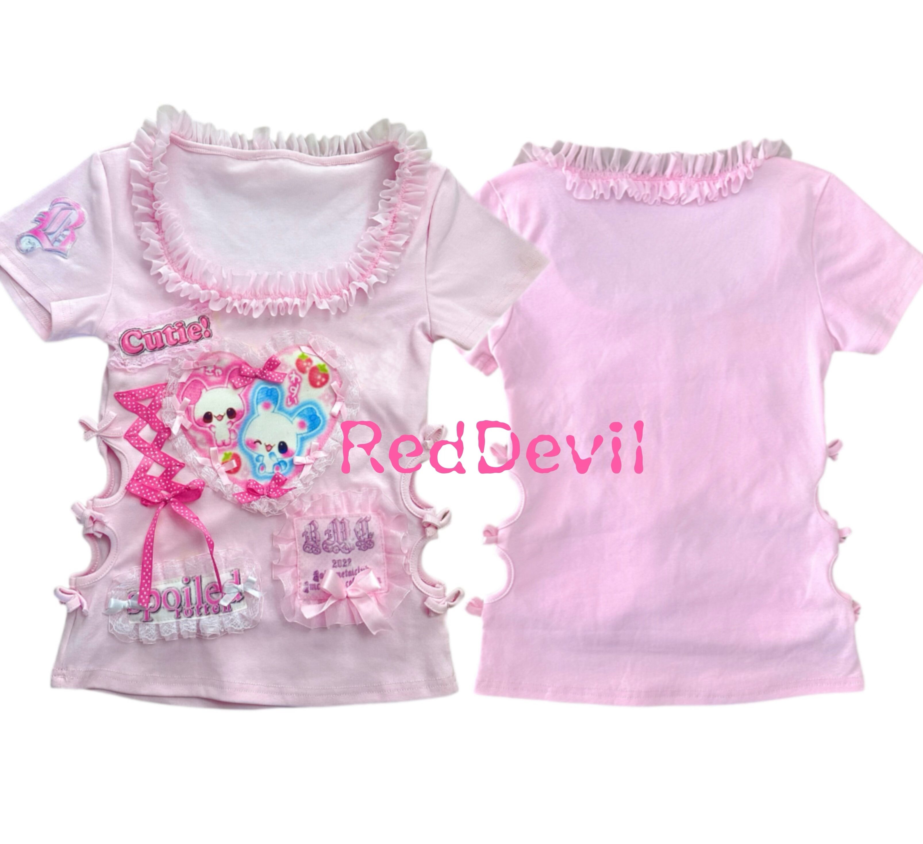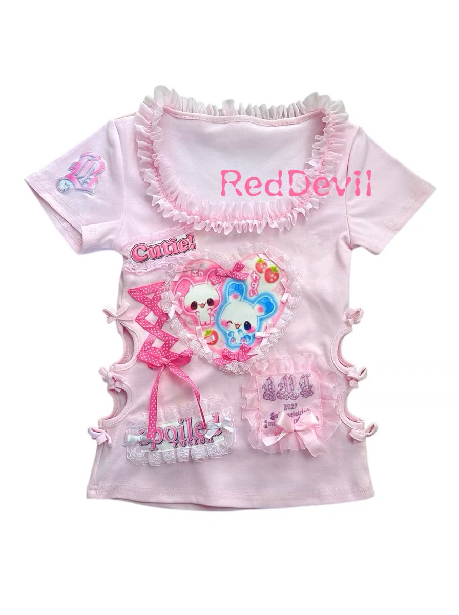 Розовый милый кролик, футболка, эффект подтяжки, облегающий крой, короткий рукав