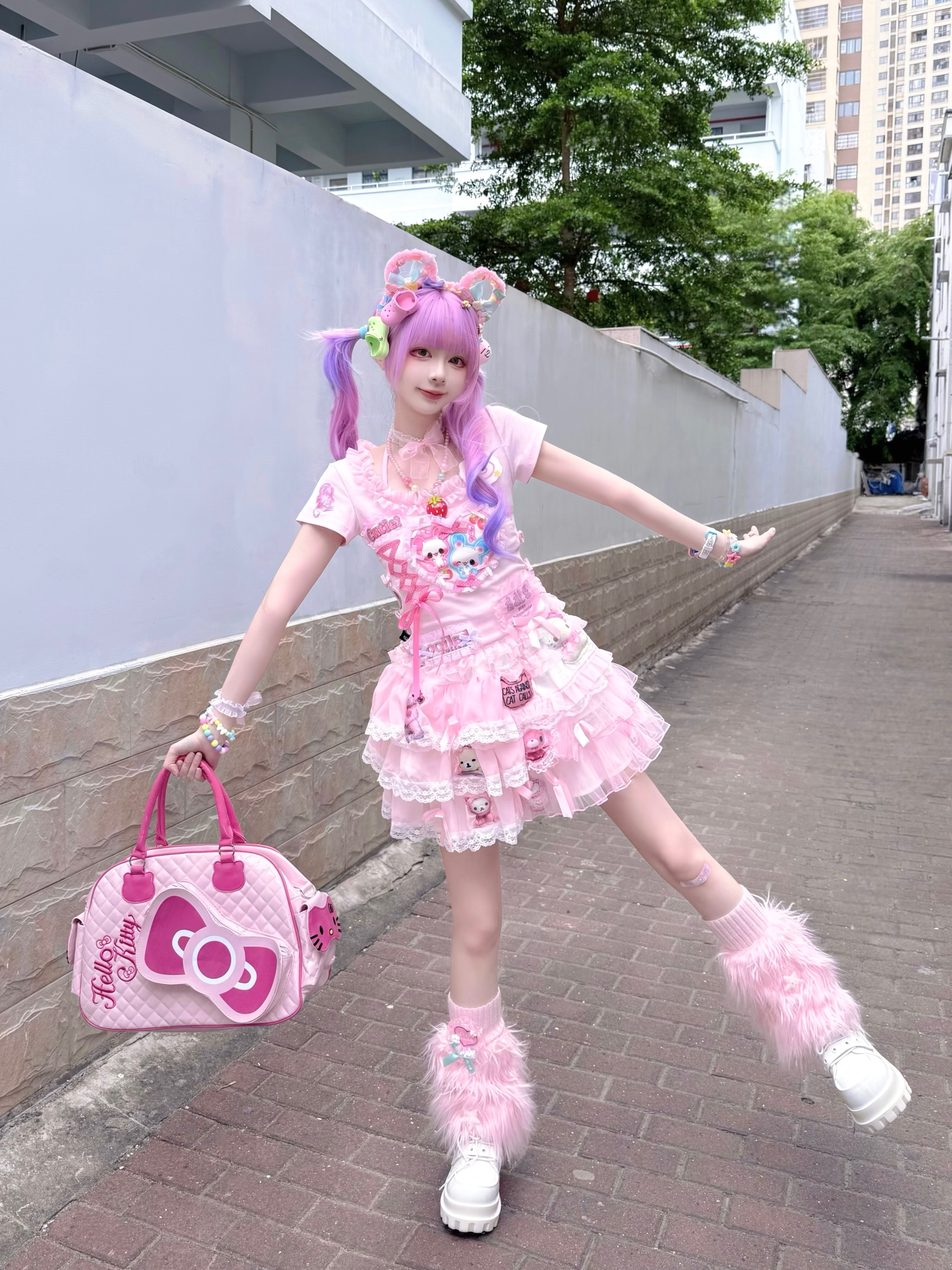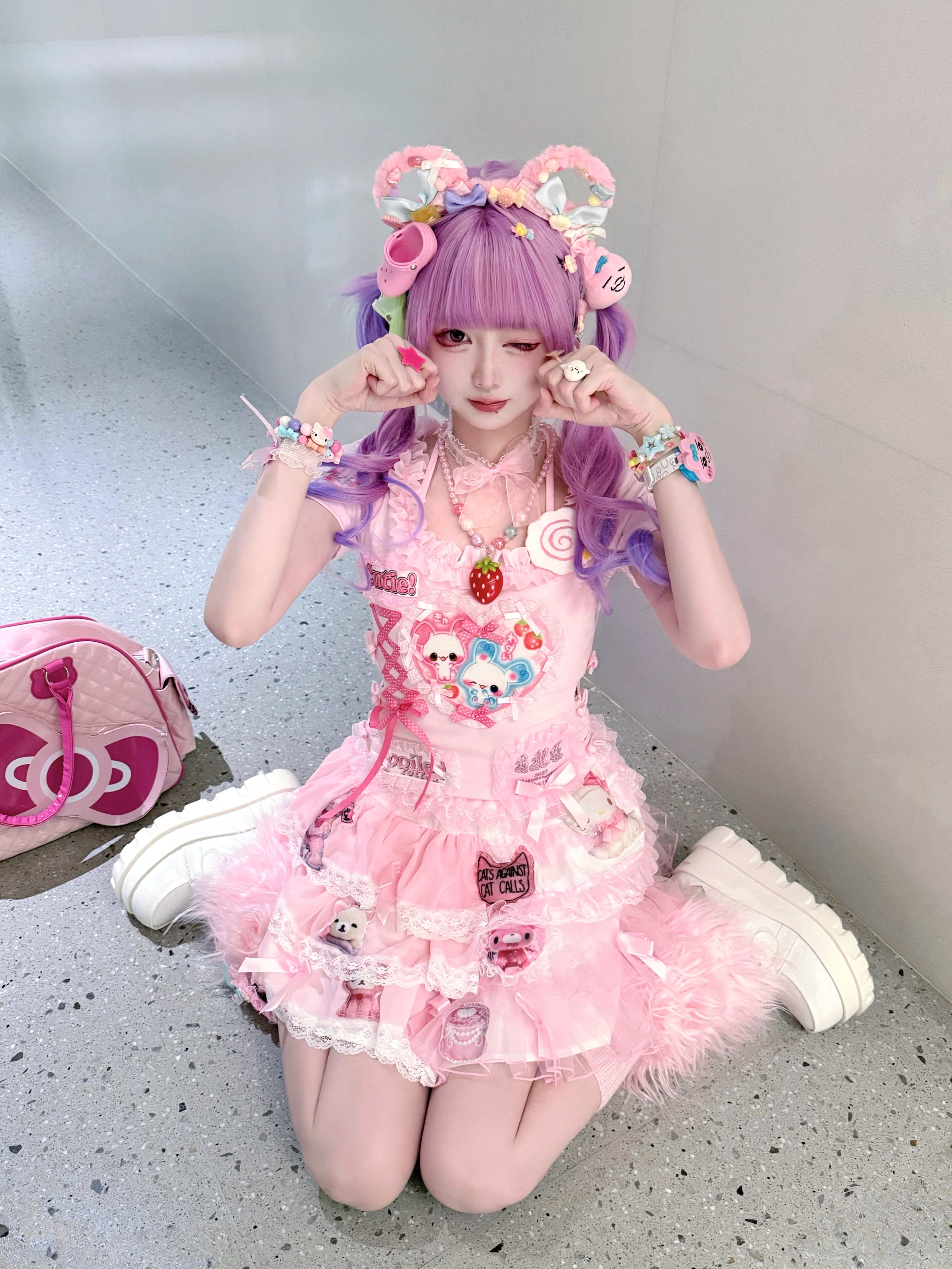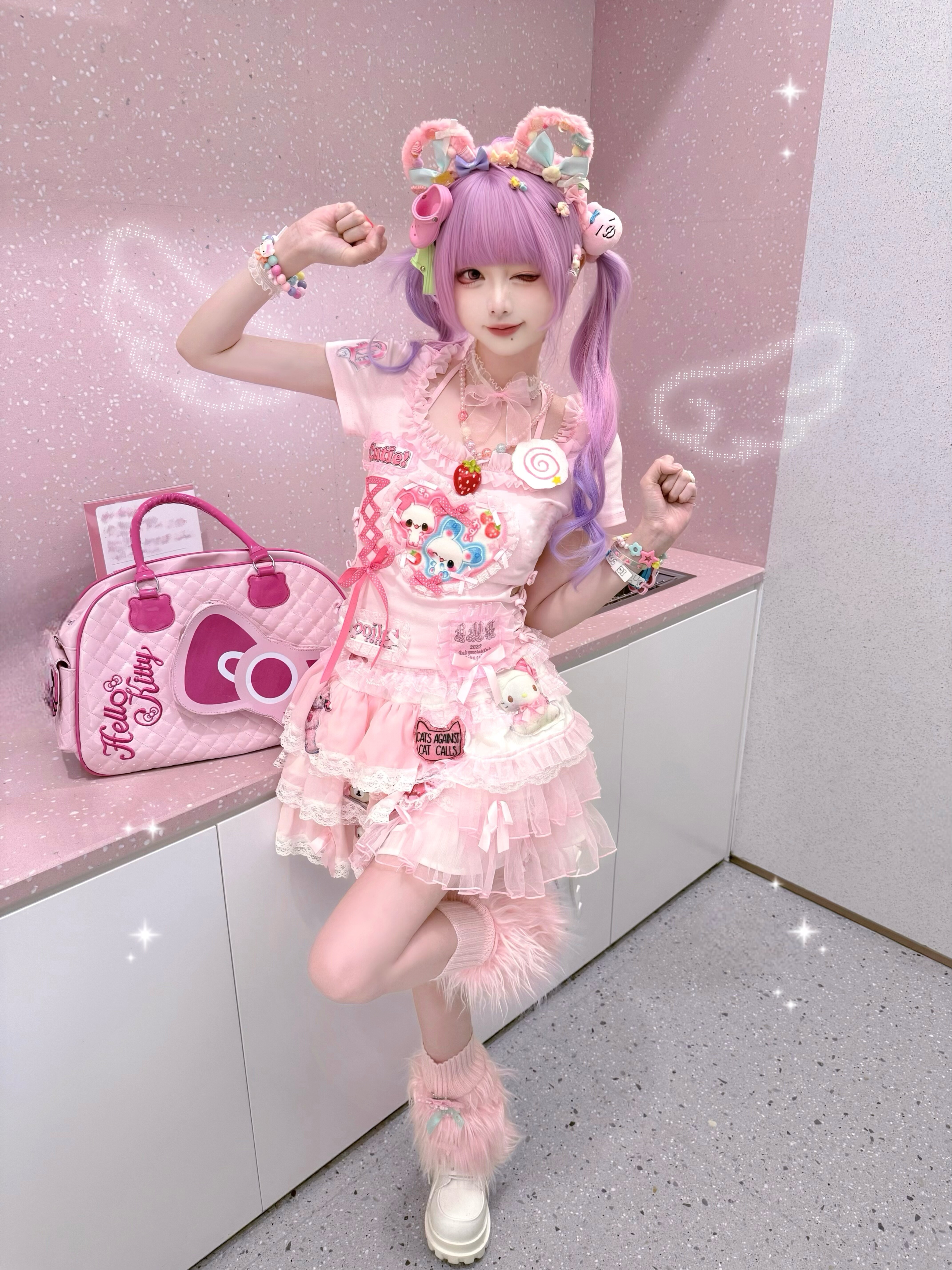 Розовый милый кролик, футболка, эффект подтяжки, облегающий крой, короткий рукав