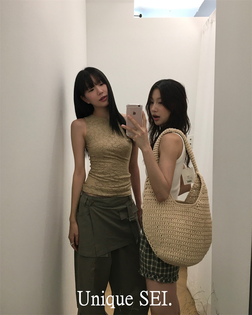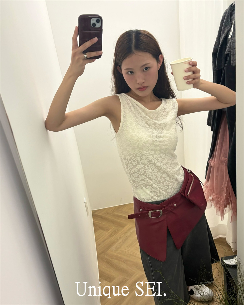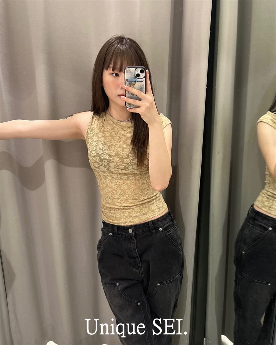 Сексуальная асимметричная кружевная приталенная майка топ без рукавов