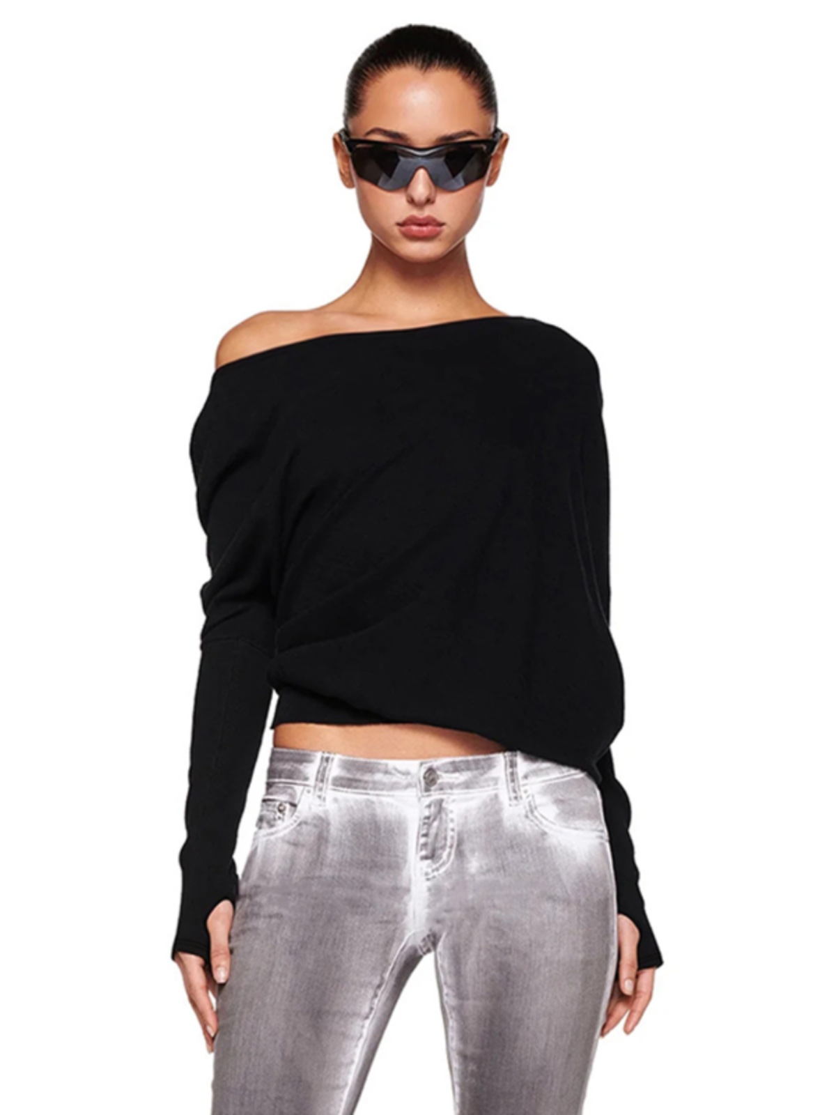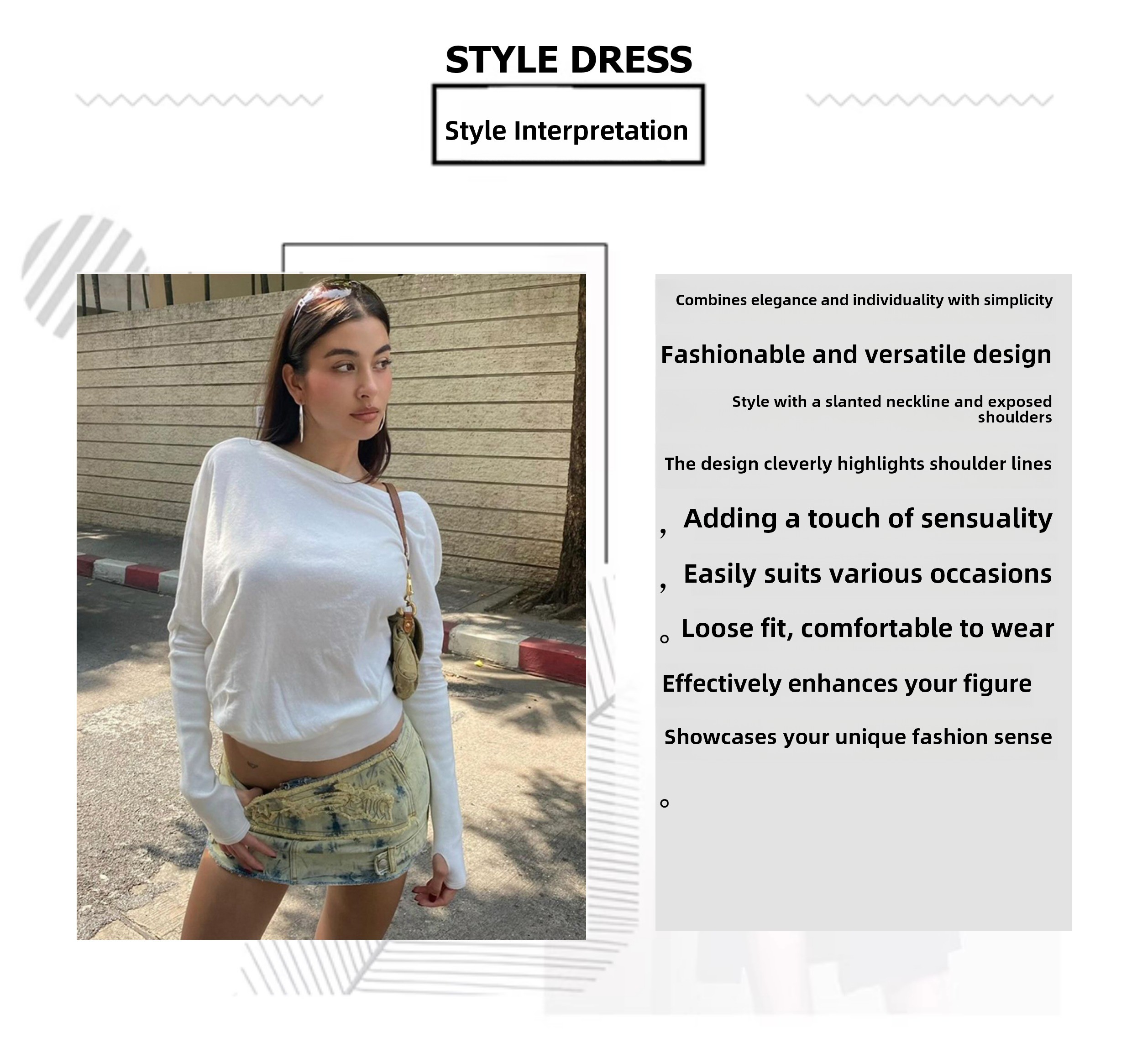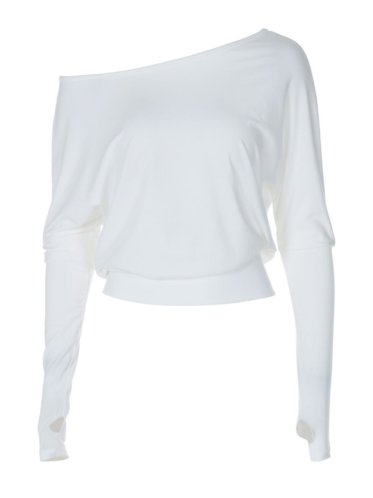 Shemoda Fashionable Hot Girl, наклонная шея с плеча с плечами, выставленная с длинными рукавами для женщин, ежедневная универсальная повседневная эластичная футболка талии