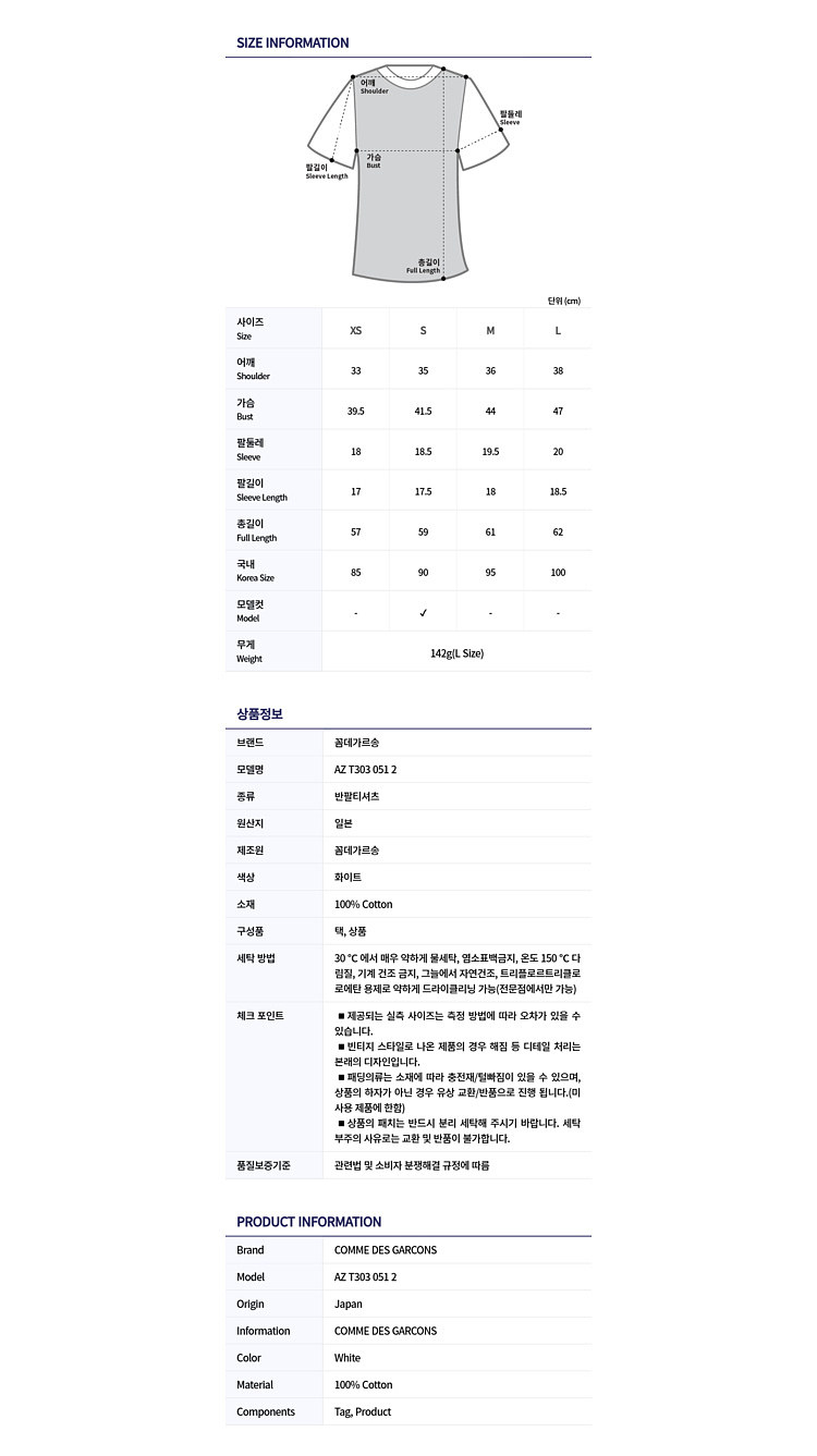 1H возвращаемая Южная Корея прямая почтовая почта Kawakubo Rei CDG AZ T303 051 2 Женская футболка с половинами рукава
