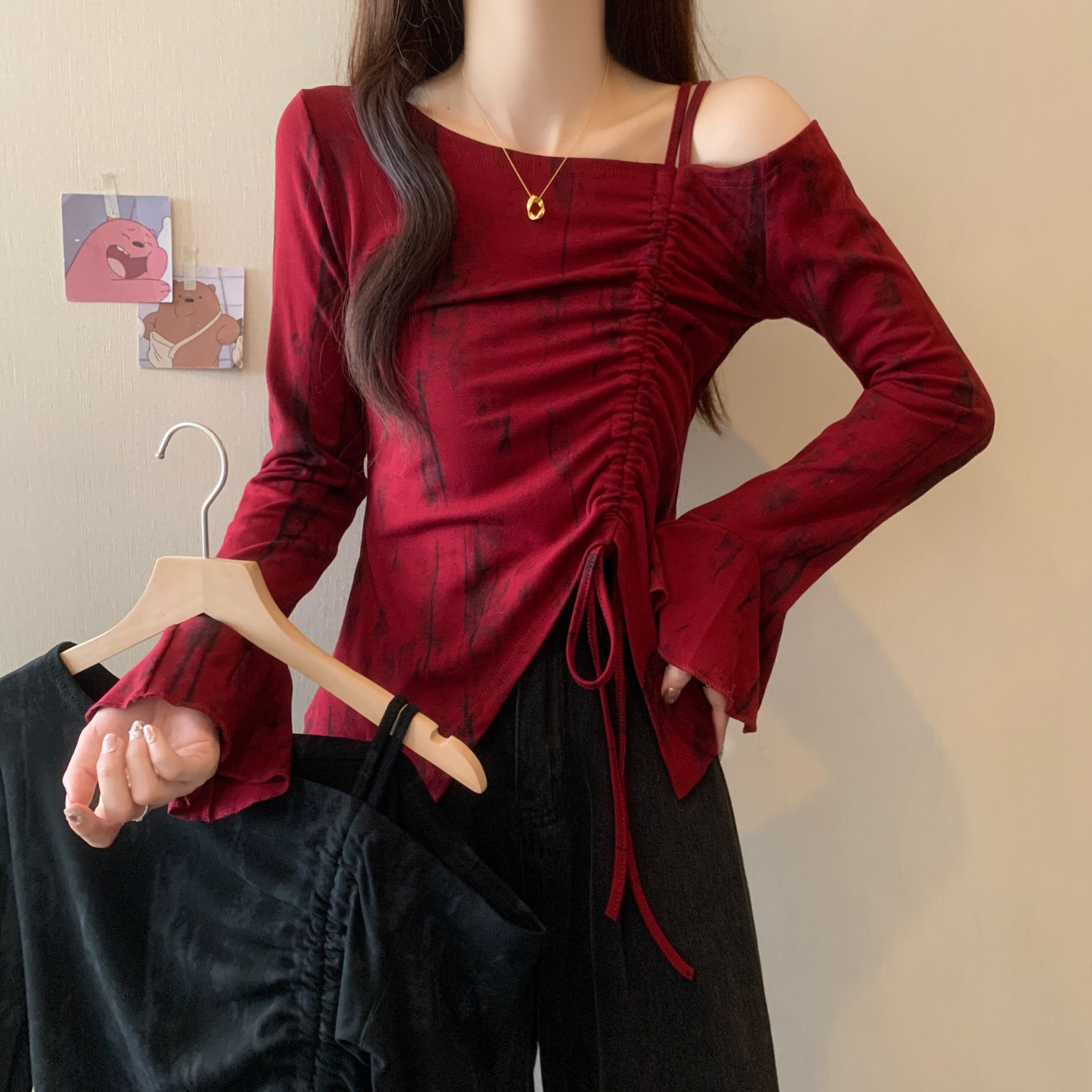 Дизайнерский лонгслив, большой размер, осенний, тренд сезона, на шнурках