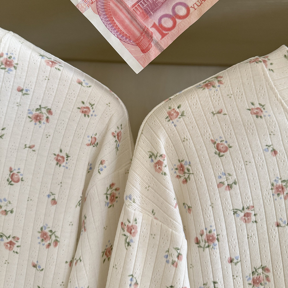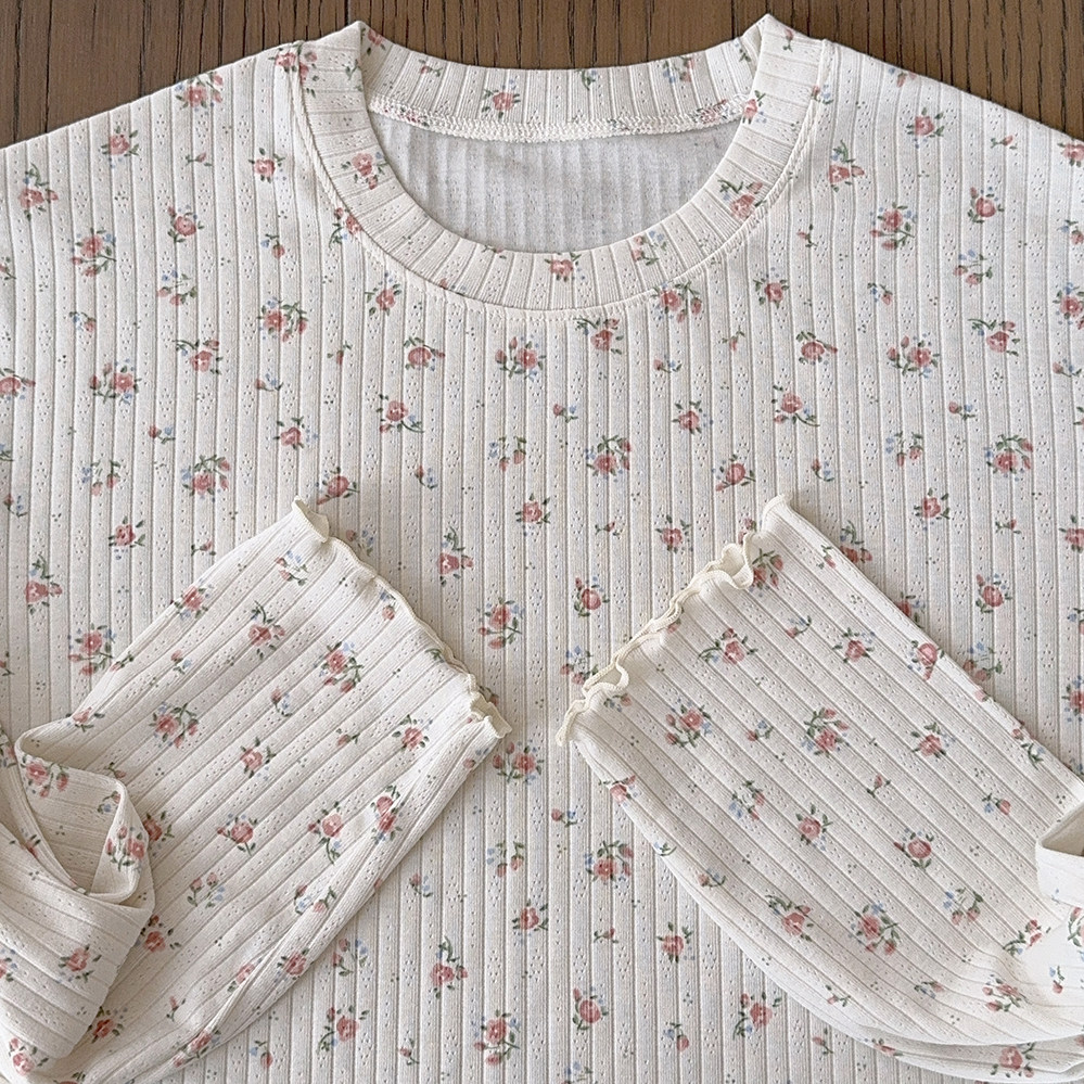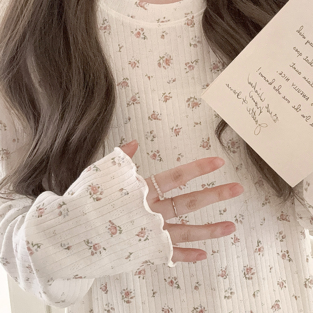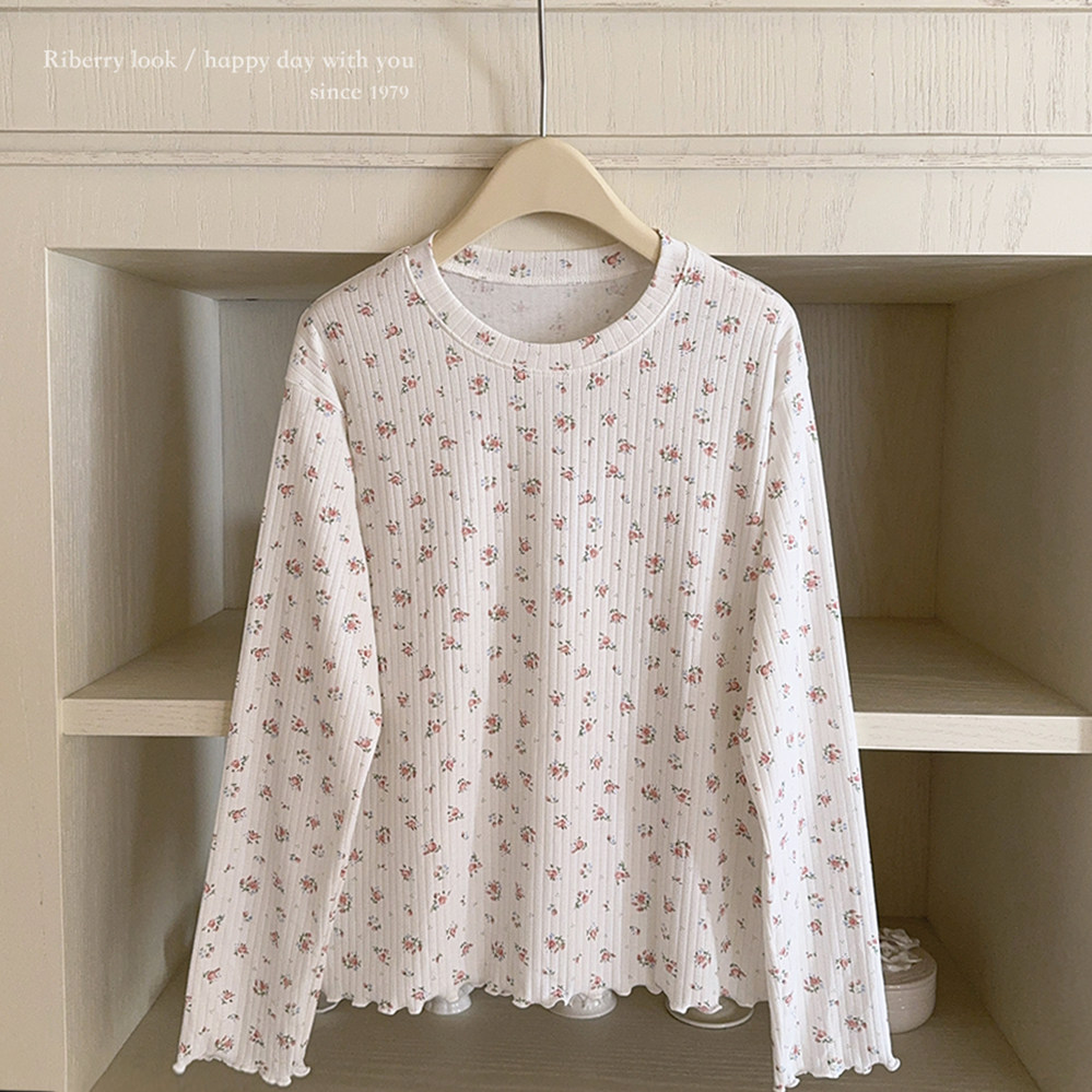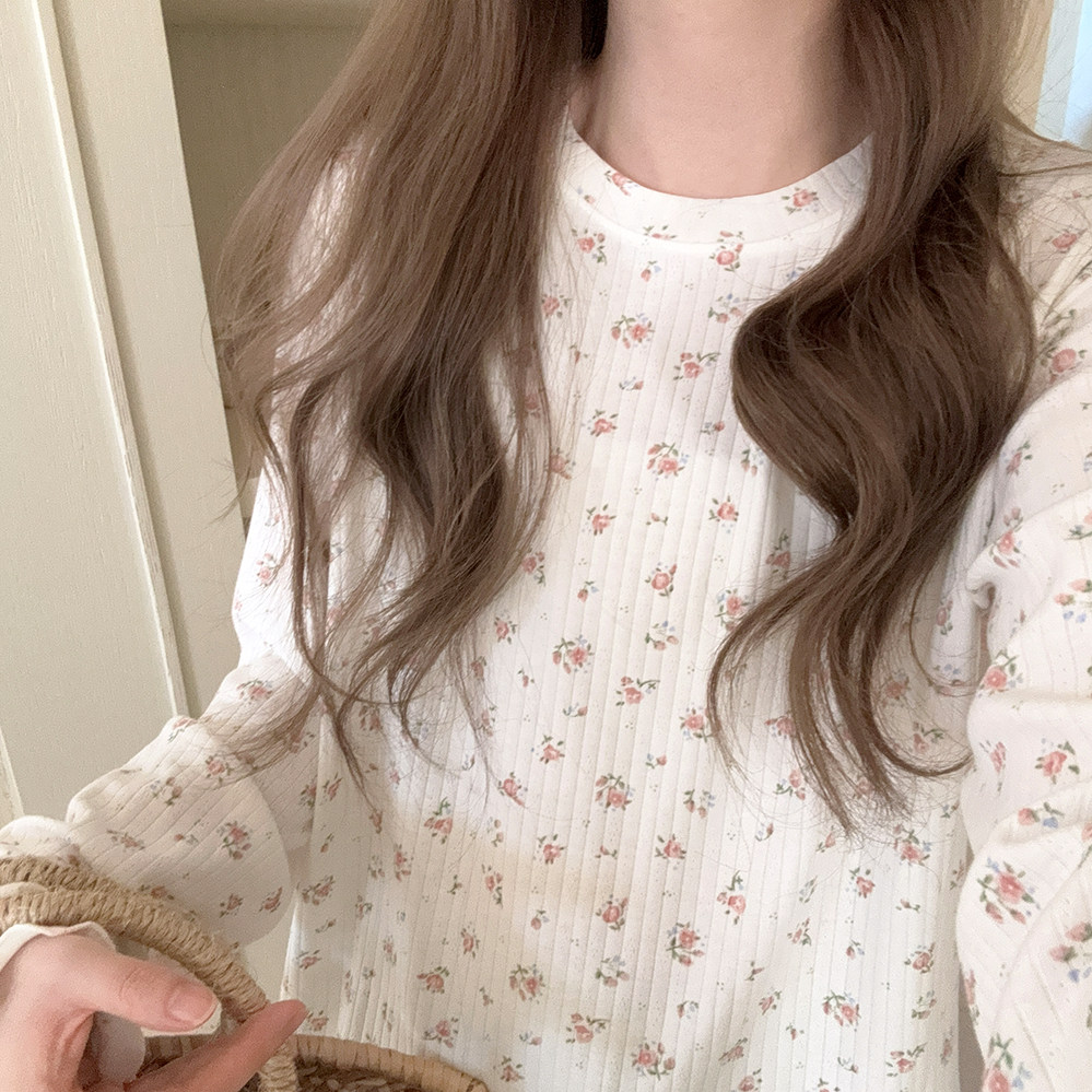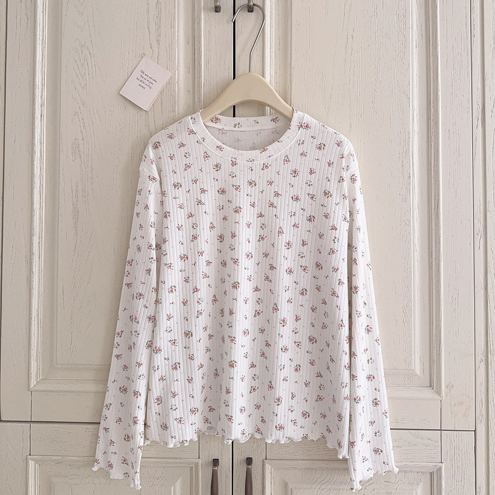 Кремовый базовый лонгслив, французский стиль, цветочный принт