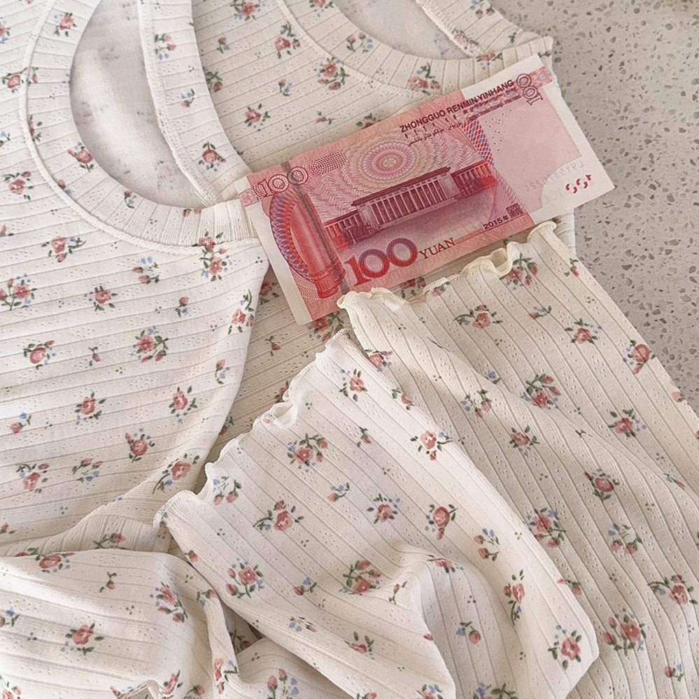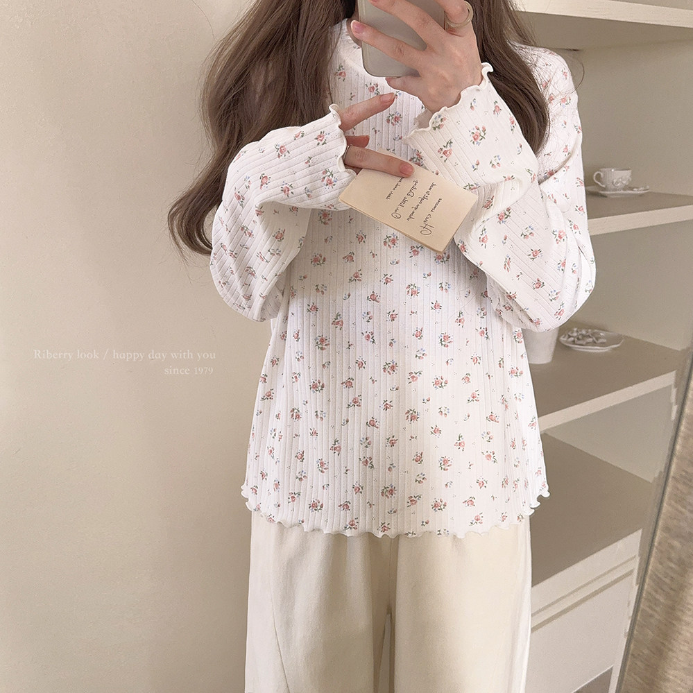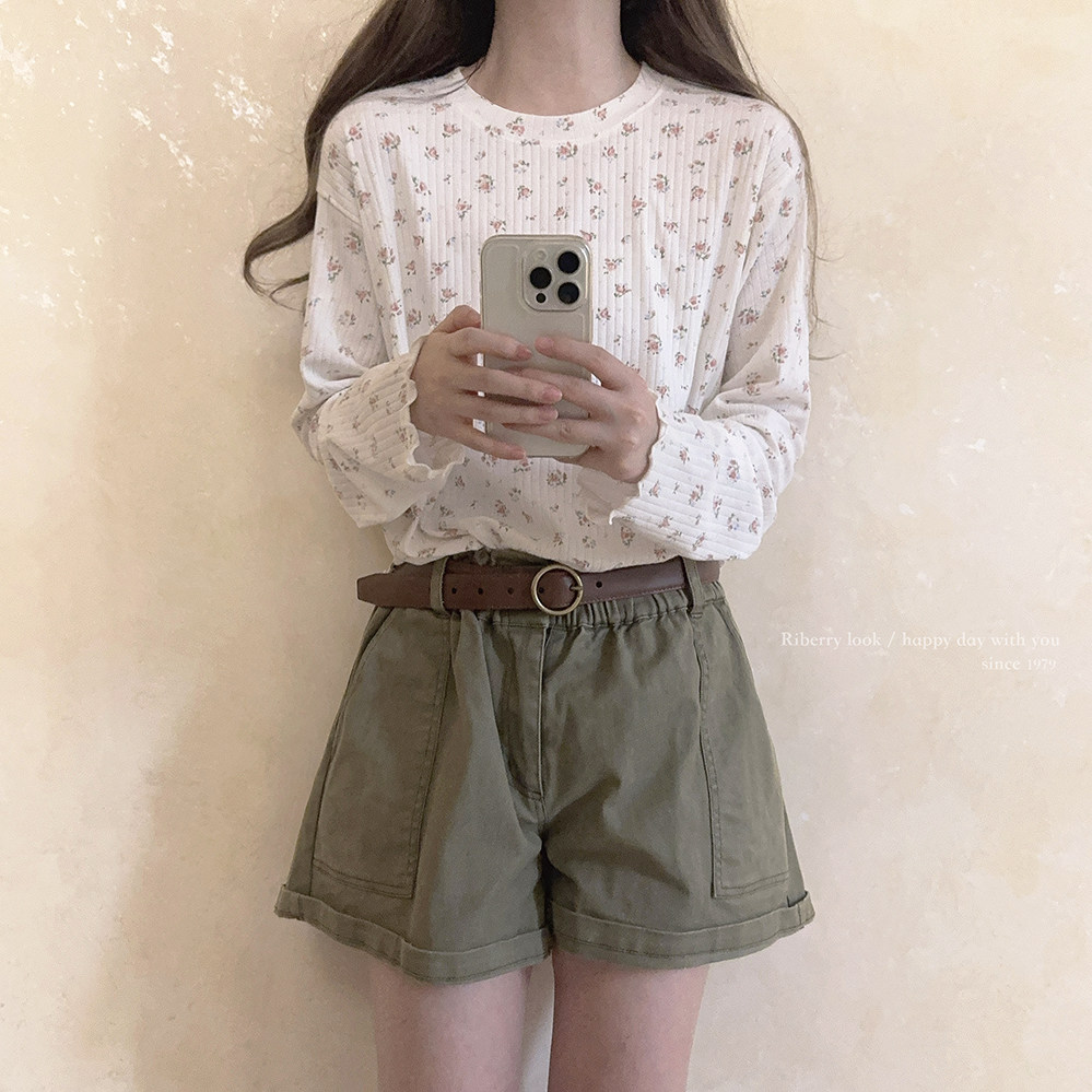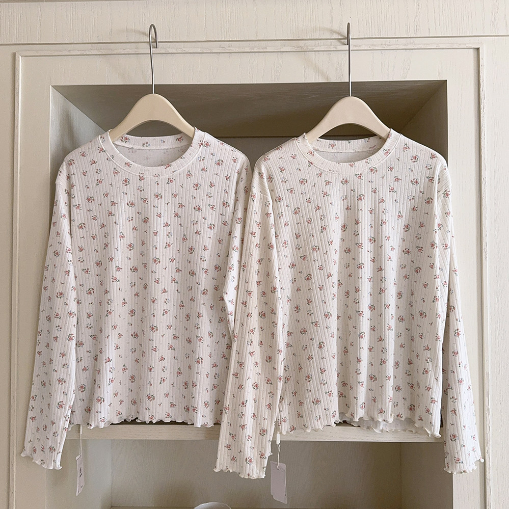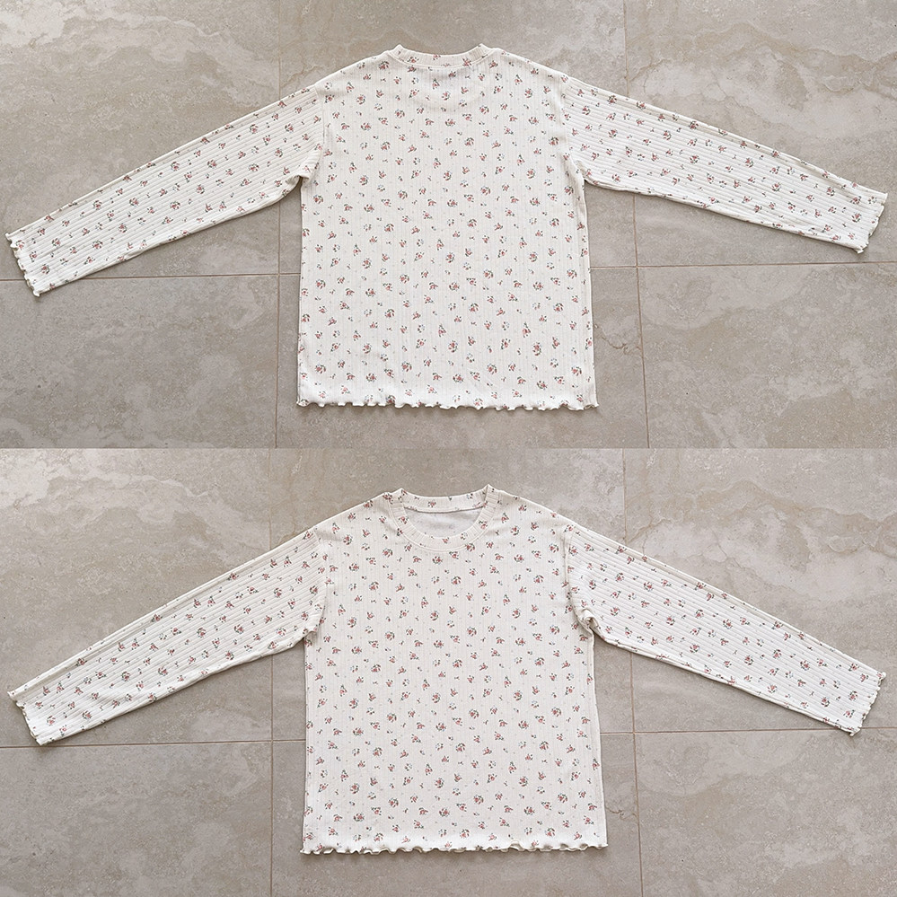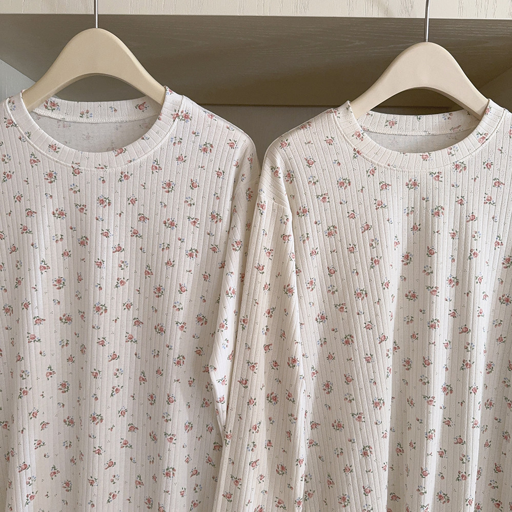 Кремовый базовый лонгслив, французский стиль, цветочный принт