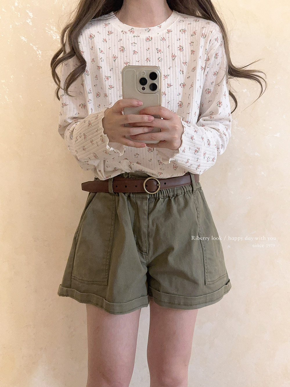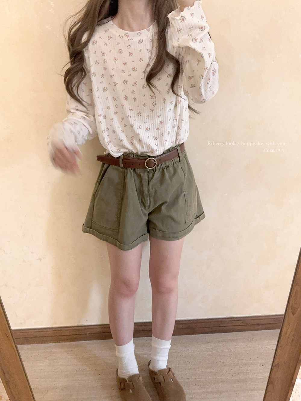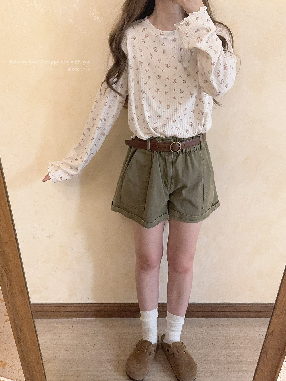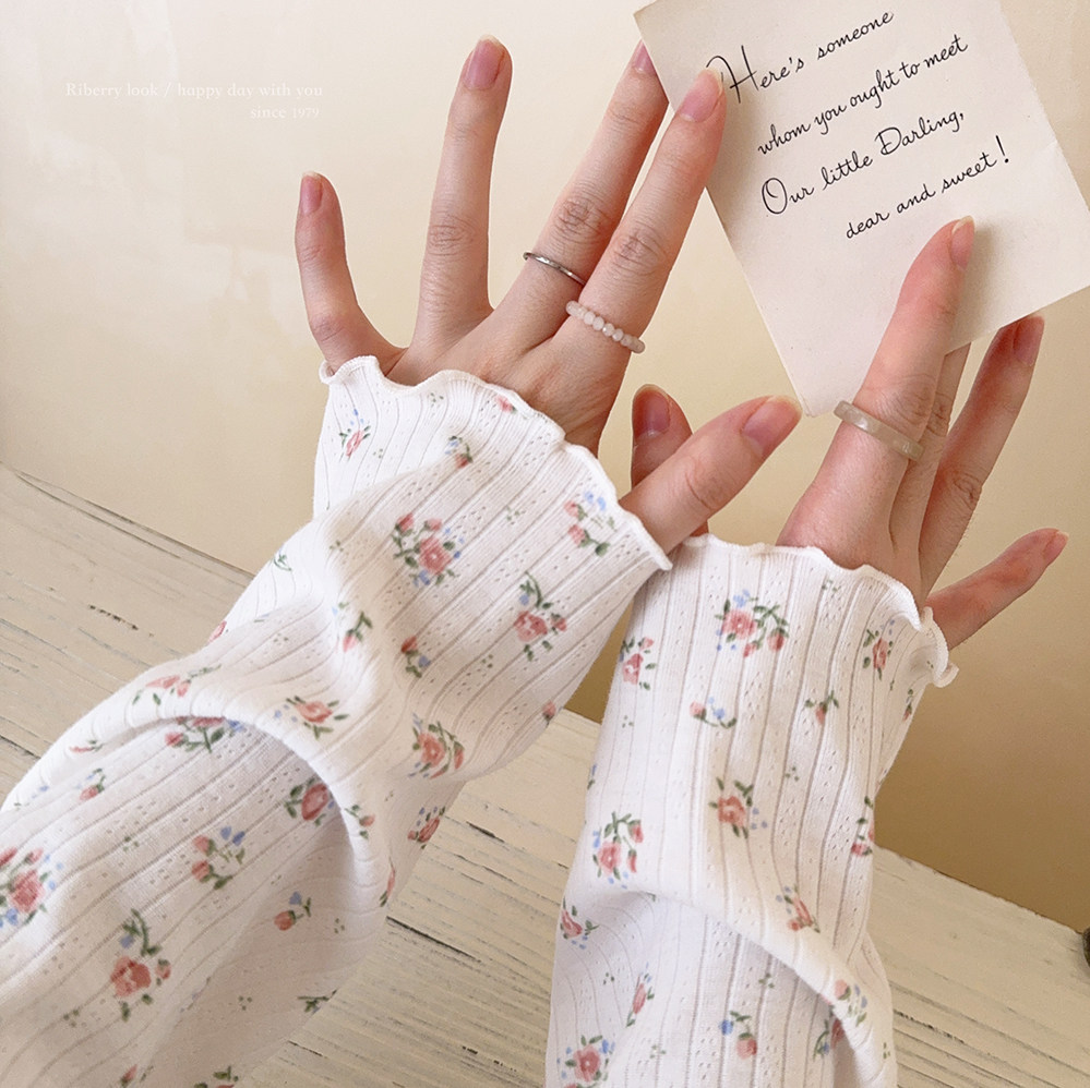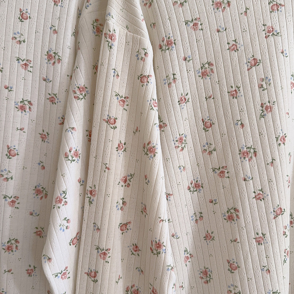 Кремовый базовый лонгслив, французский стиль, цветочный принт