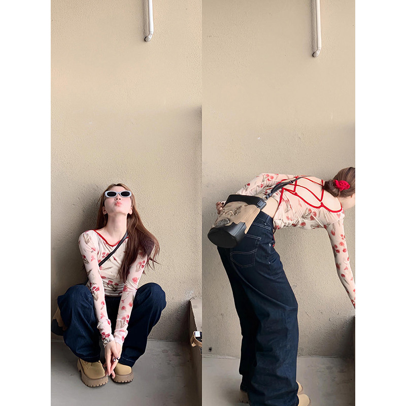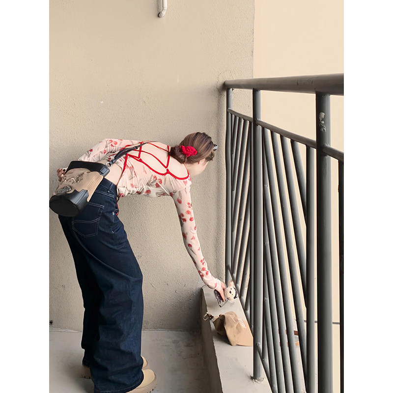 Ретро зимняя футболка, ремень, базовый приятный телу лонгслив, французский стиль, облегающий крой, с открытой спиной