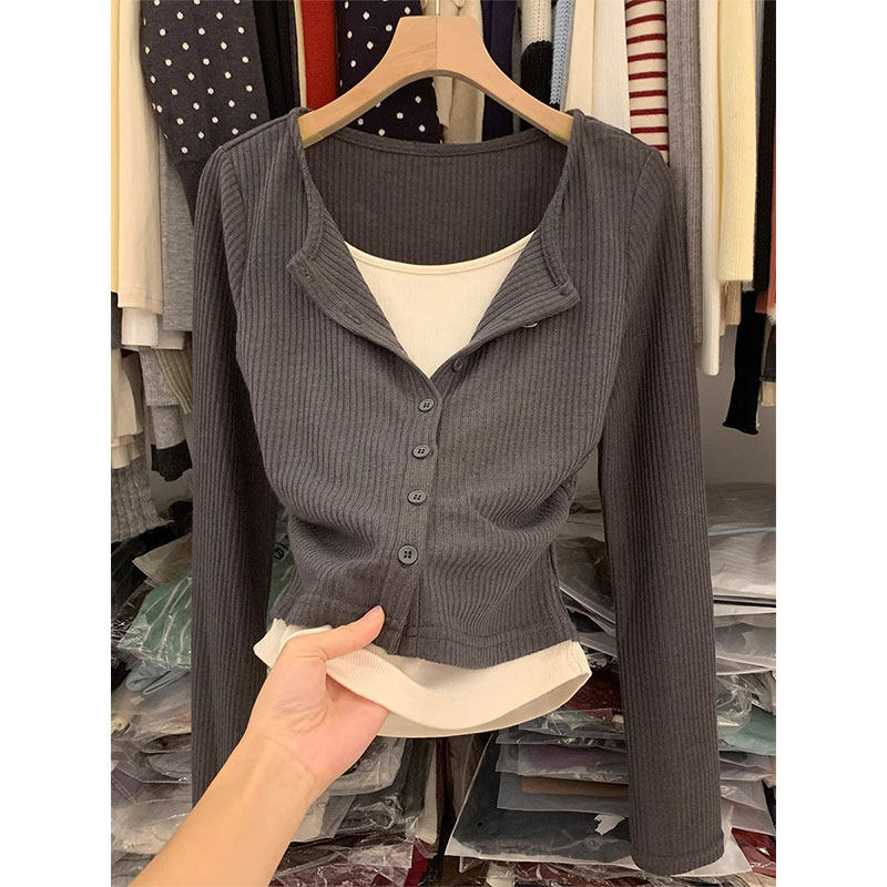Комплект, осенний базовый приятный телу сексуальный приталенный лонгслив, V-образный вырез
