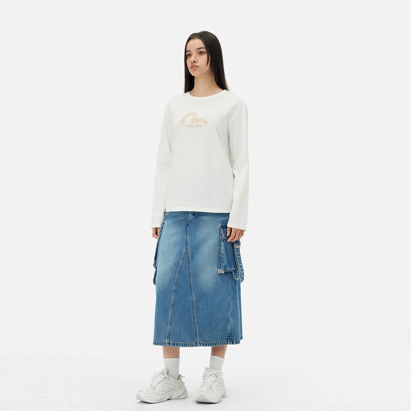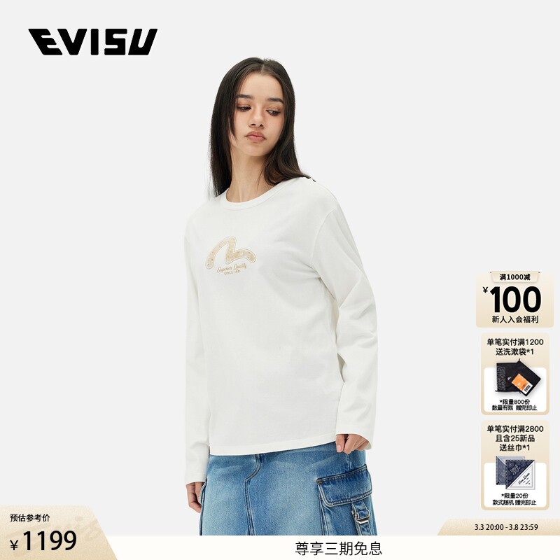 EVISU Fushen 2025, весенняя новая женская футболка с логотипом чайки и длинными рукавами 2ESHTW5TL4020XXCT