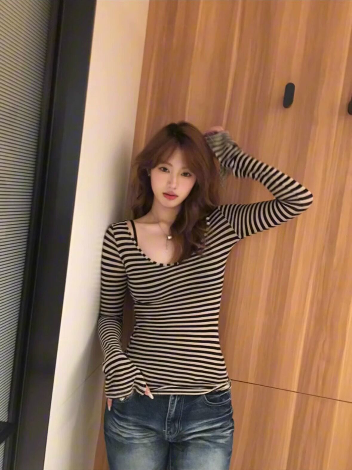 Весенний лонгслив, базовый приятный телу приталенный корсет, в американском стиле, V-образный вырез, тренд сезона