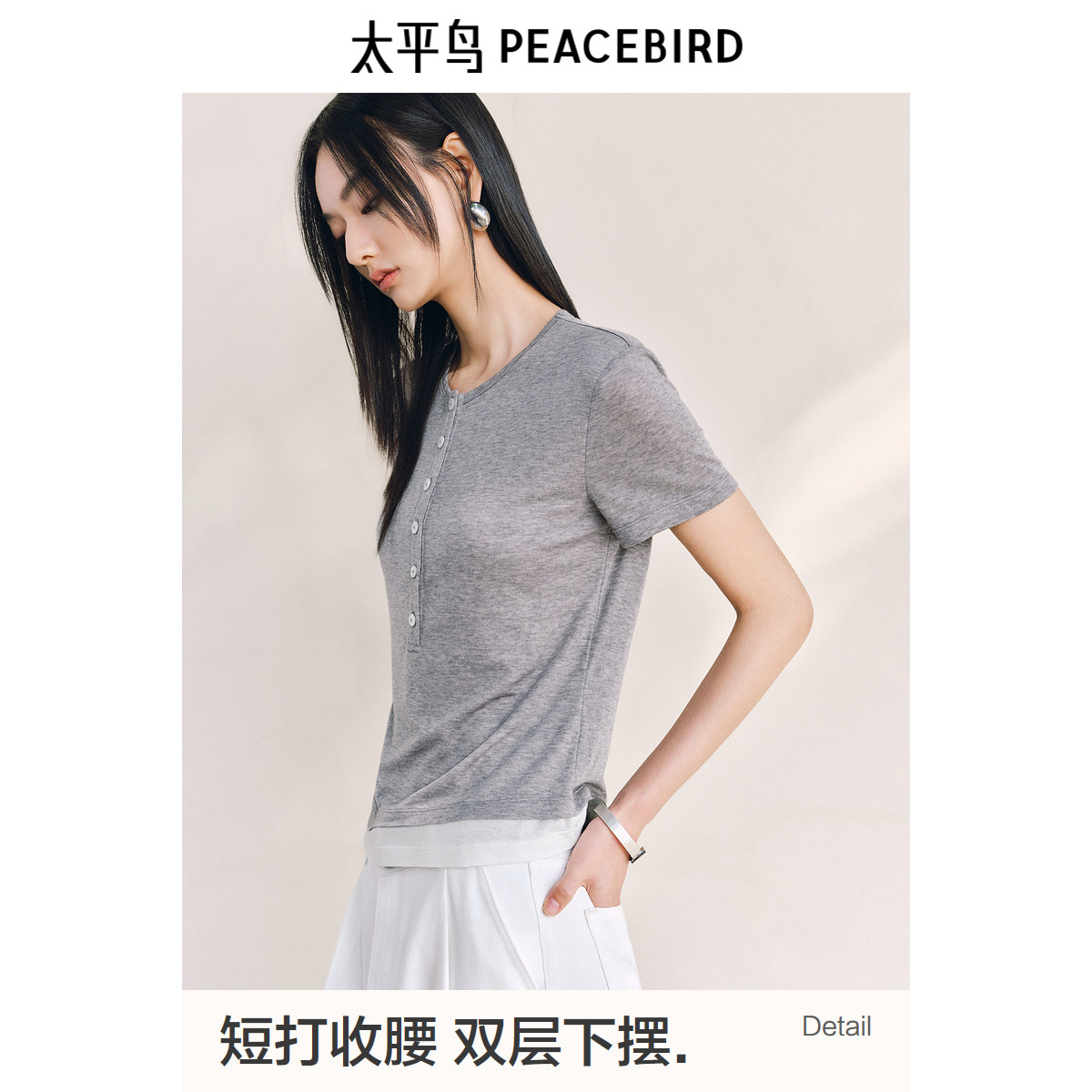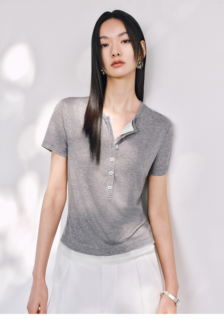 PEACEBIRD Lenzing Tencel приятная для кожи мягкая футболка с короткими рукавами 25 летние новые контрастные цвета с воротником Генри тонкий топ для женщин
